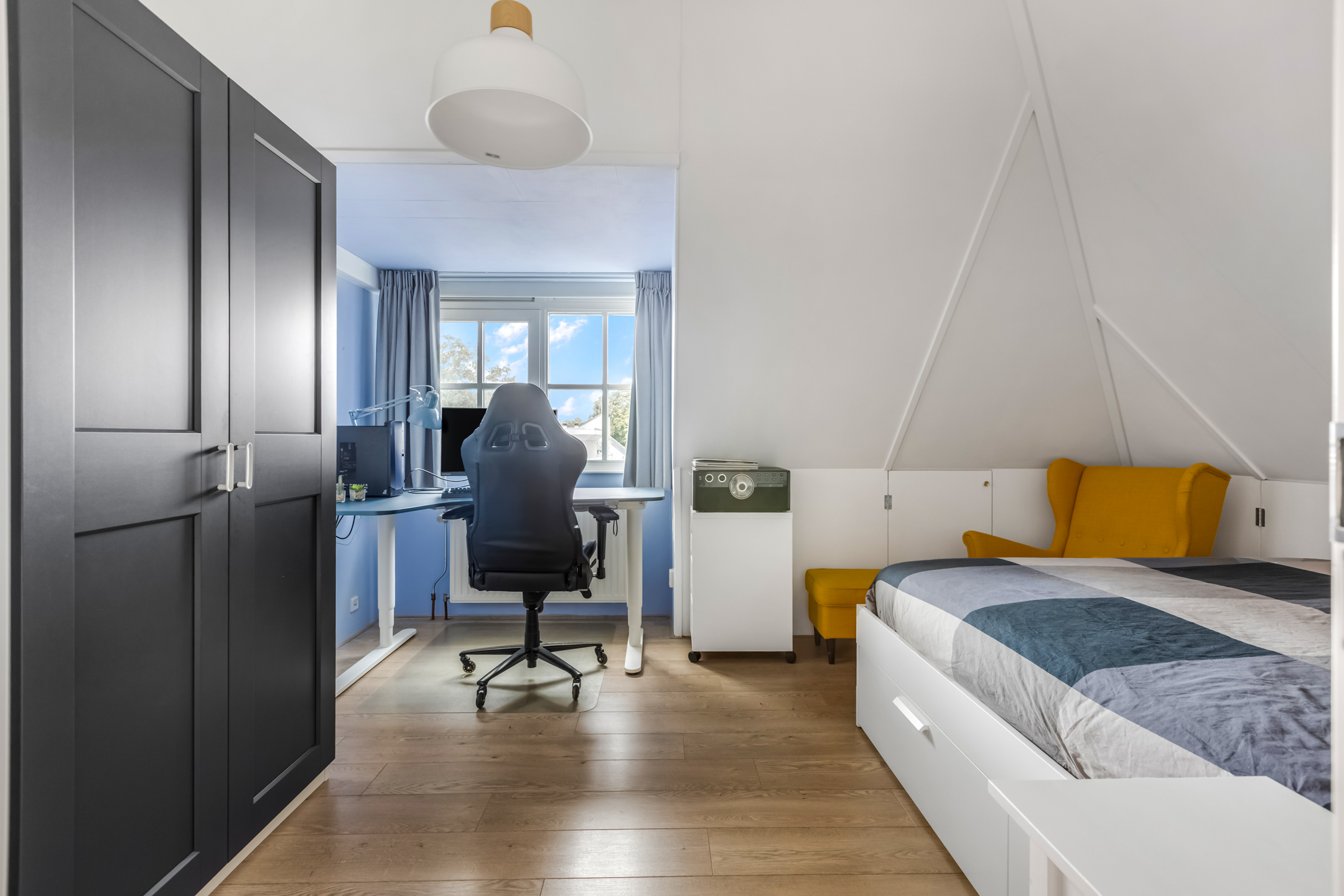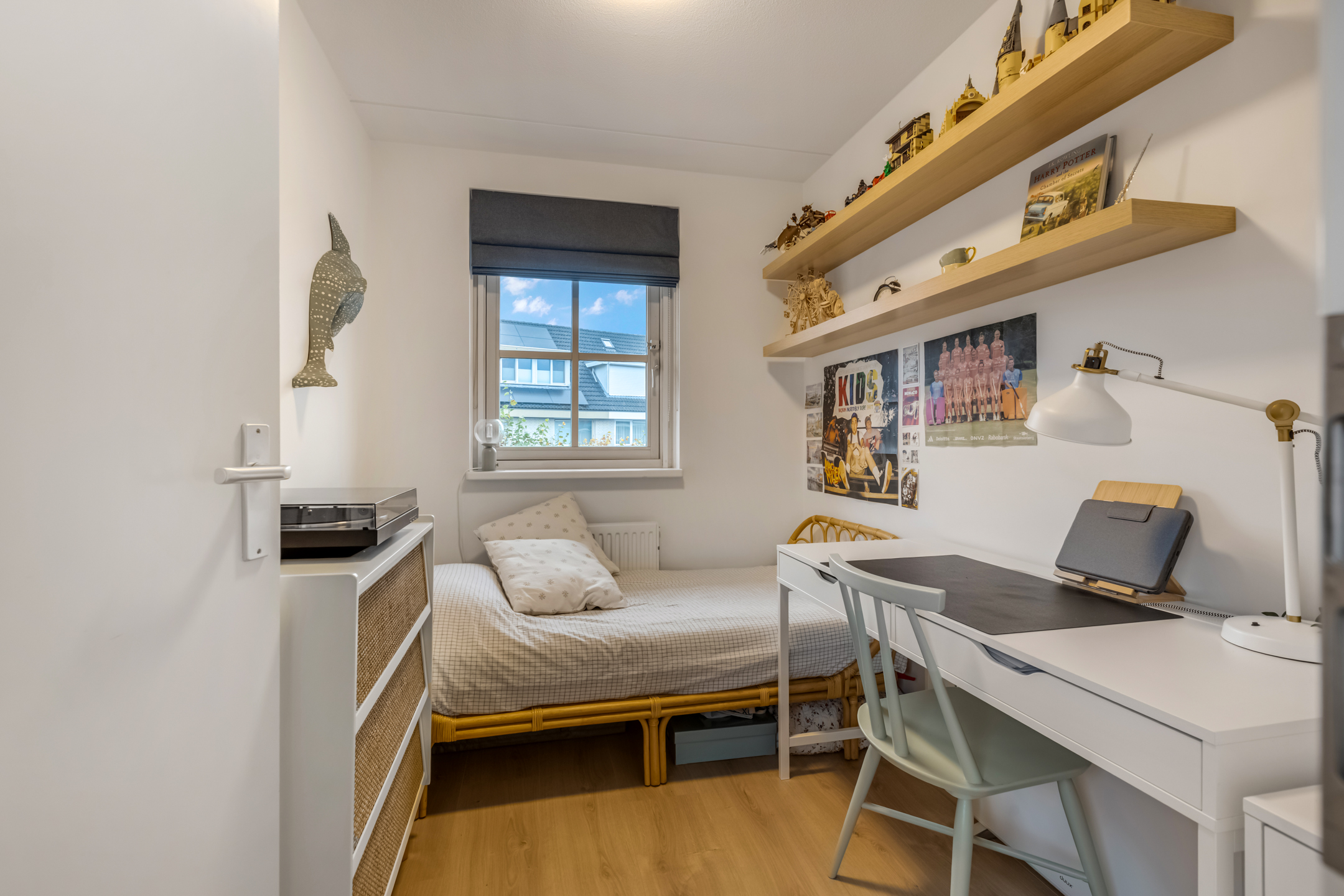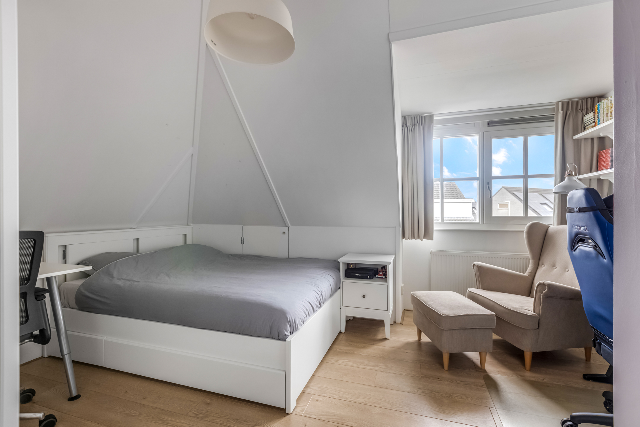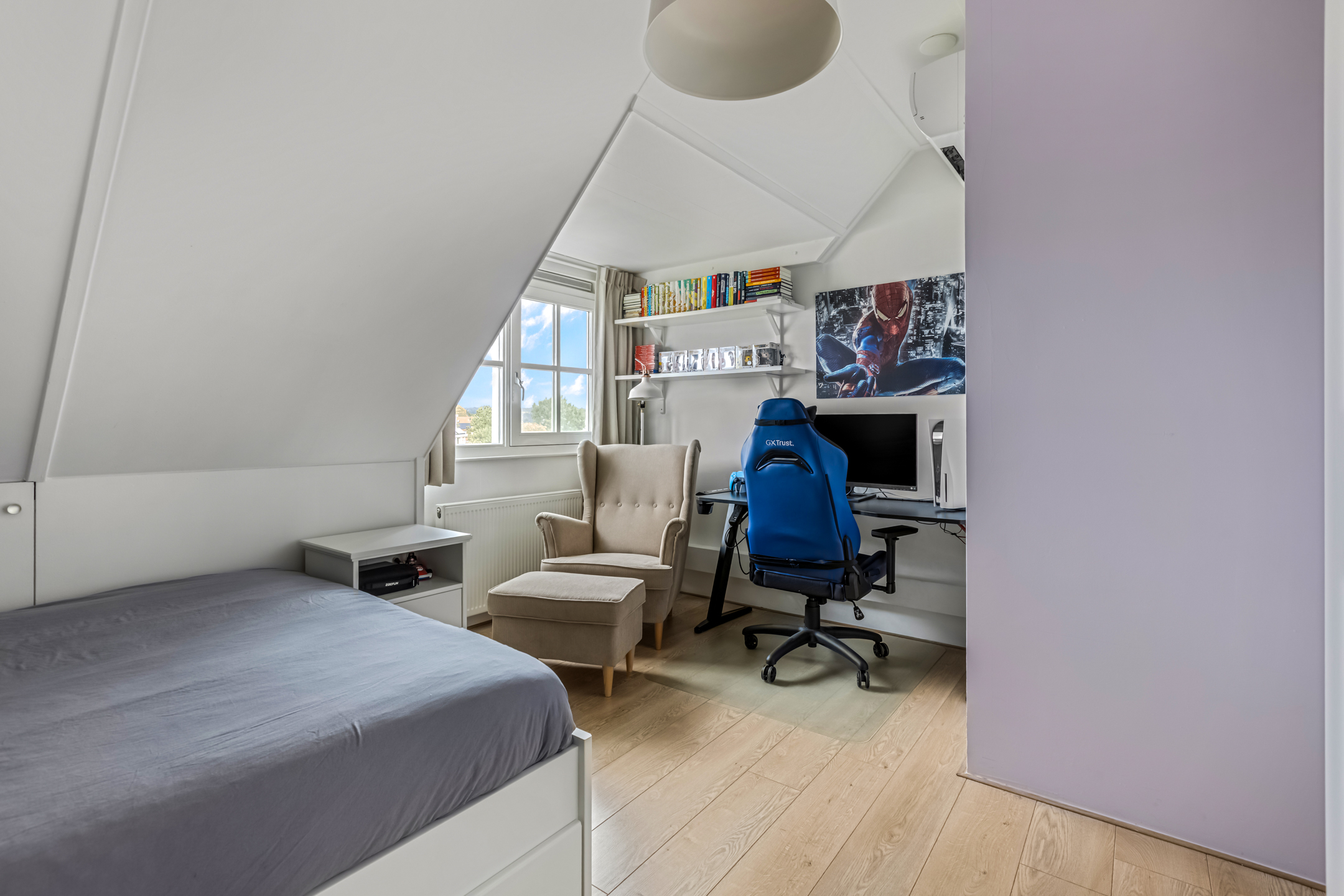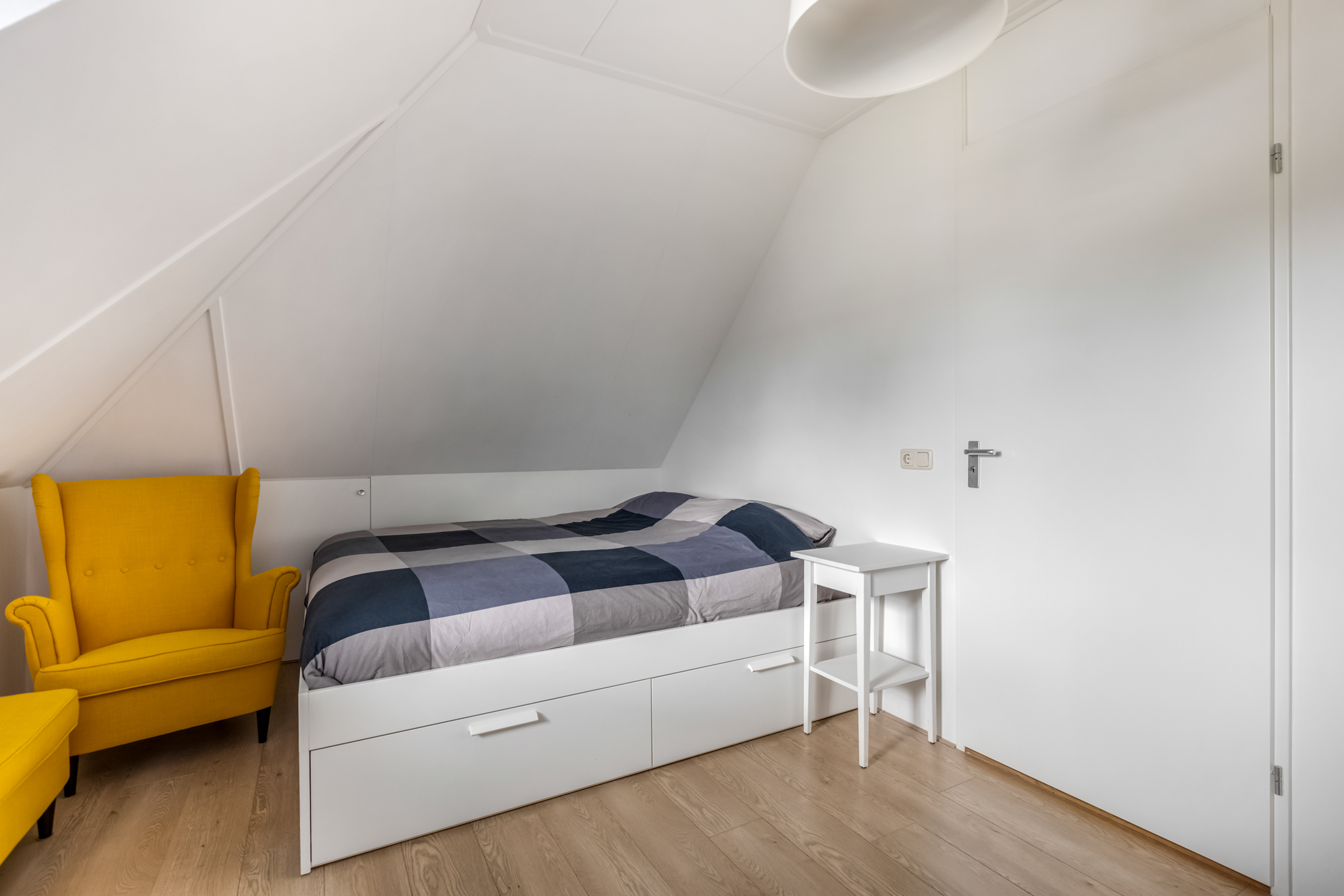 De overloop biedt toegang tot twee slaapkamers en een badkamer. Beide slaapkamers zijn voorzien van een airco en tevens een dakkapel, waardoor er veel natuurlijk licht binnenvalt en extra leefruimte is gecreëerd. De badkamer is compleet ingericht met een inloopdouche, wastafelmeubel en hangcloset. De gehele verdieping – met uitzondering van de badkamer – is afgewerkt met een fraaie laminaatvloer.