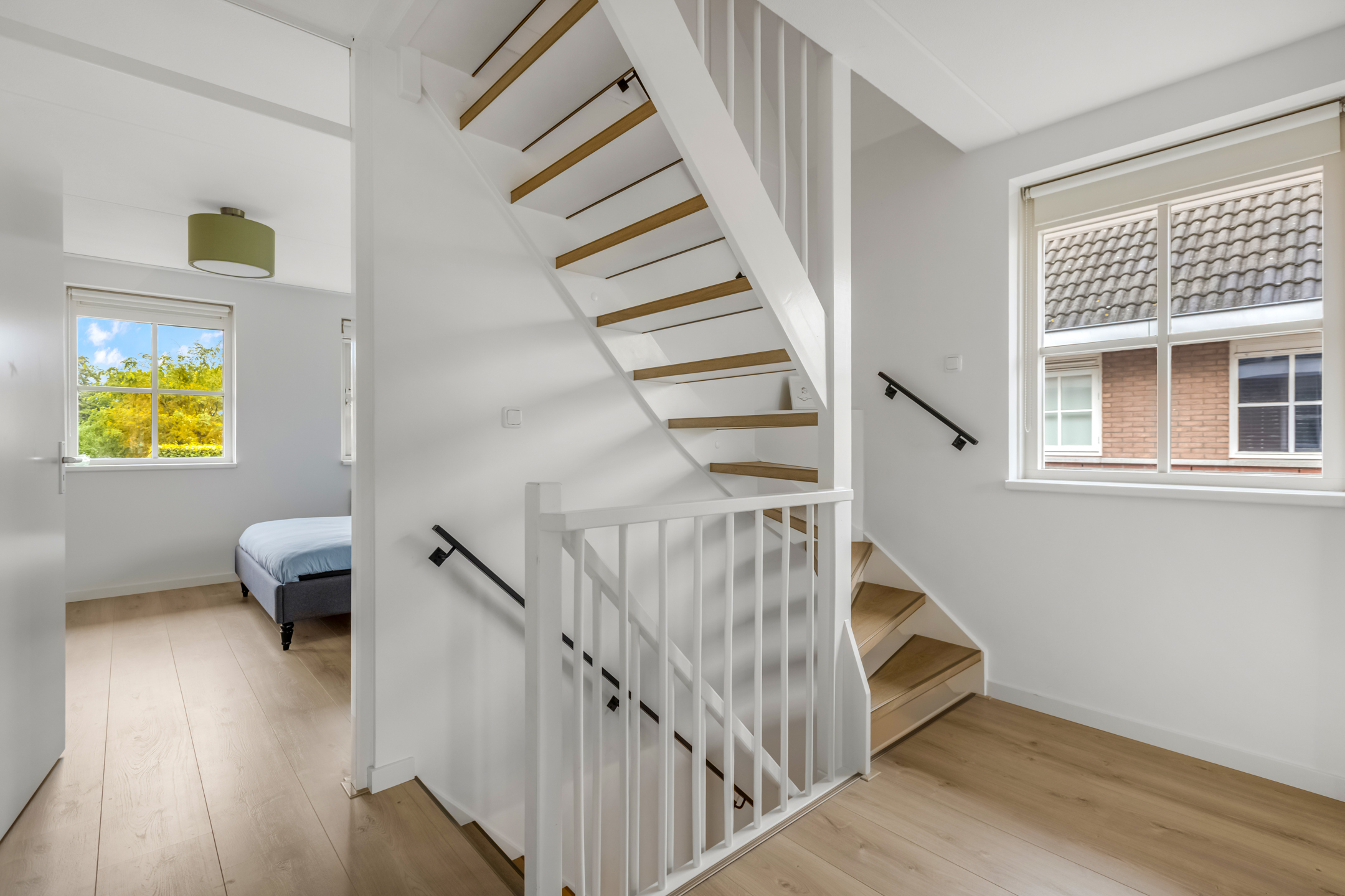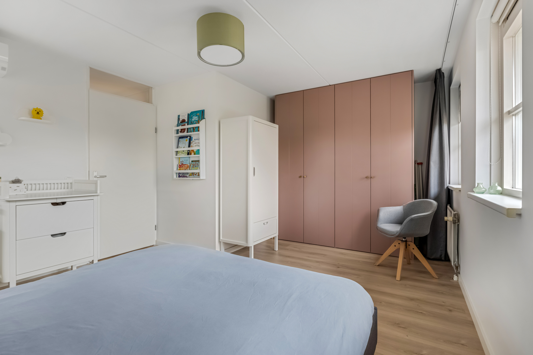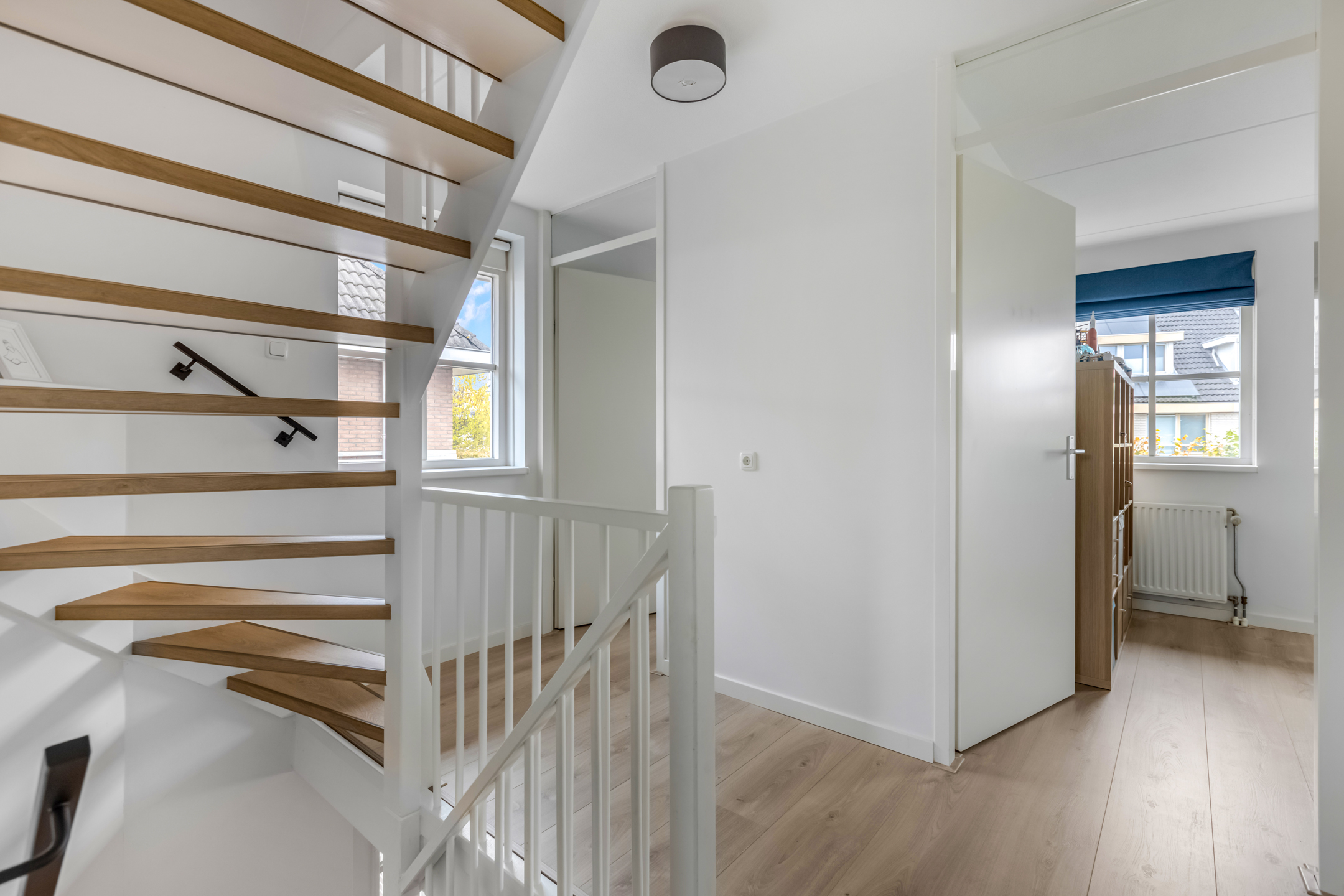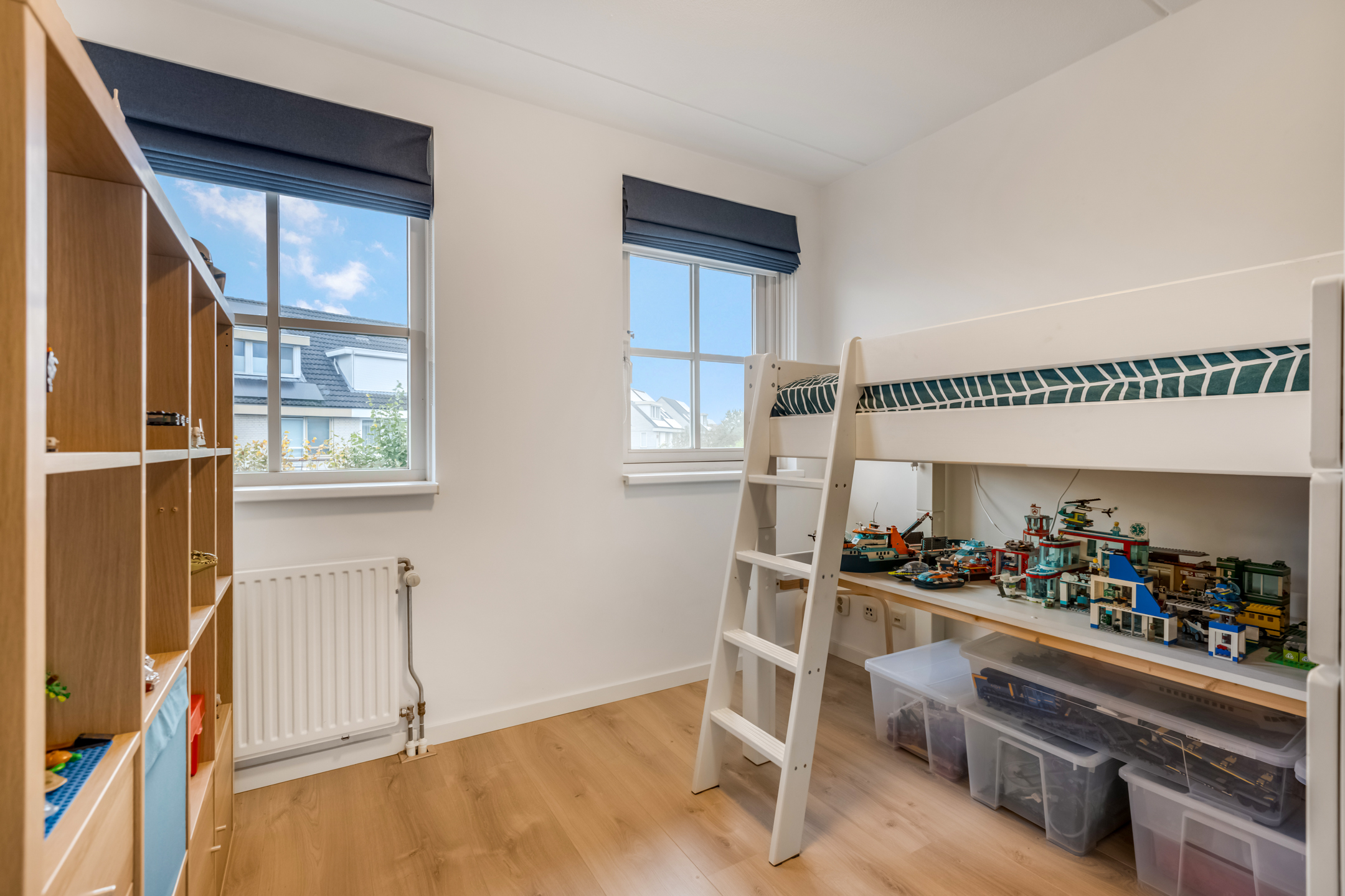 De overloop biedt toegang tot twee slaapkamers en een badkamer. Beide slaapkamers zijn voorzien van een airco en tevens een dakkapel, waardoor er veel natuurlijk licht binnenvalt en extra leefruimte is gecreëerd. De badkamer is compleet ingericht met een inloopdouche, wastafelmeubel en hangcloset. De gehele verdieping – met uitzondering van de badkamer – is afgewerkt met een fraaie laminaatvloer.