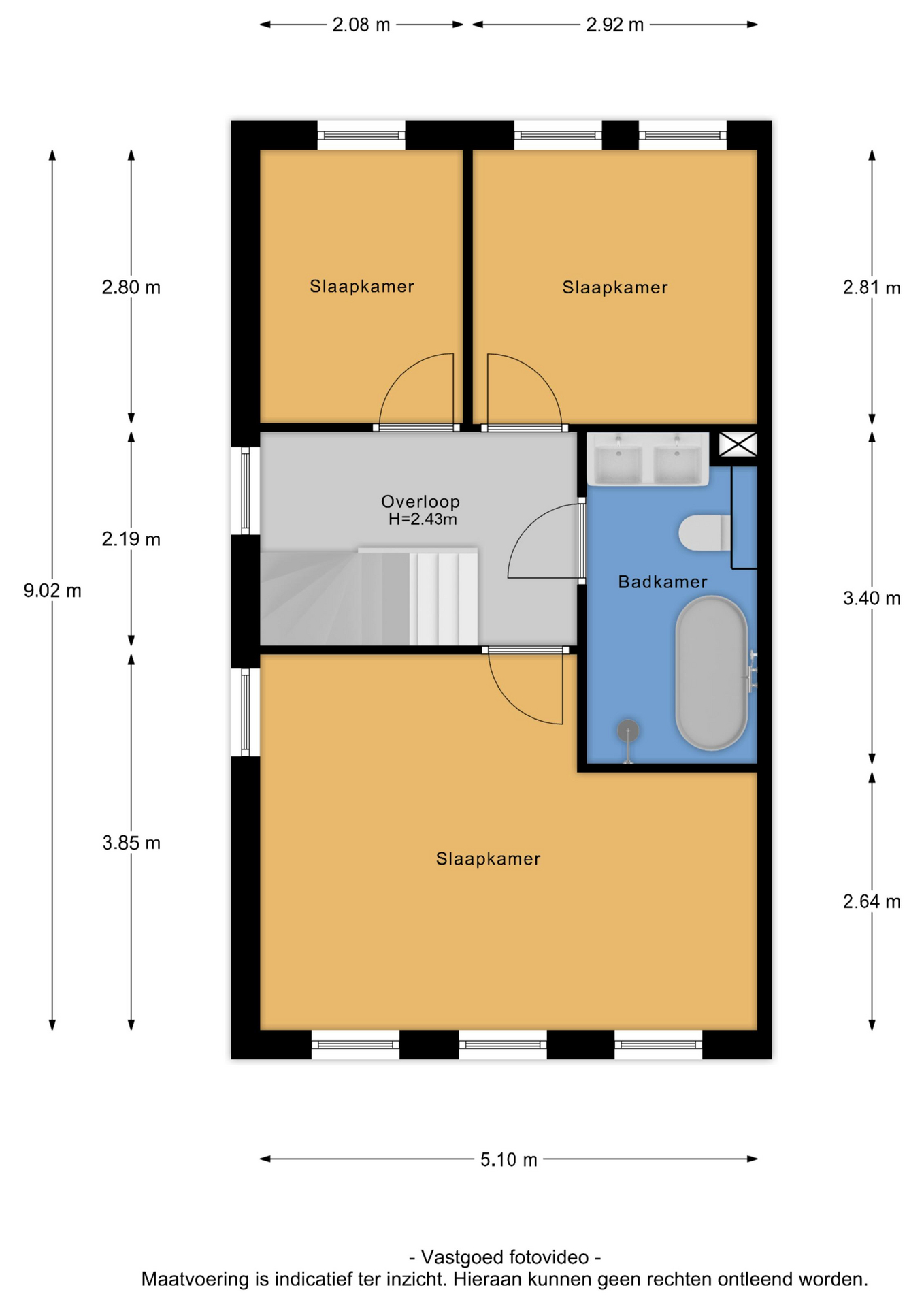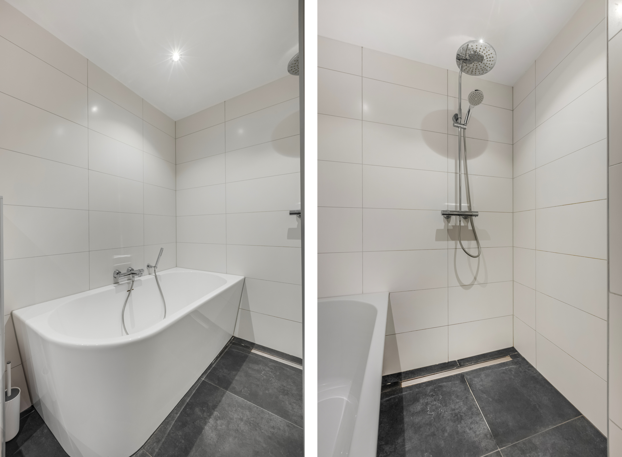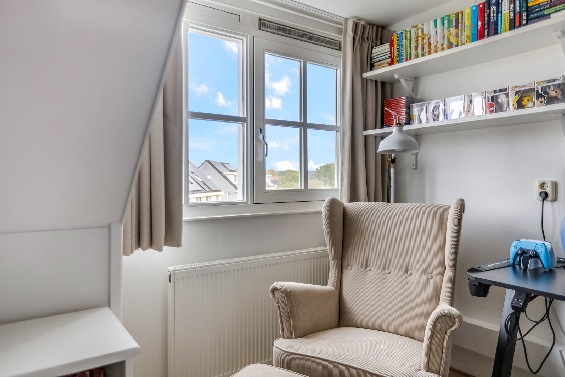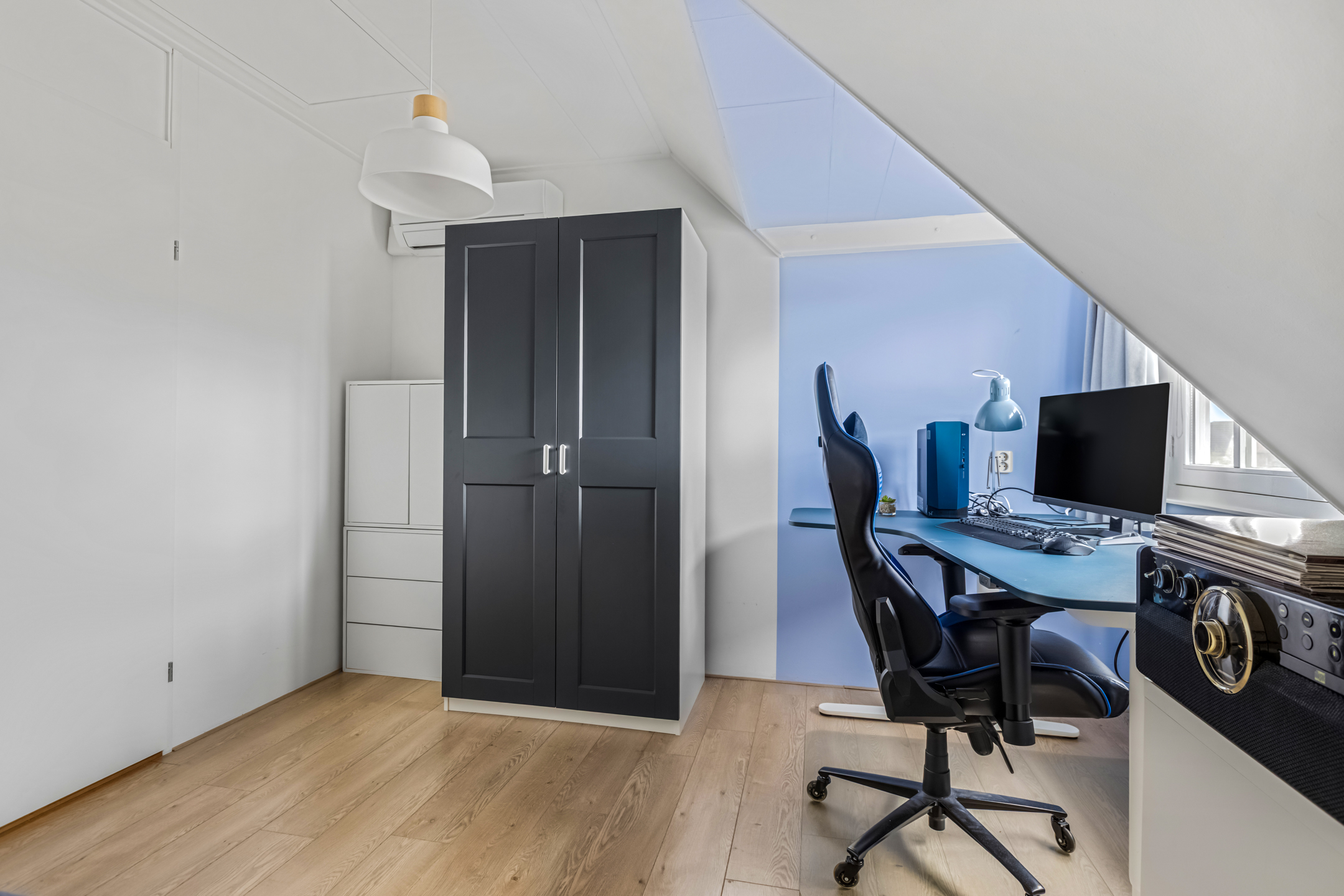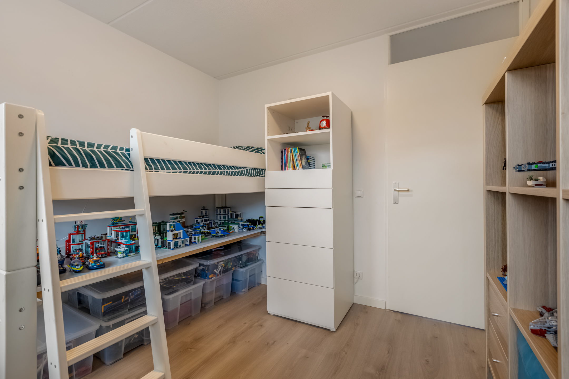 De overloop biedt toegang tot twee slaapkamers en een badkamer. Beide slaapkamers zijn voorzien van een airco en tevens een dakkapel, waardoor er veel natuurlijk licht binnenvalt en extra leefruimte is gecreëerd. De badkamer is compleet ingericht met een inloopdouche, wastafelmeubel en hangcloset. De gehele verdieping – met uitzondering van de badkamer – is afgewerkt met een fraaie laminaatvloer.