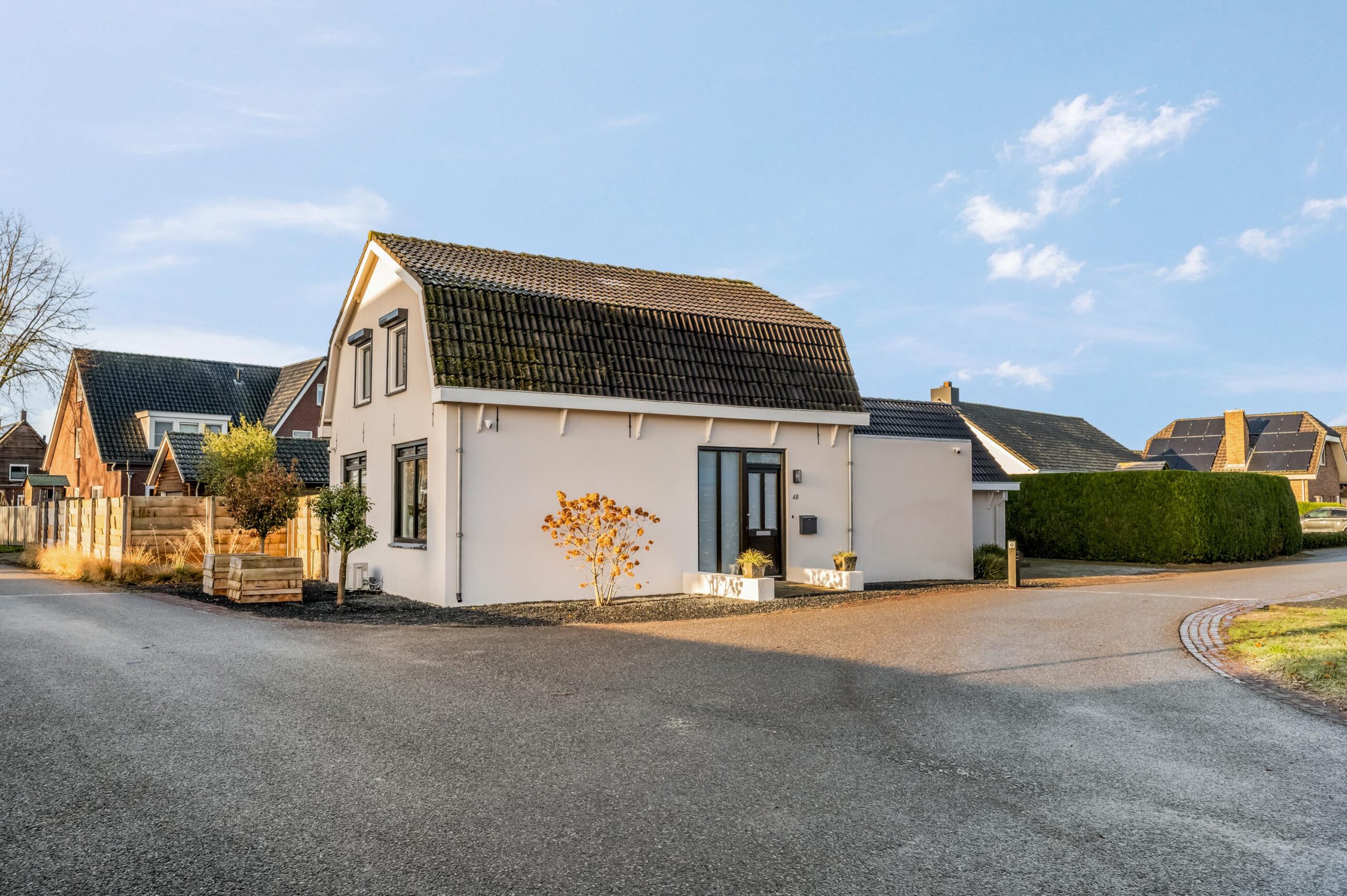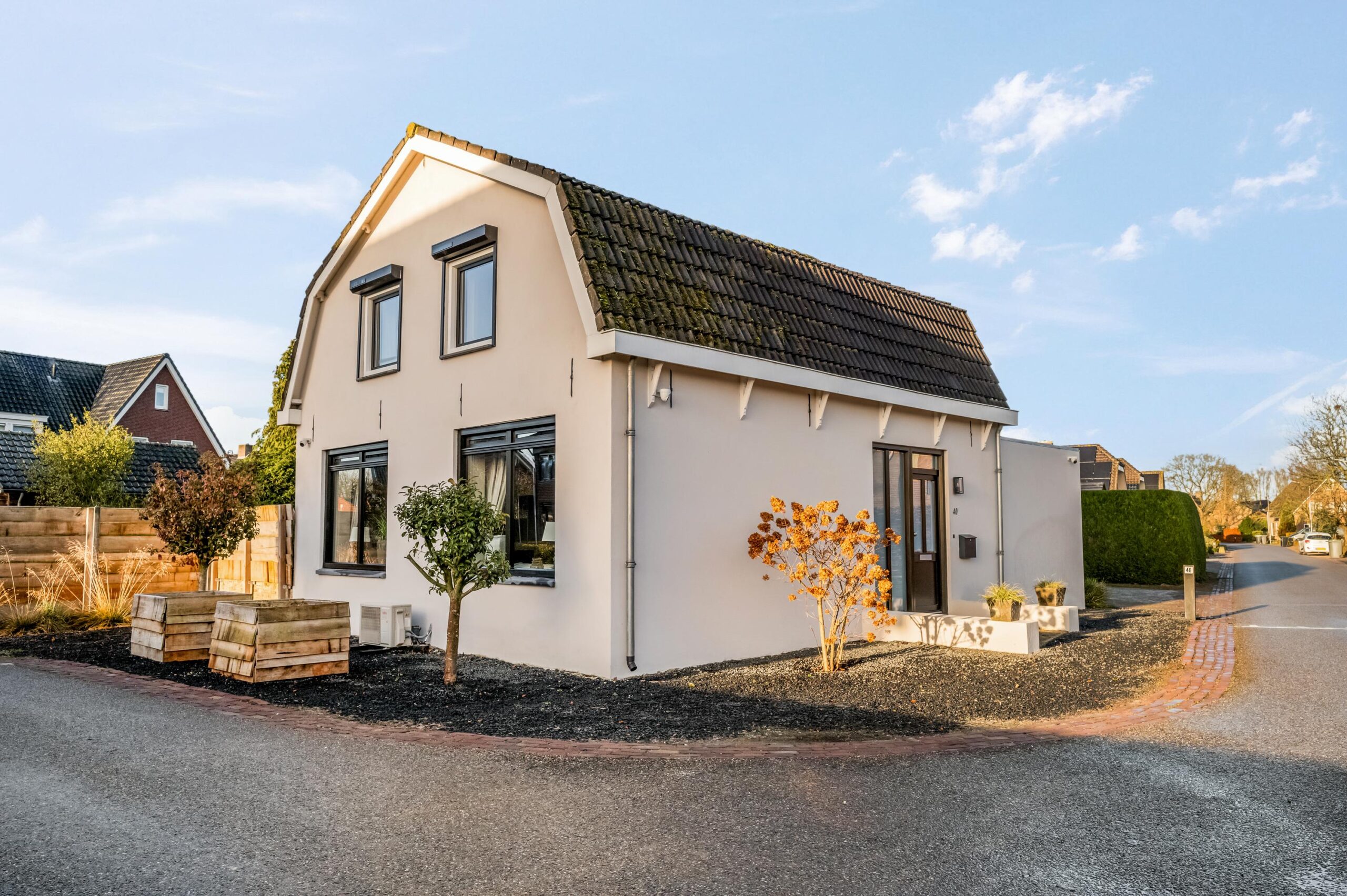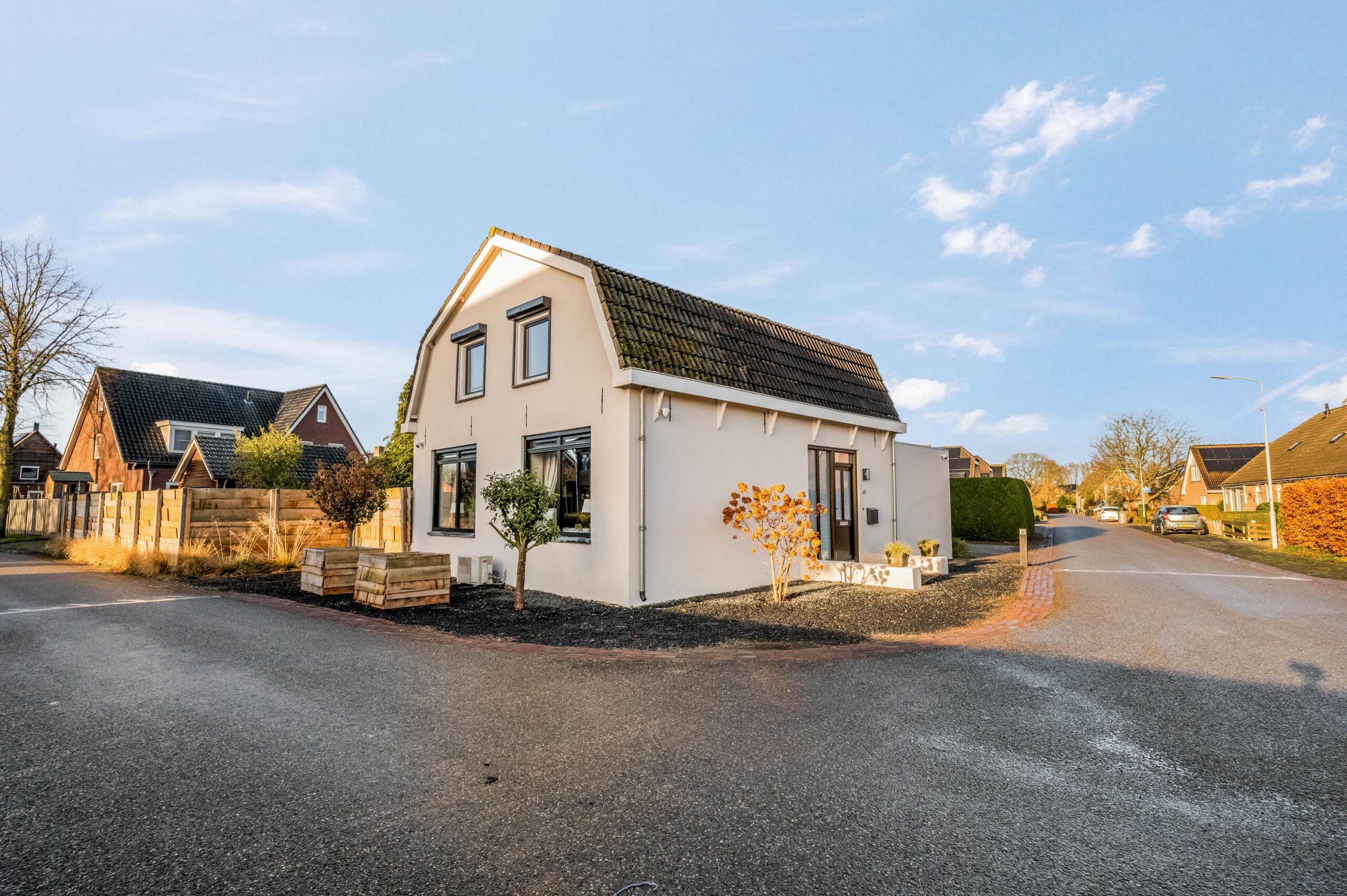 De woning beschikt over een royale tuin rondom, met een aangebouwde berging voorzien van authentieke stalramen, een grote kas en een houthok, hetgeen deze locatie uitermate geschikt maakt voor de tuinliefhebber. Aan de zijkant van de woning is voldoende ruimte om meerdere auto’s op eigen terrein te parkeren. De tuin is verzorgd en doordacht aangelegd met diverse borders, een tuinhuisje en een speelgedeelte voor kinderen, waardoor ontspanning en praktisch gebruik op harmonieuze wijze samenkomen. Ten aanzien van een aangrenzende strook grond langs de rand van de weg is een bruikleenovereenkomst met de gemeente van toepassing.
