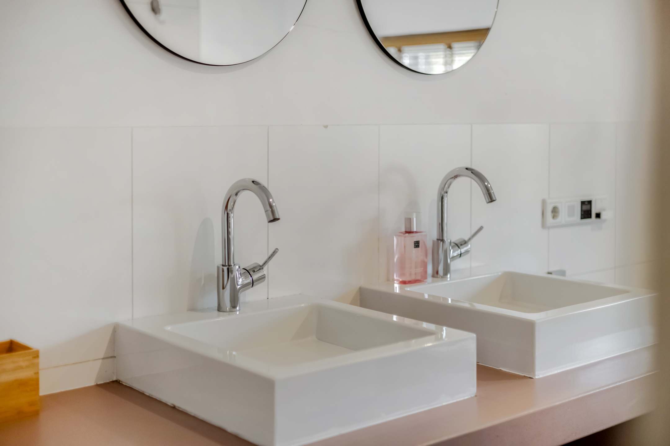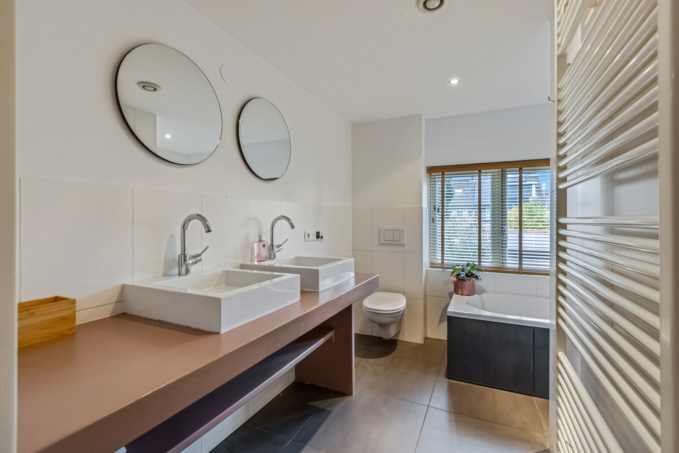 - Ligbad, toilet, douche, dubbele wastafel