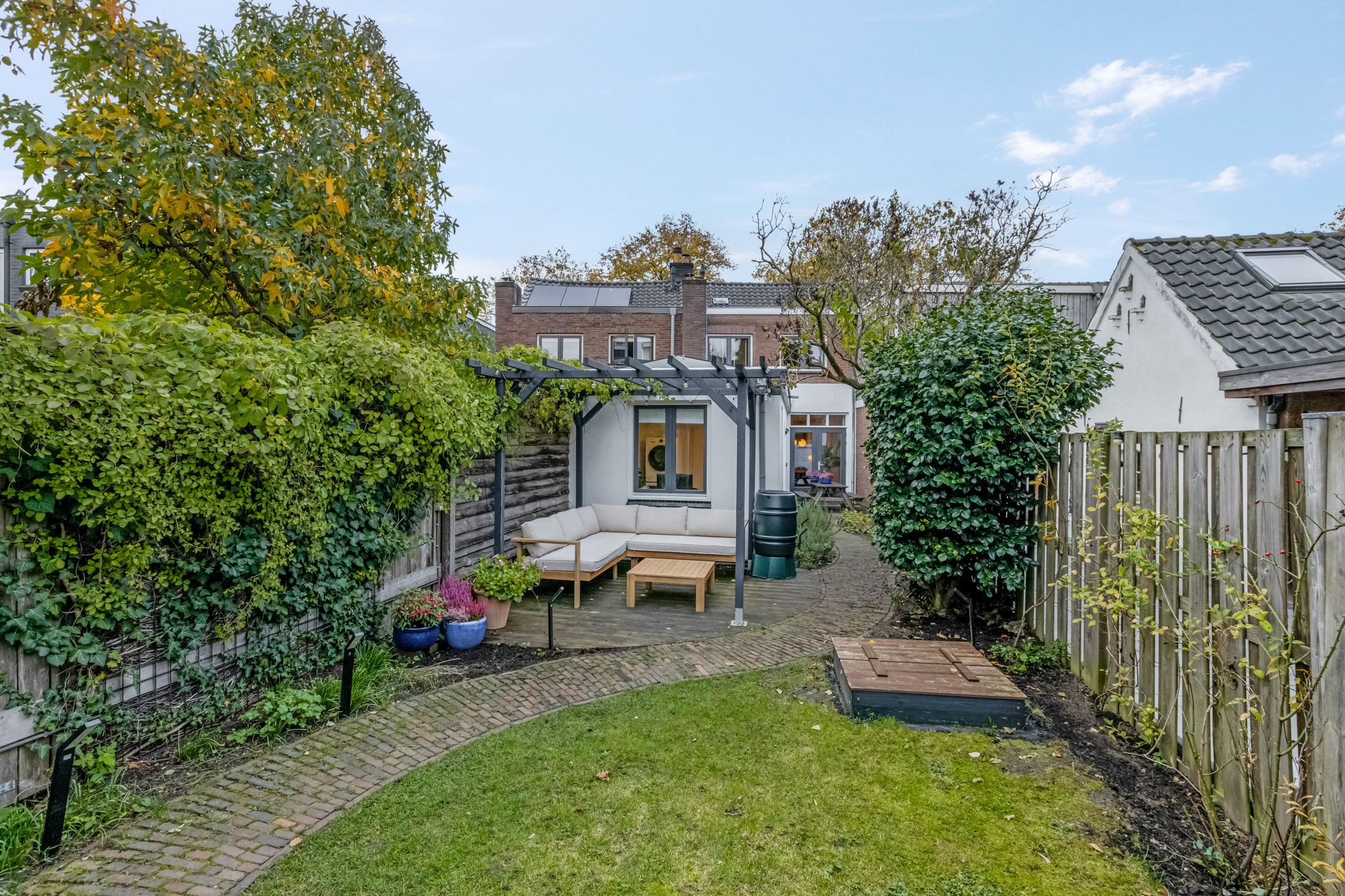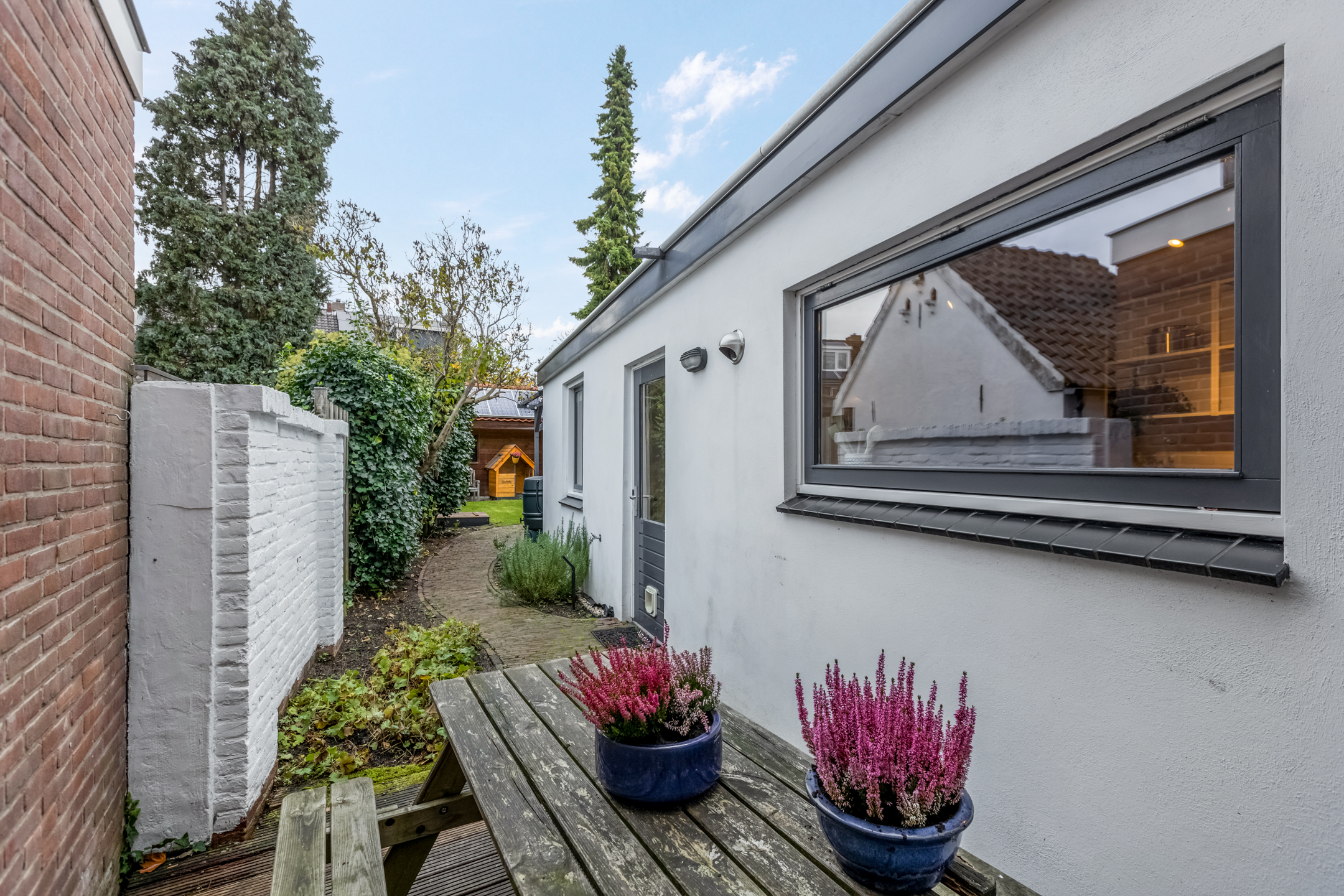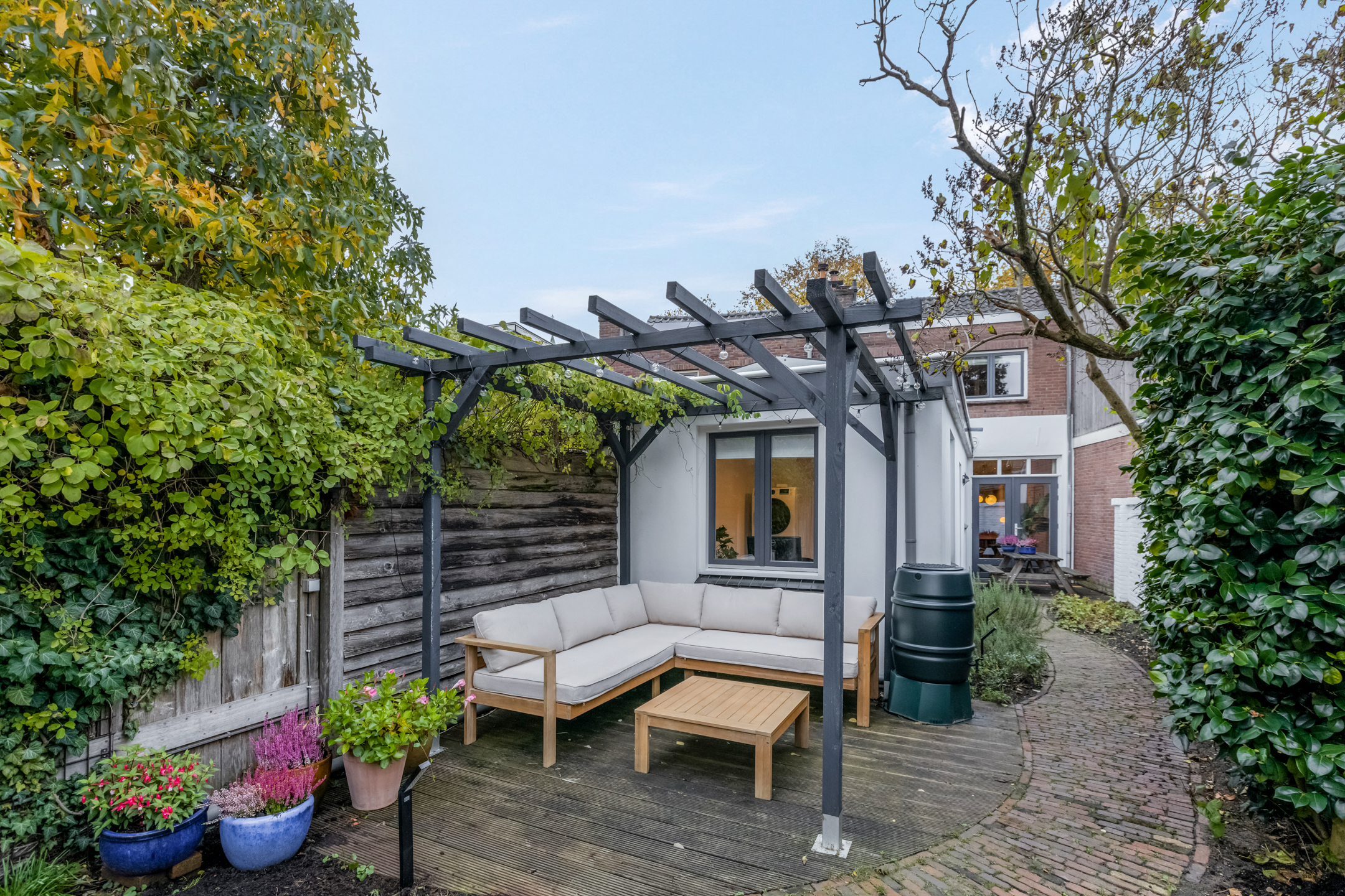Te bereiken via buiteningang die praktisch is weggewerkt voor optimaal gebruik van de tuin.