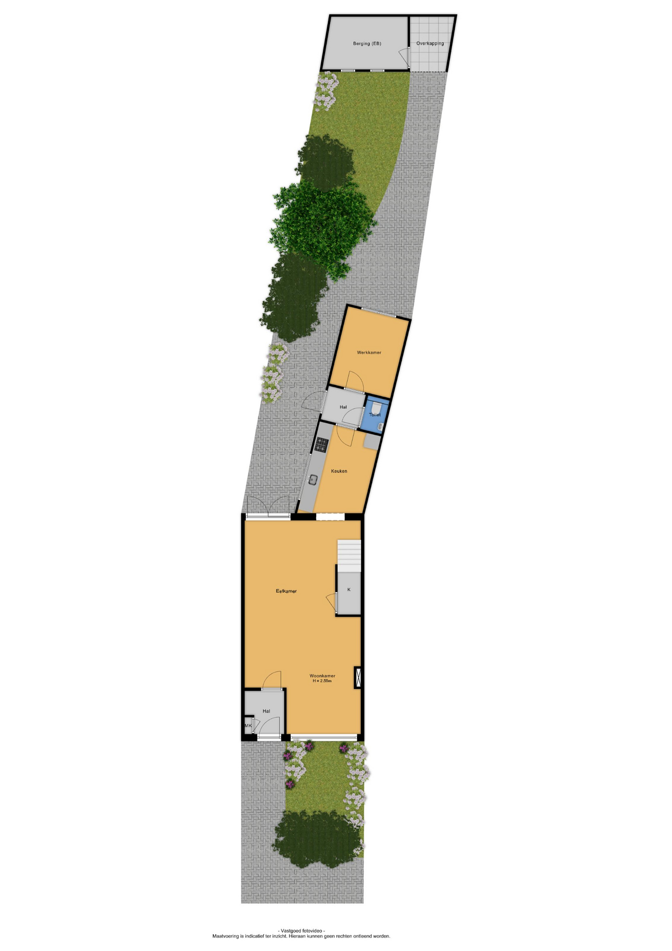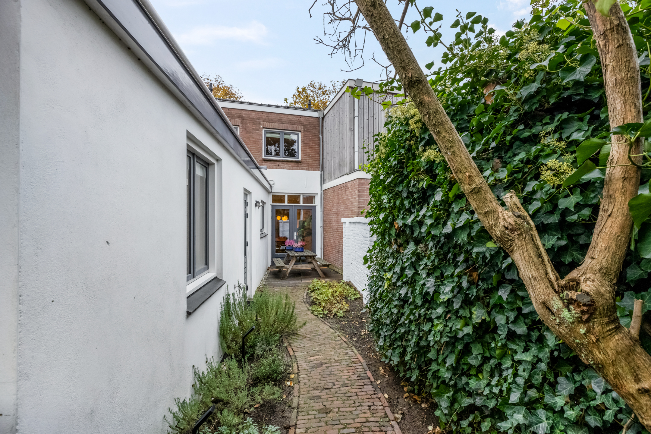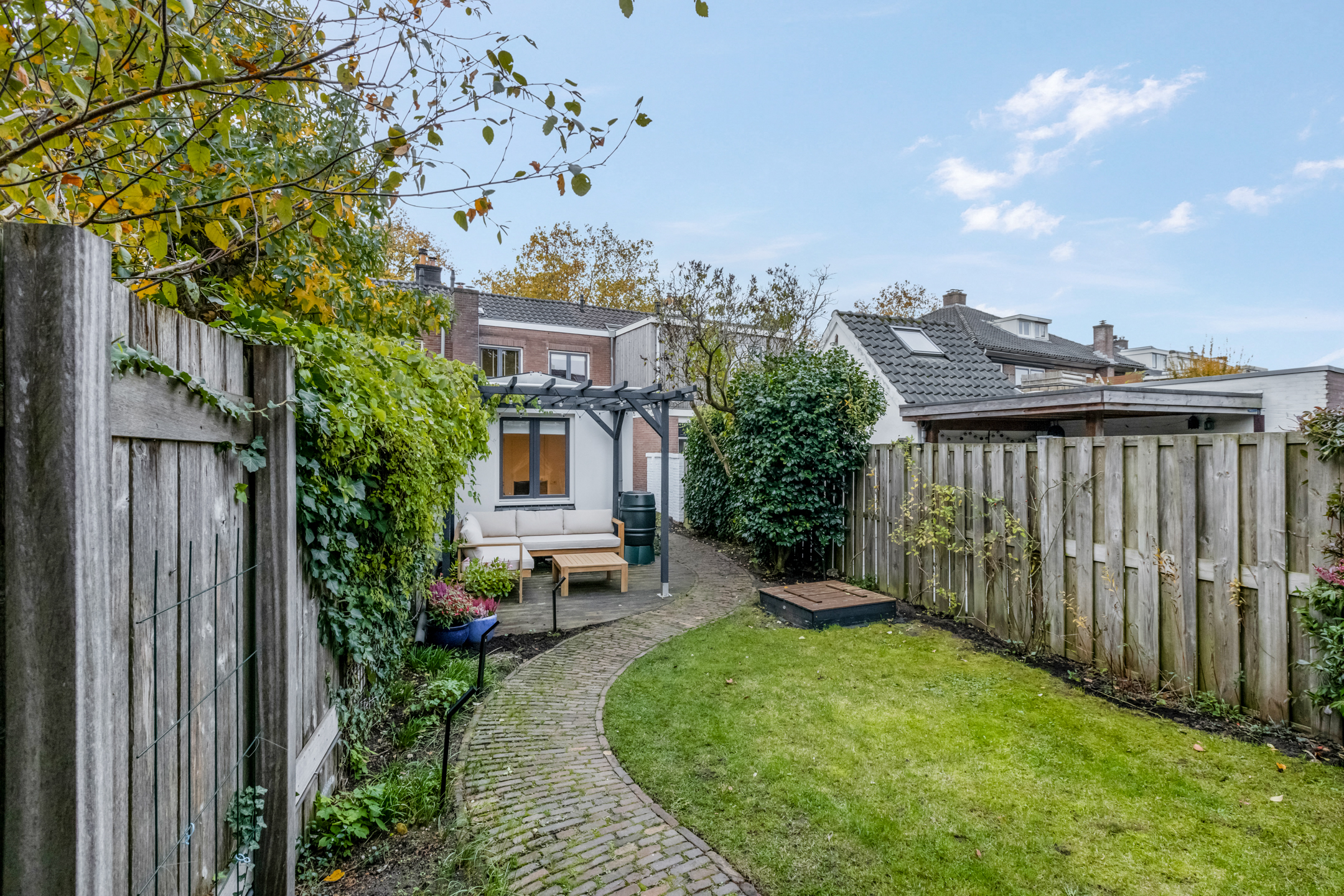 Te bereiken via buiteningang die praktisch is weggewerkt voor optimaal gebruik van de tuin.