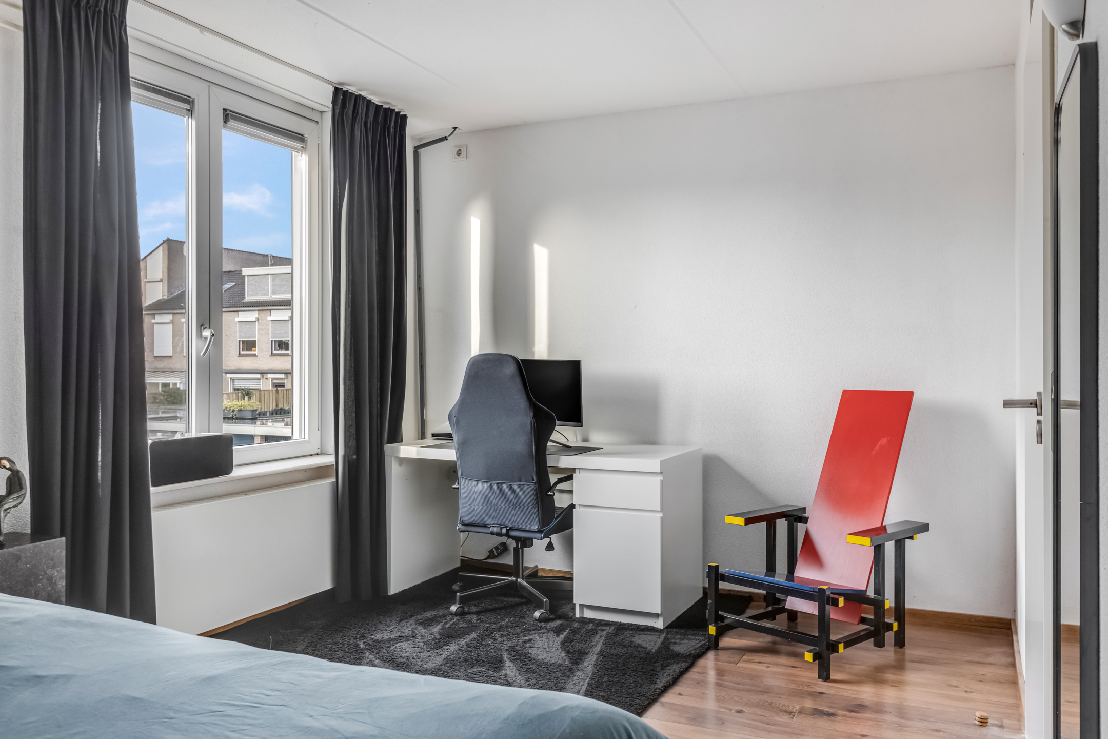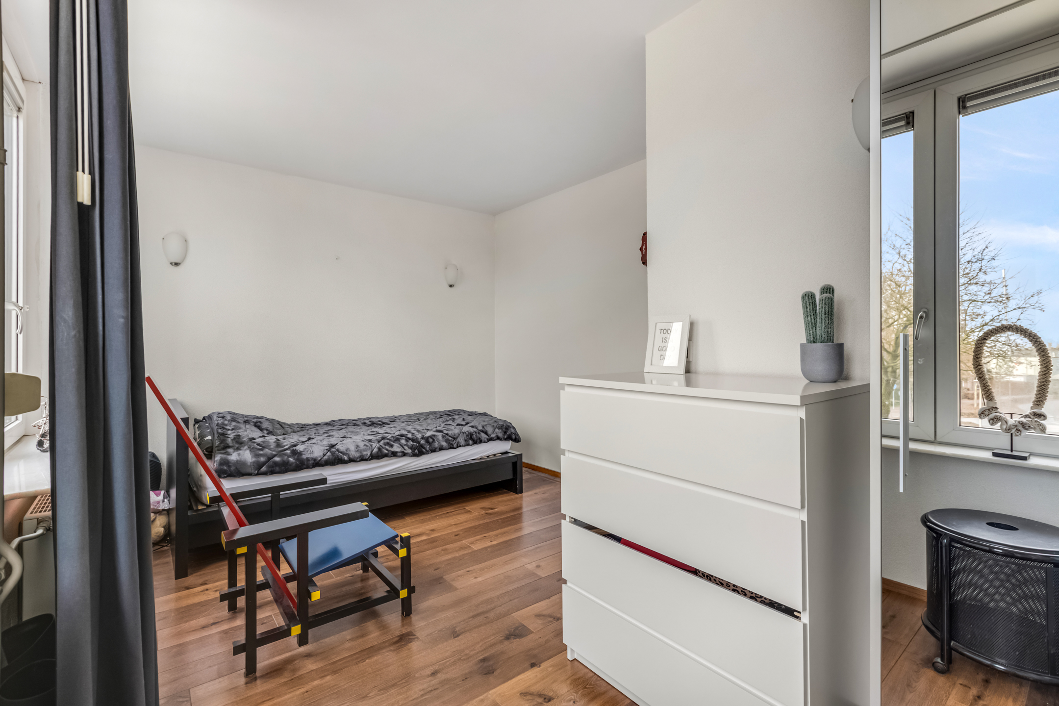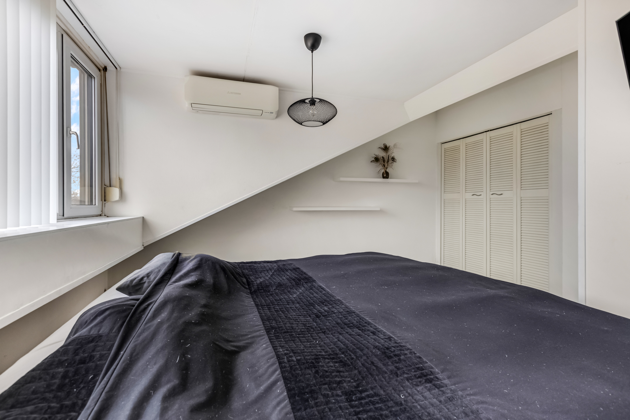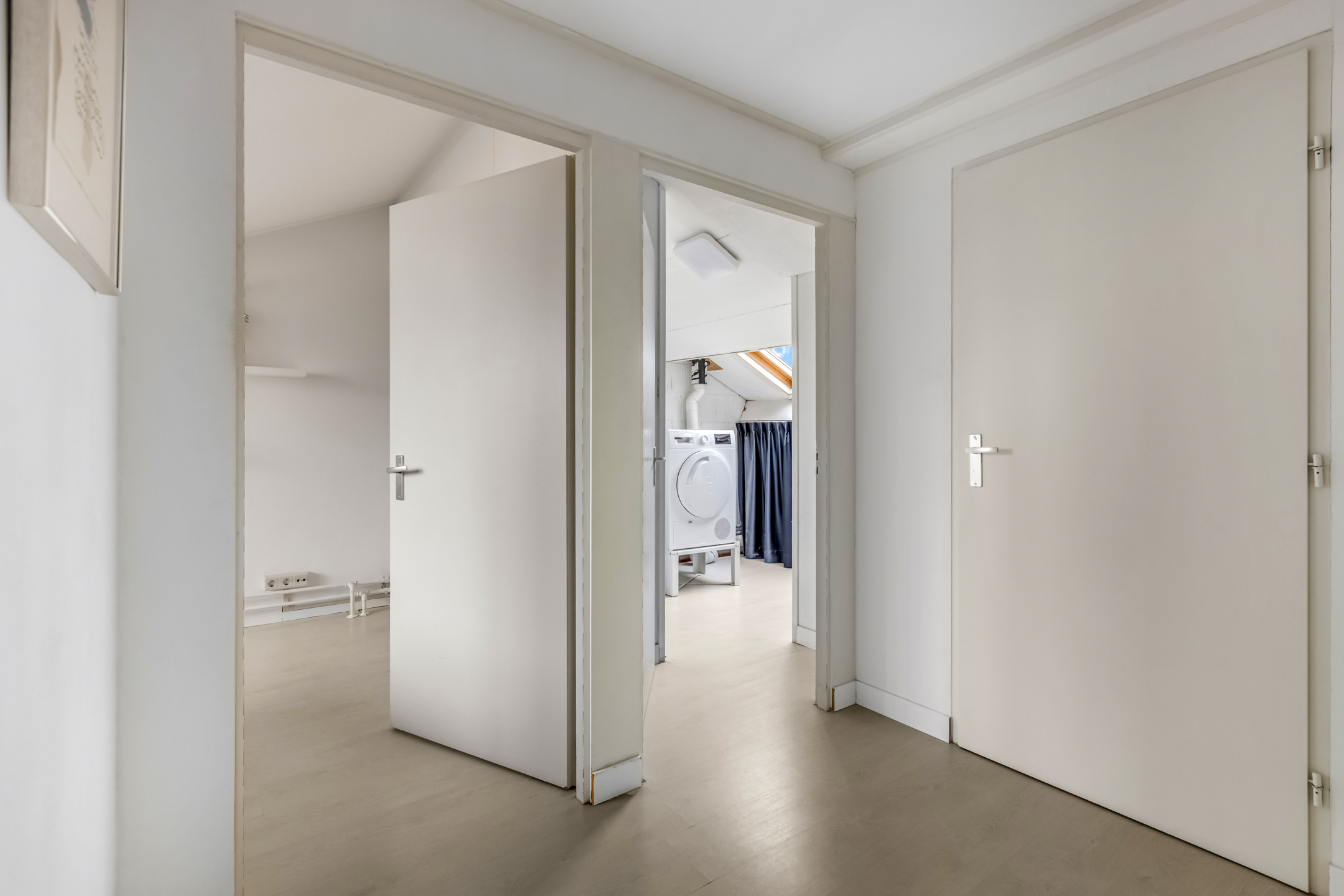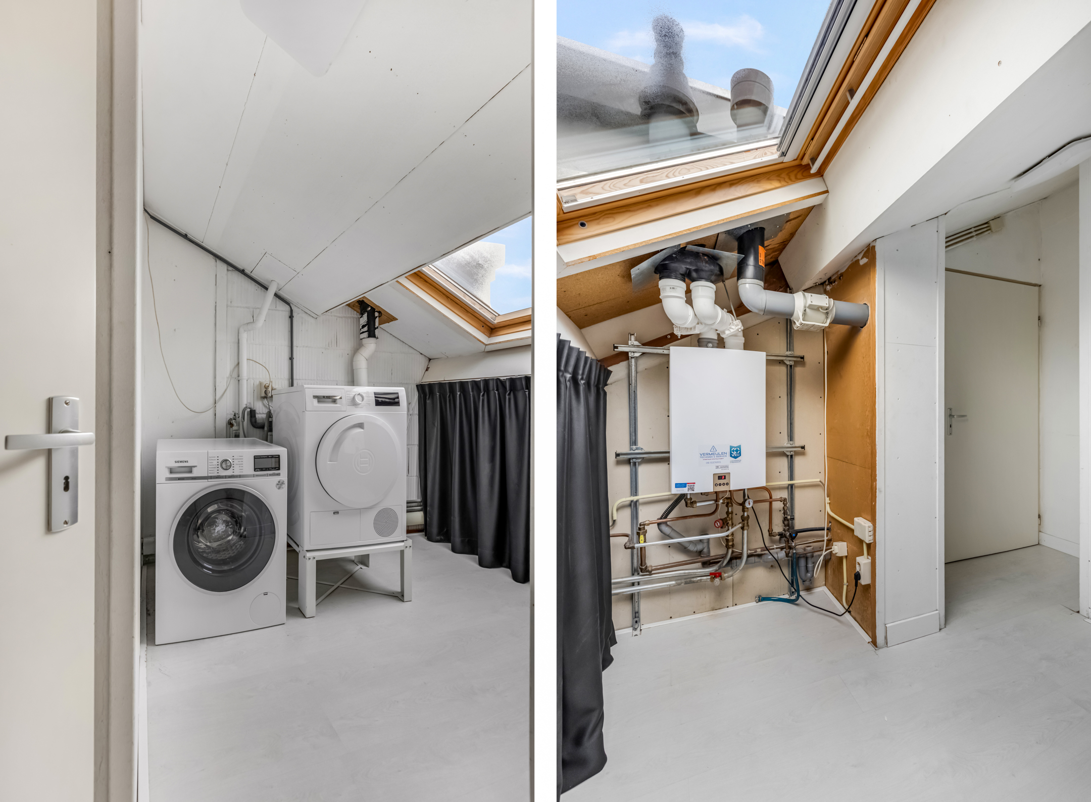 De overloop biedt toegang tot twee slaapkamers en een functionele waskamer. De slaapkamer aan de voorzijde is uitgerust met een dakkapel, terwijl de royale slaapkamer aan de achterzijde beschikt over een airco, dakkapel en een ruime inbouwkast. De waskamer biedt veel bergruimte, is voorzien van een dakraam en herbergt tevens de cv-installatie. De gehele verdieping is afgewerkt met een laminaatvloer en de slaapkamers zijn uitgerust met rolluiken.