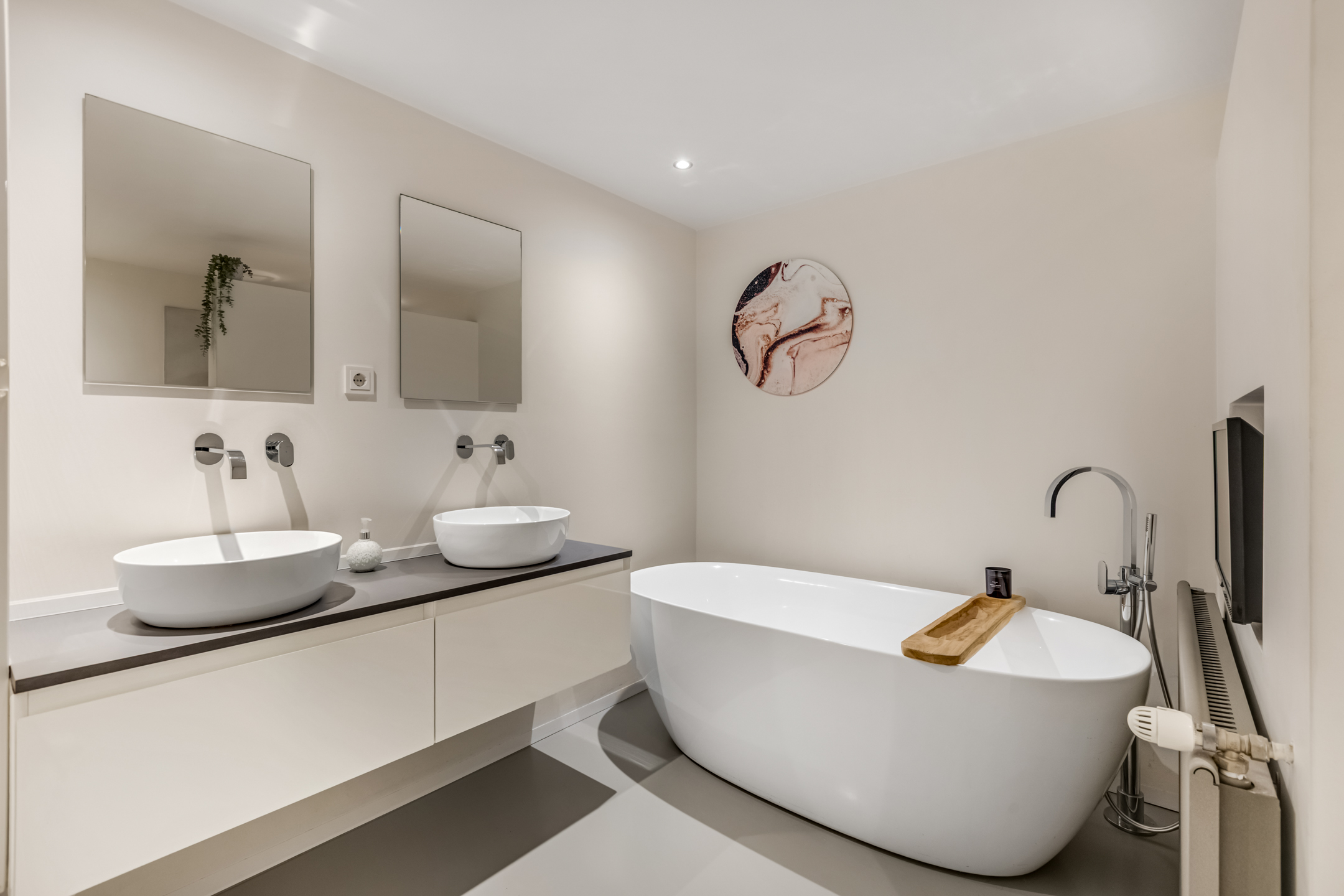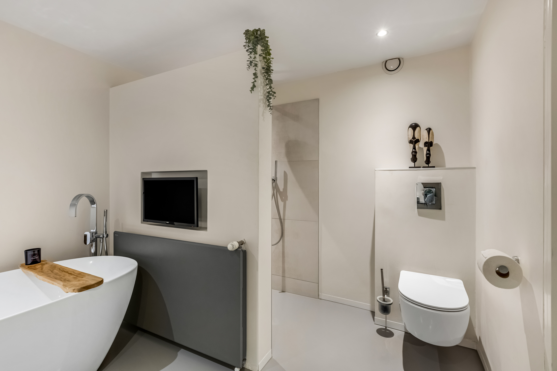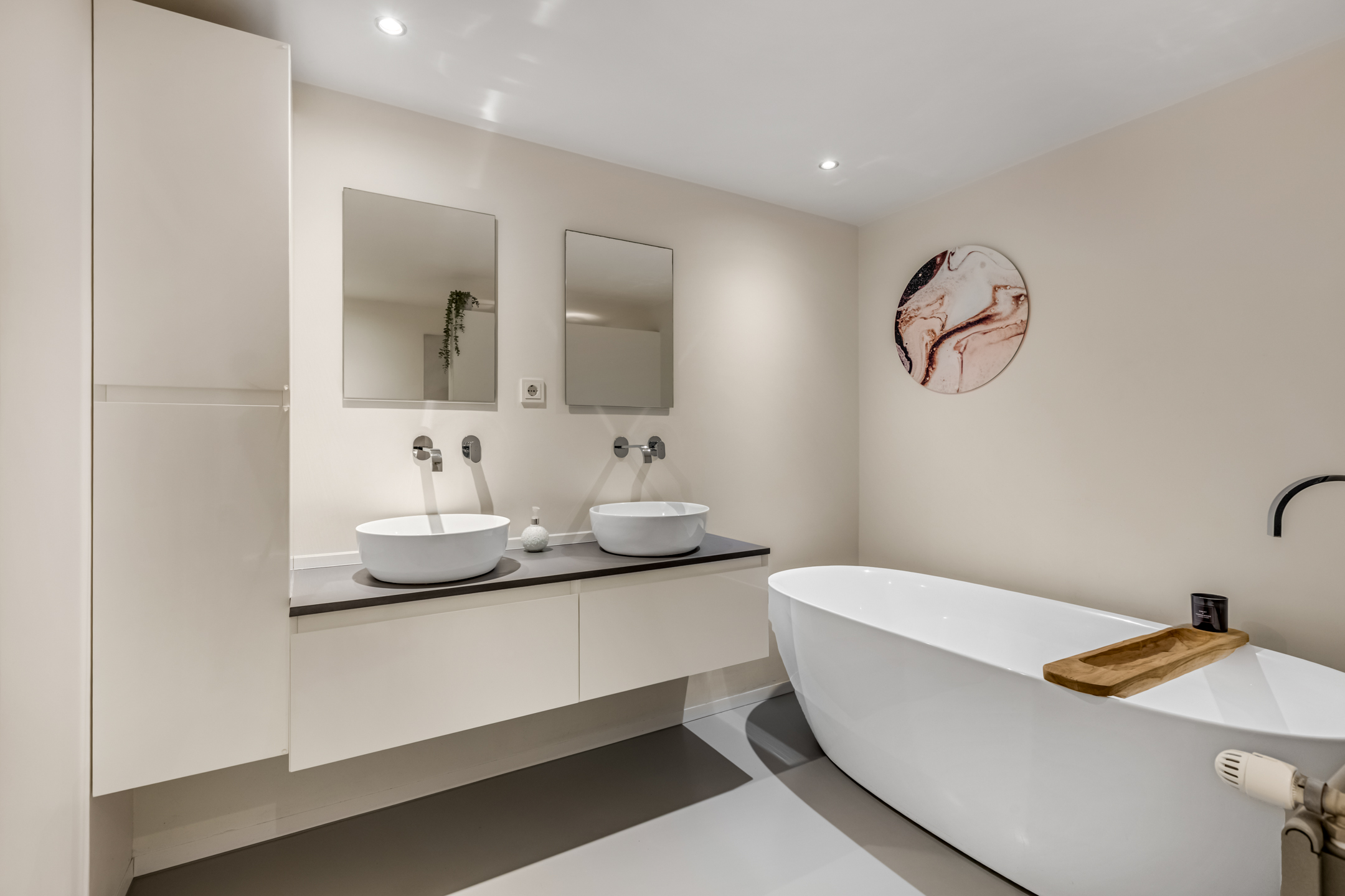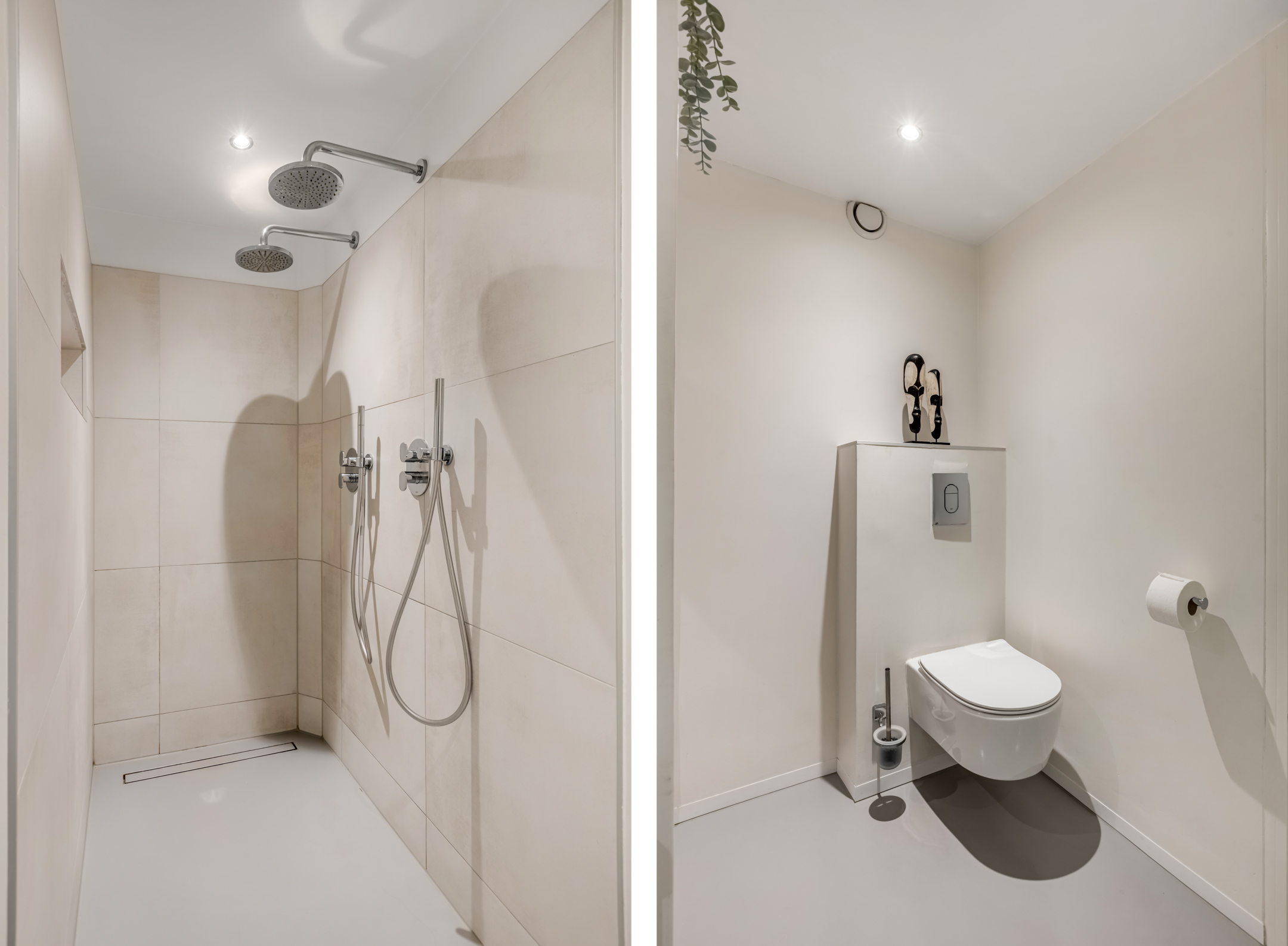 - Toilet, dubbele wastafel, wastafelmeubel, inloopdouche