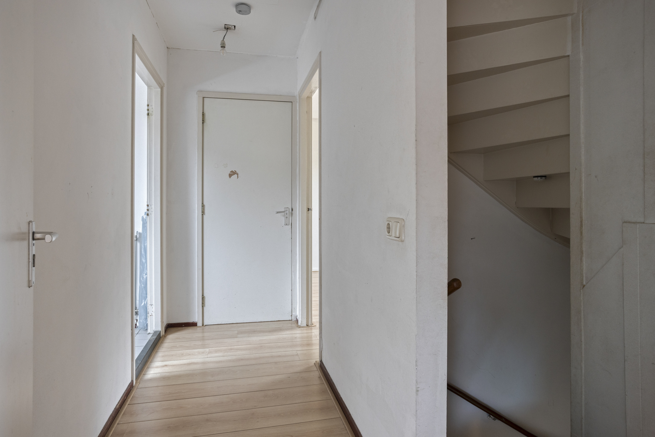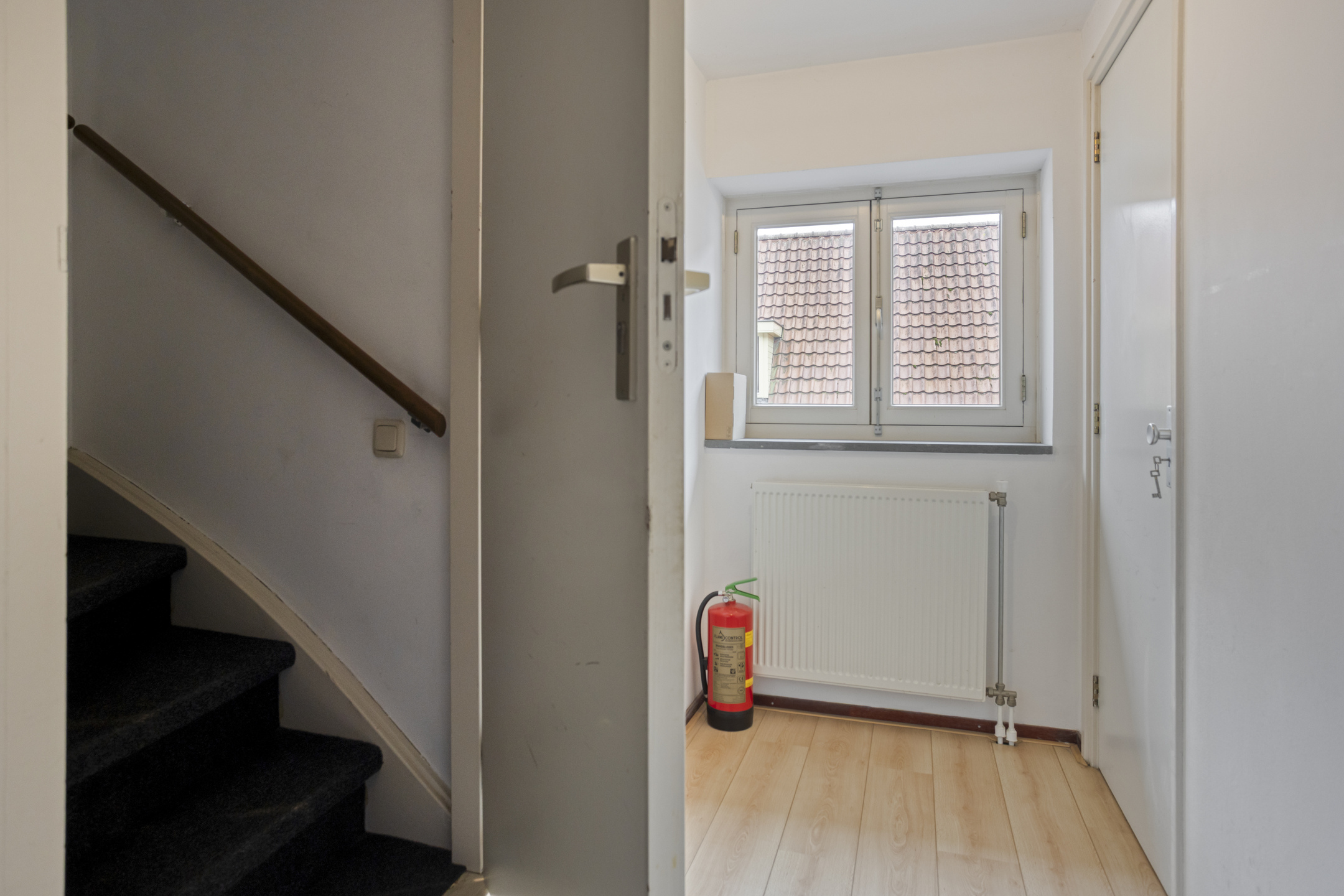 Via de entree bereik je de hal met meterkast en de trapopgang naar de verdiepingen.