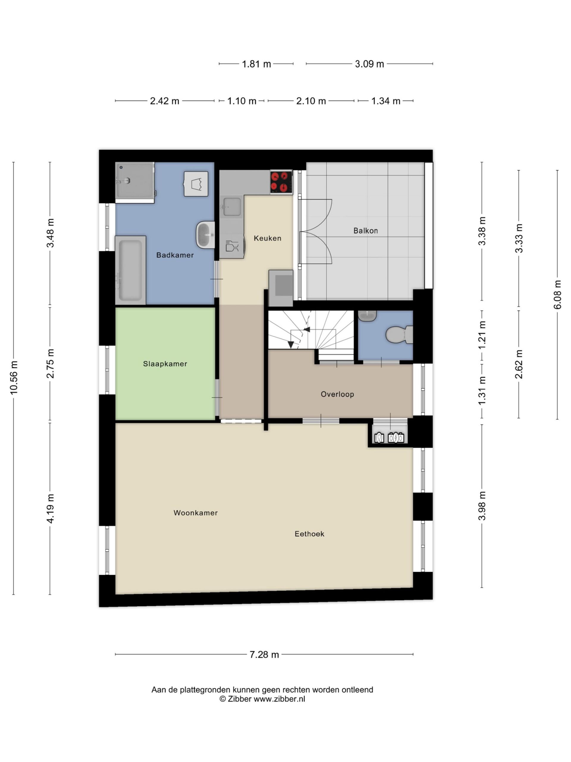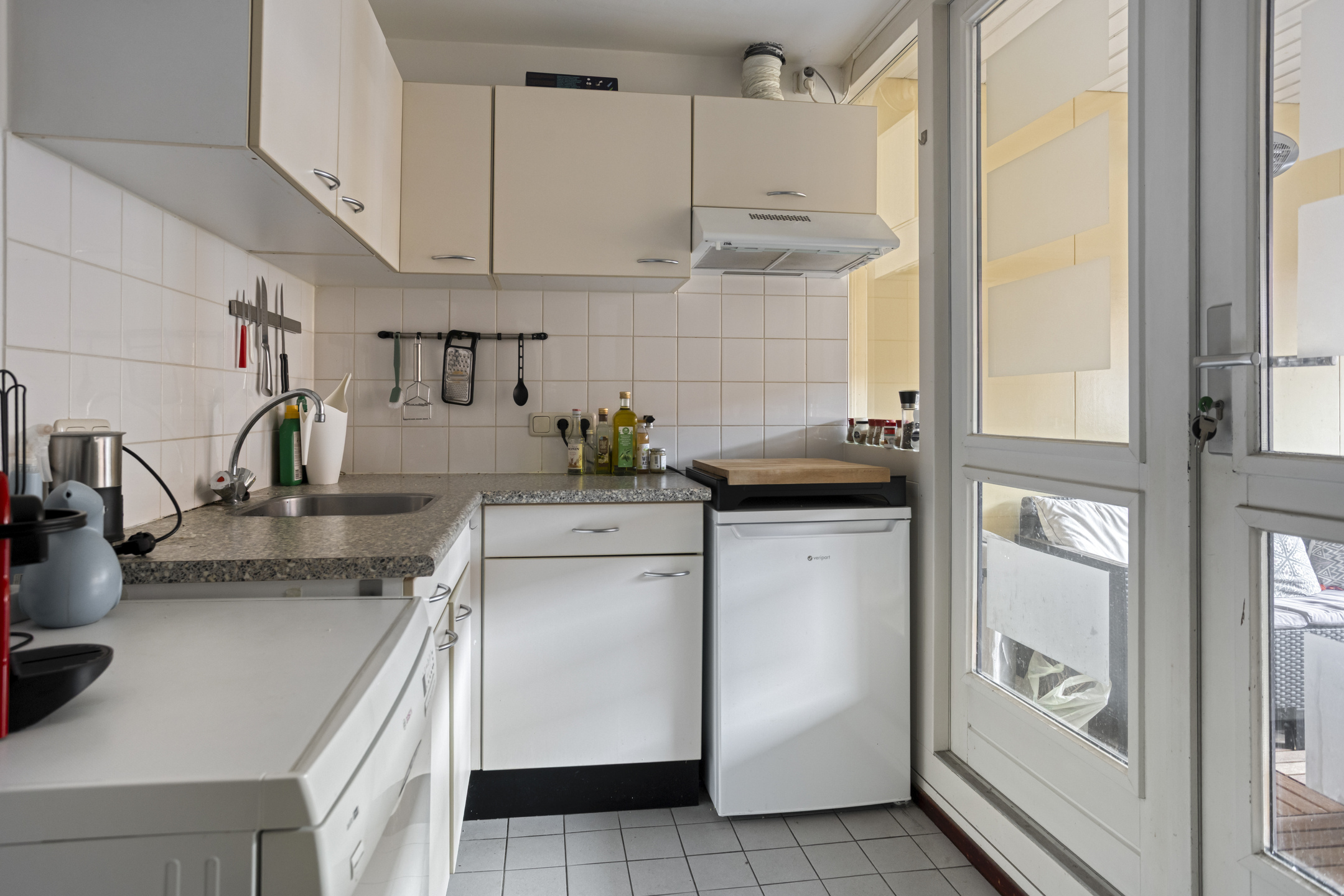Op de overloop vind je een separate toiletruimte en de meterkast. De woonkamer van circa 31 m² vormt een lichte leefruimte. Vanuit een tussenliggende gang bereik je de slaapkamer, de badkamer en de keuken. De badkamer is voorzien van een wastafel, douche, ligbad en een aansluiting voor de wasmachine. De halfopen keuken beschikt over een kookplaat en afzuigkap. Via openslaande deuren stap je de loggia op, waar je in alle rust kunt genieten van de beschutte ligging aan de binnenzijde van het complex.