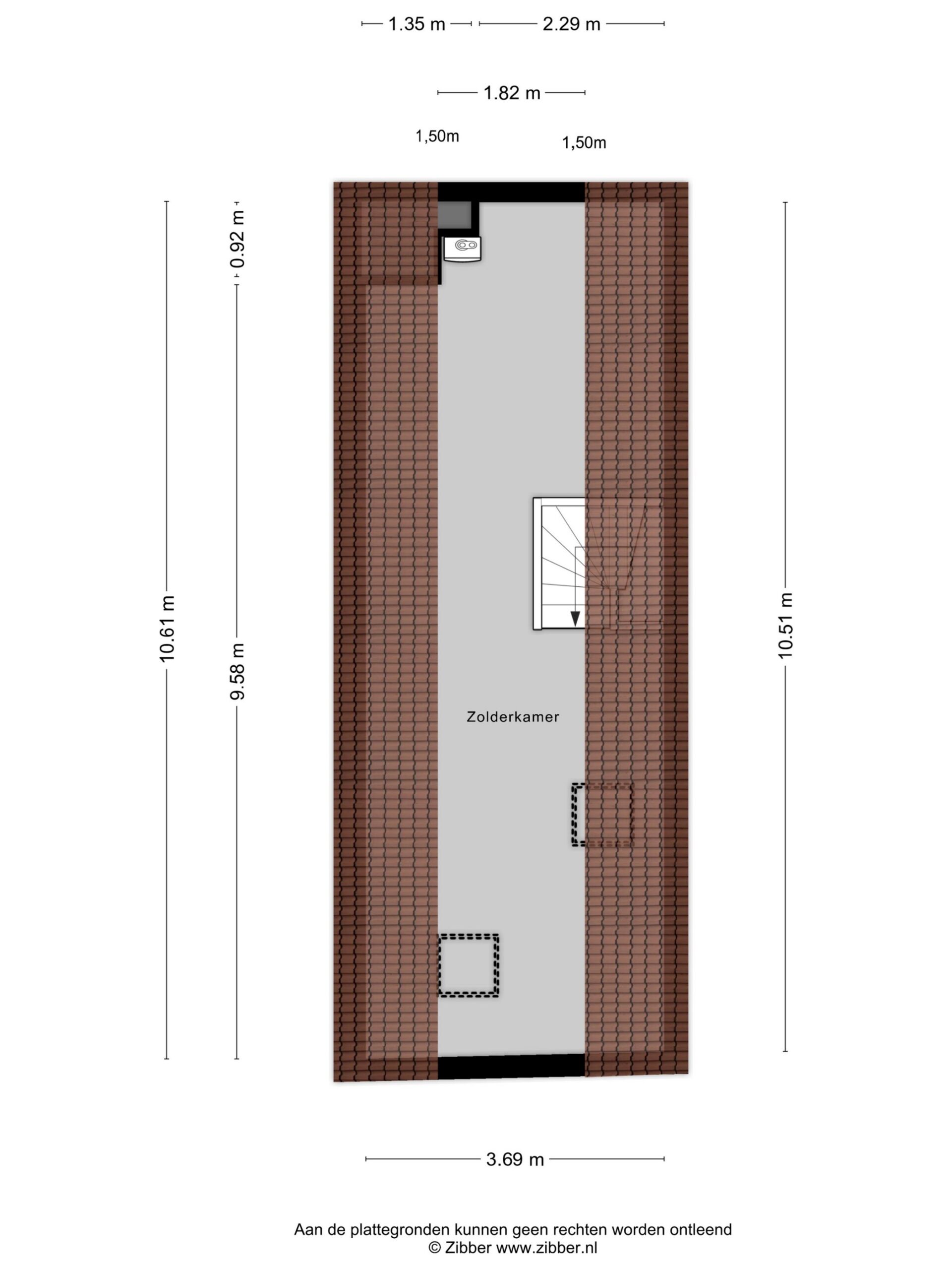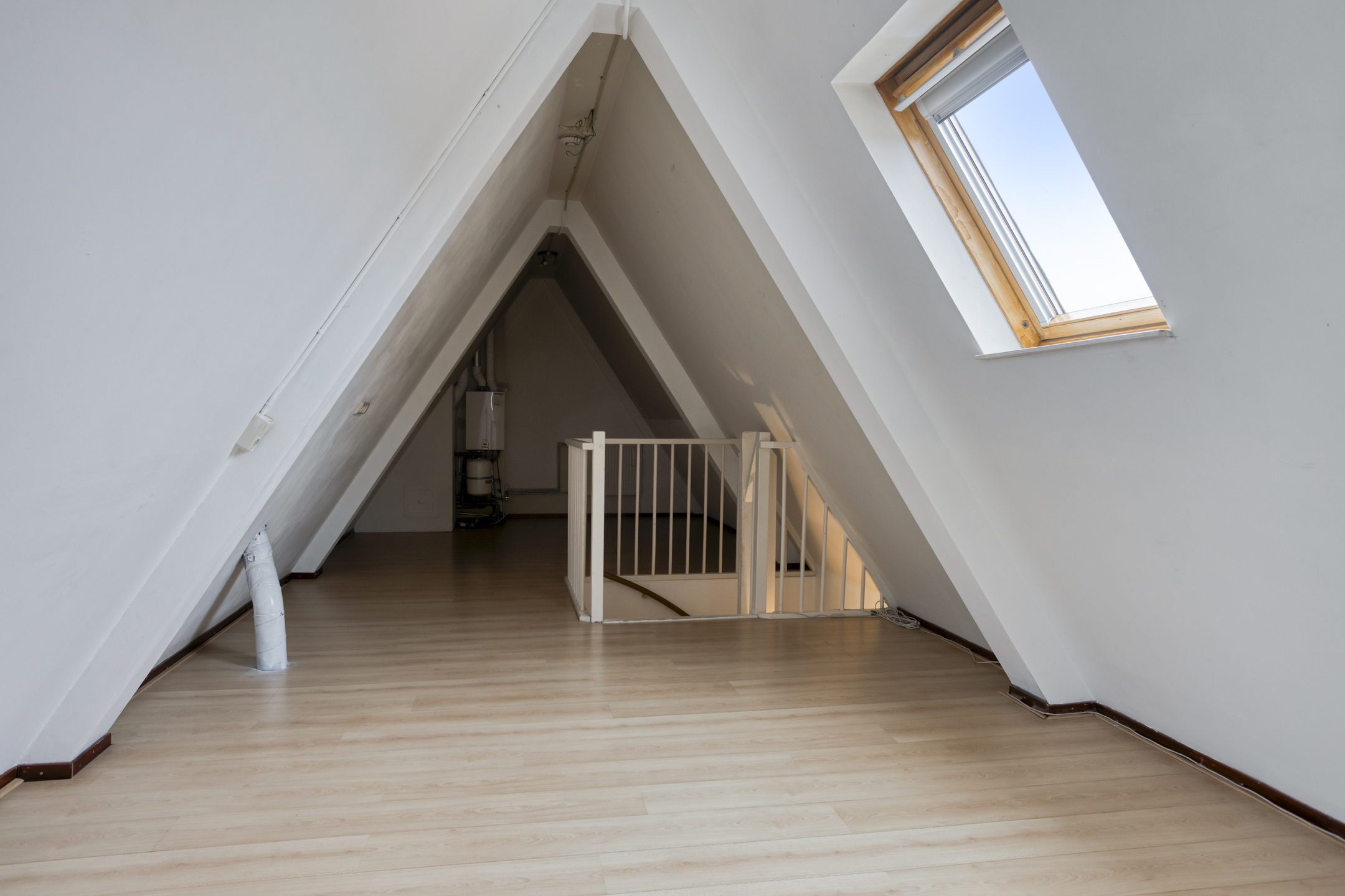 De zolderverdieping bestaat uit een ruime kamer met dakramen. In een aparte hoek bevindt zich de opstelplaats voor de cv-installatie.