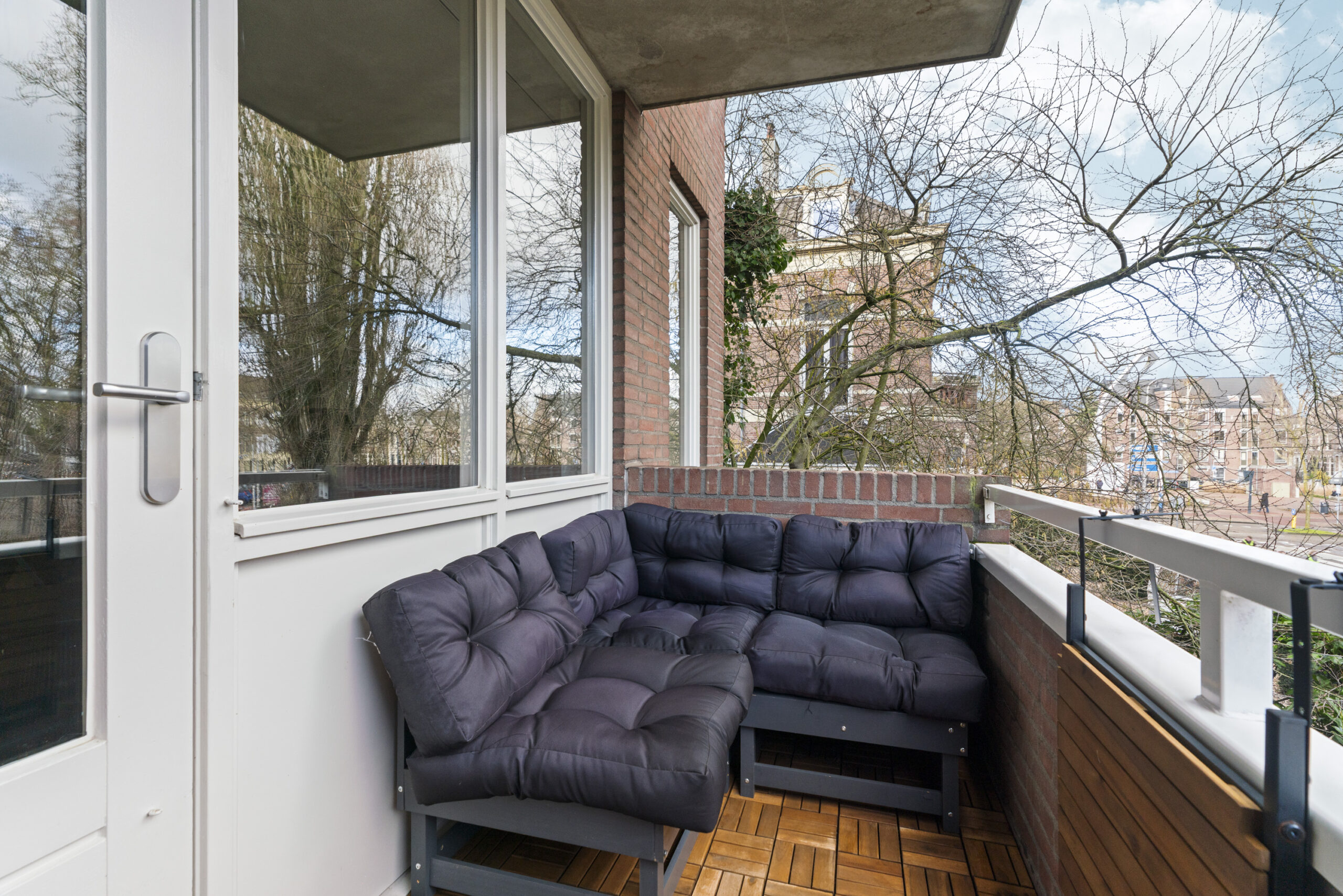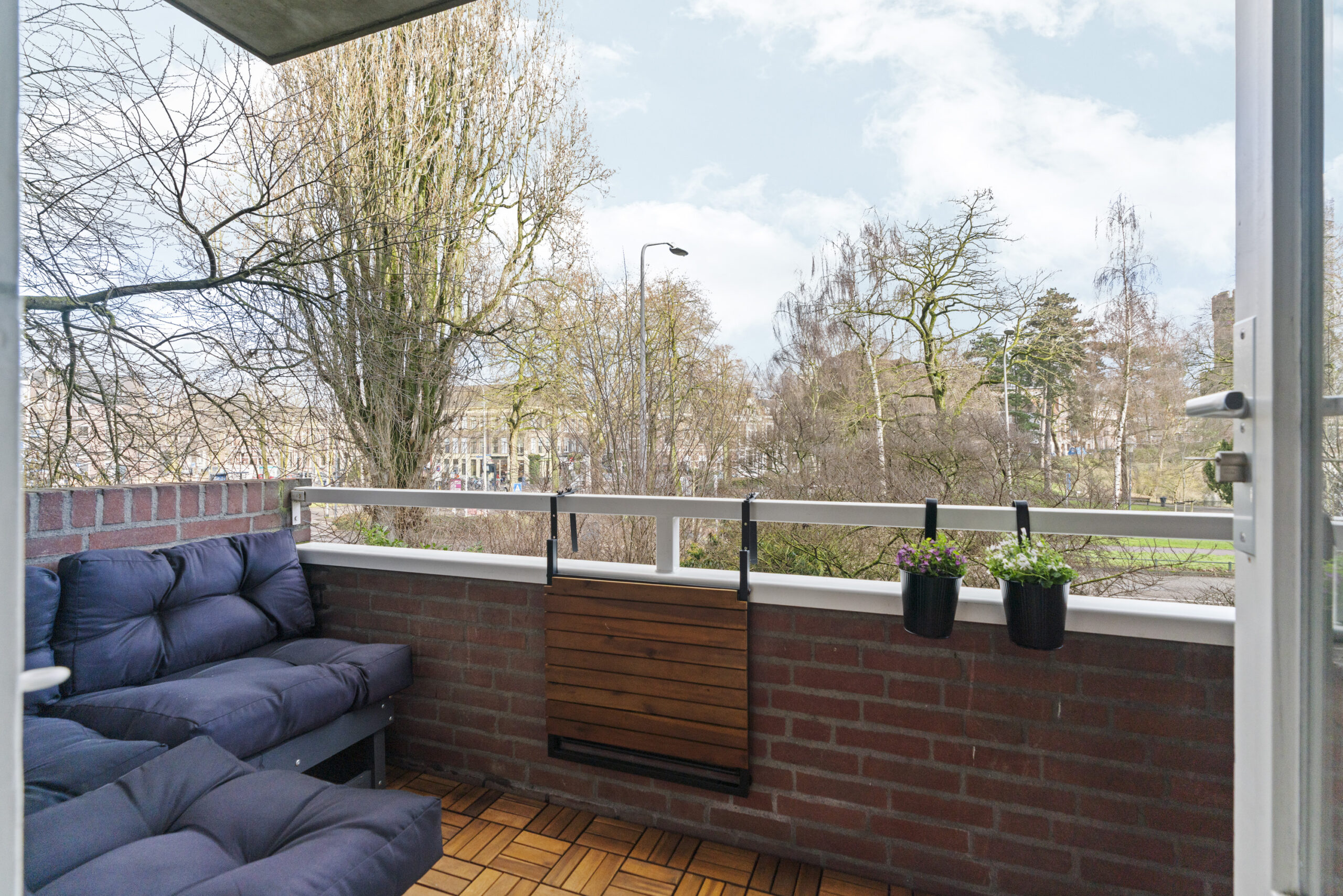 Je beschikt over een balkon aan de voorzijde, afgewerkt met vlonders en gesitueerd op het oosten. Hier geniet je in de ochtenduren van de zon en heb je vrij uitzicht op het Kronenburgerpark en de karakteristieke St. Stevenstoren. De situering en het uitzicht versterken het gevoel van ruimte en verbinden het wonen met de groene en historische omgeving.
