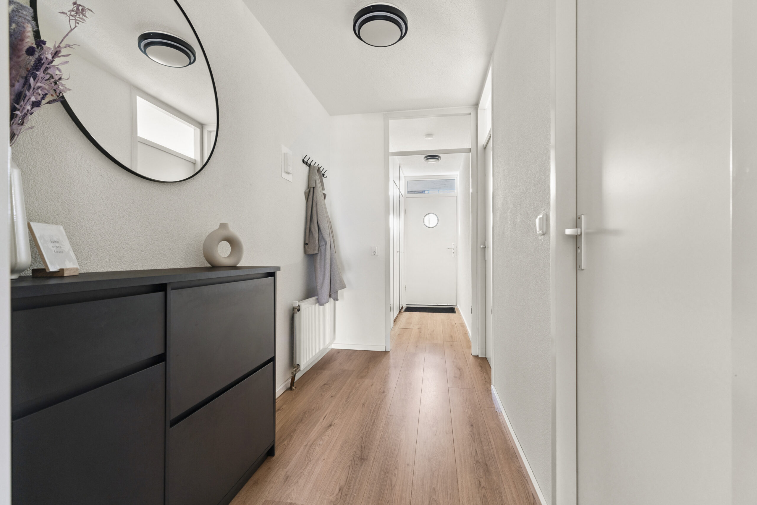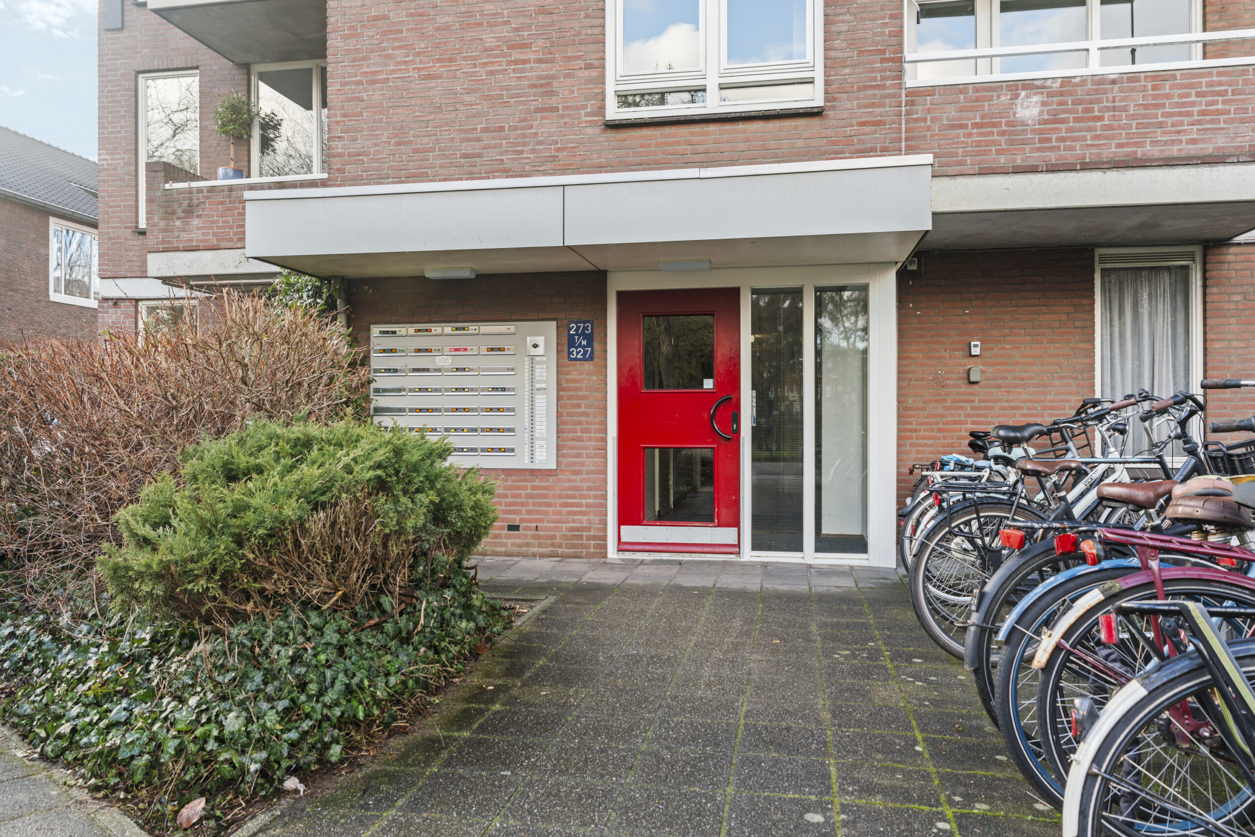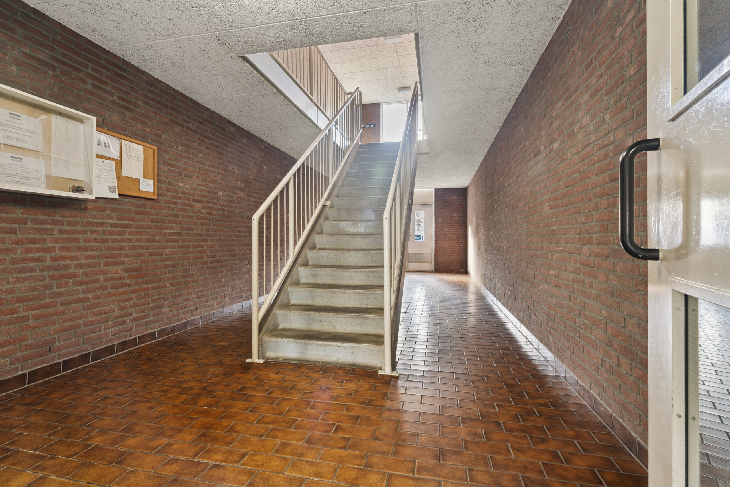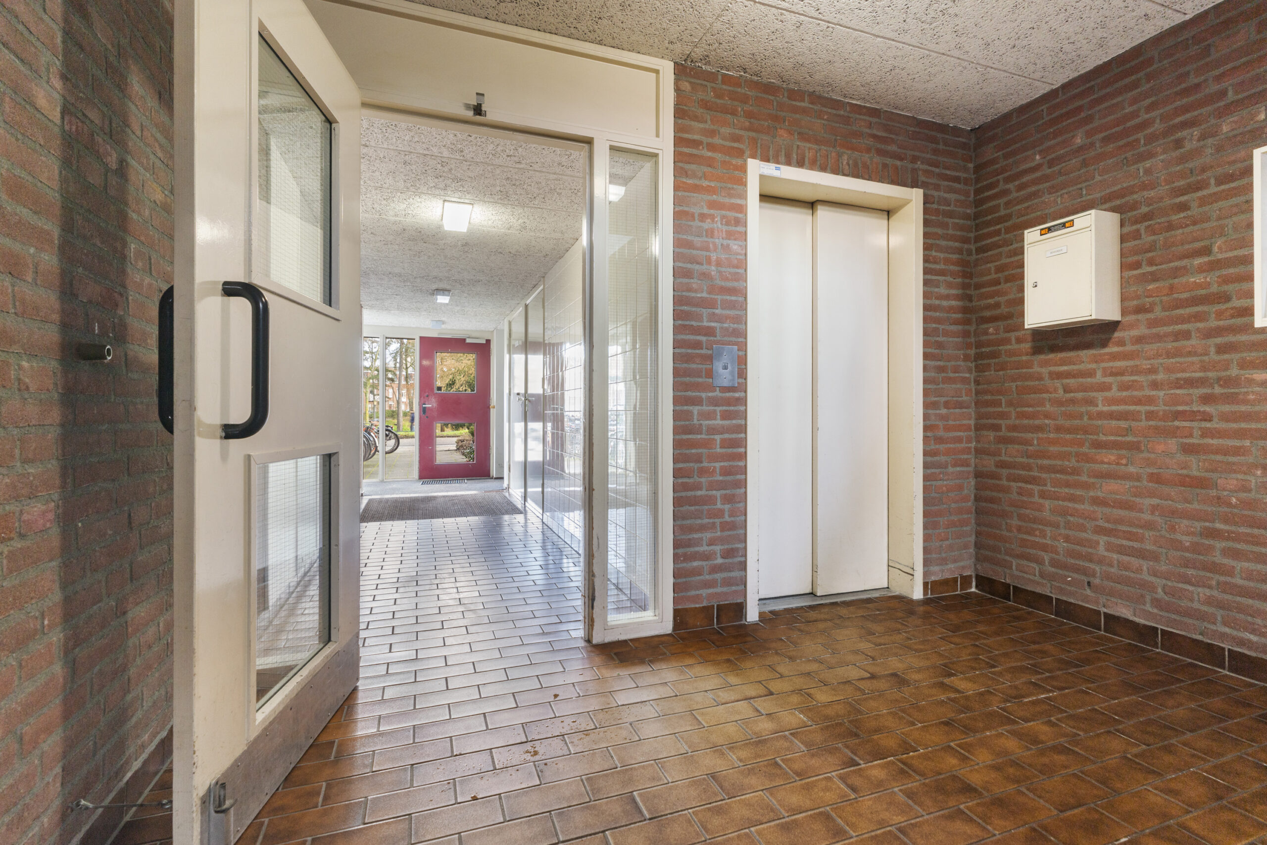 Centrale entree, voorzien van een deurbellentableau met intercominstallatie en brievenbussen. Vanuit hier heb je toegang tot de lift en het trappenhuis, evenals tot het achtergelegen, afgesloten parkeerterrein.