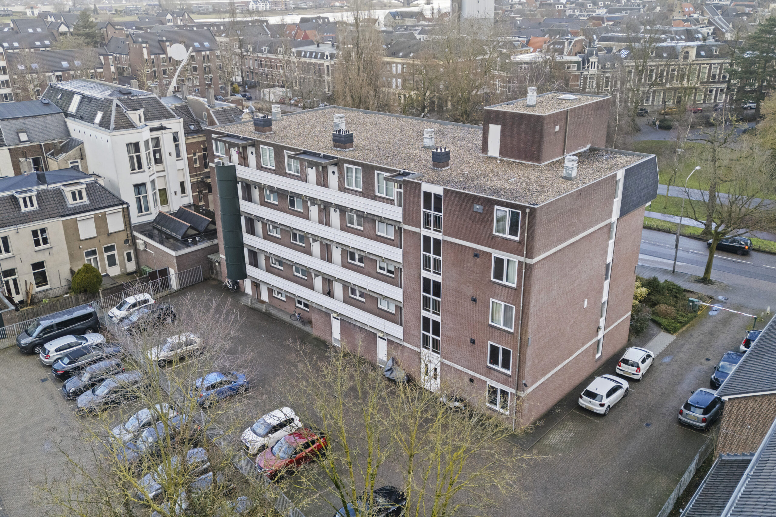 Je beschikt over een vaste parkeerplaats achter het complex. Het terrein is afgesloten middels een slagboom, waardoor de toegang is beperkt tot bevoegden en je verzekerd bent van een veilige en vaste parkeergelegenheid op eigen terrein.