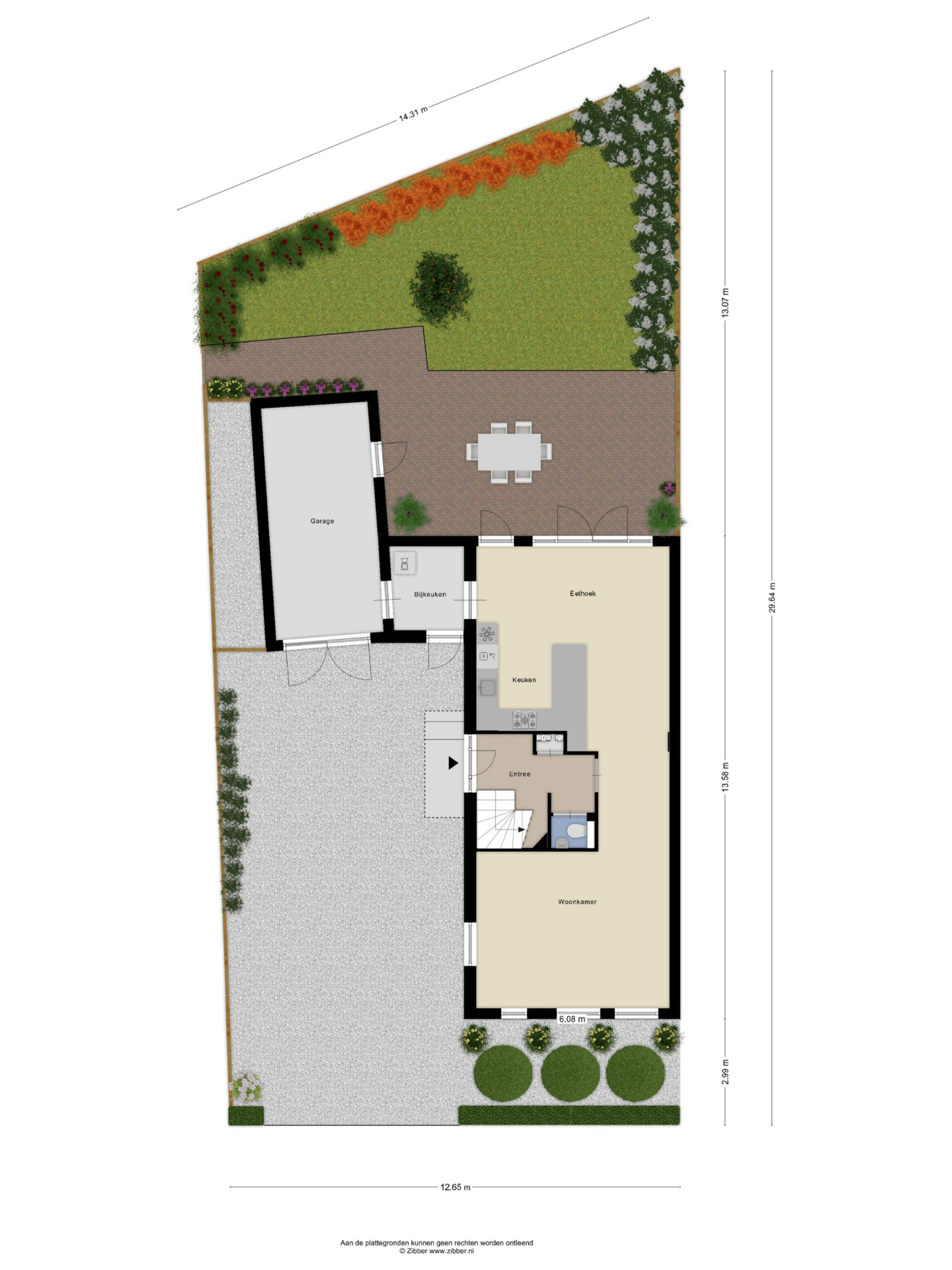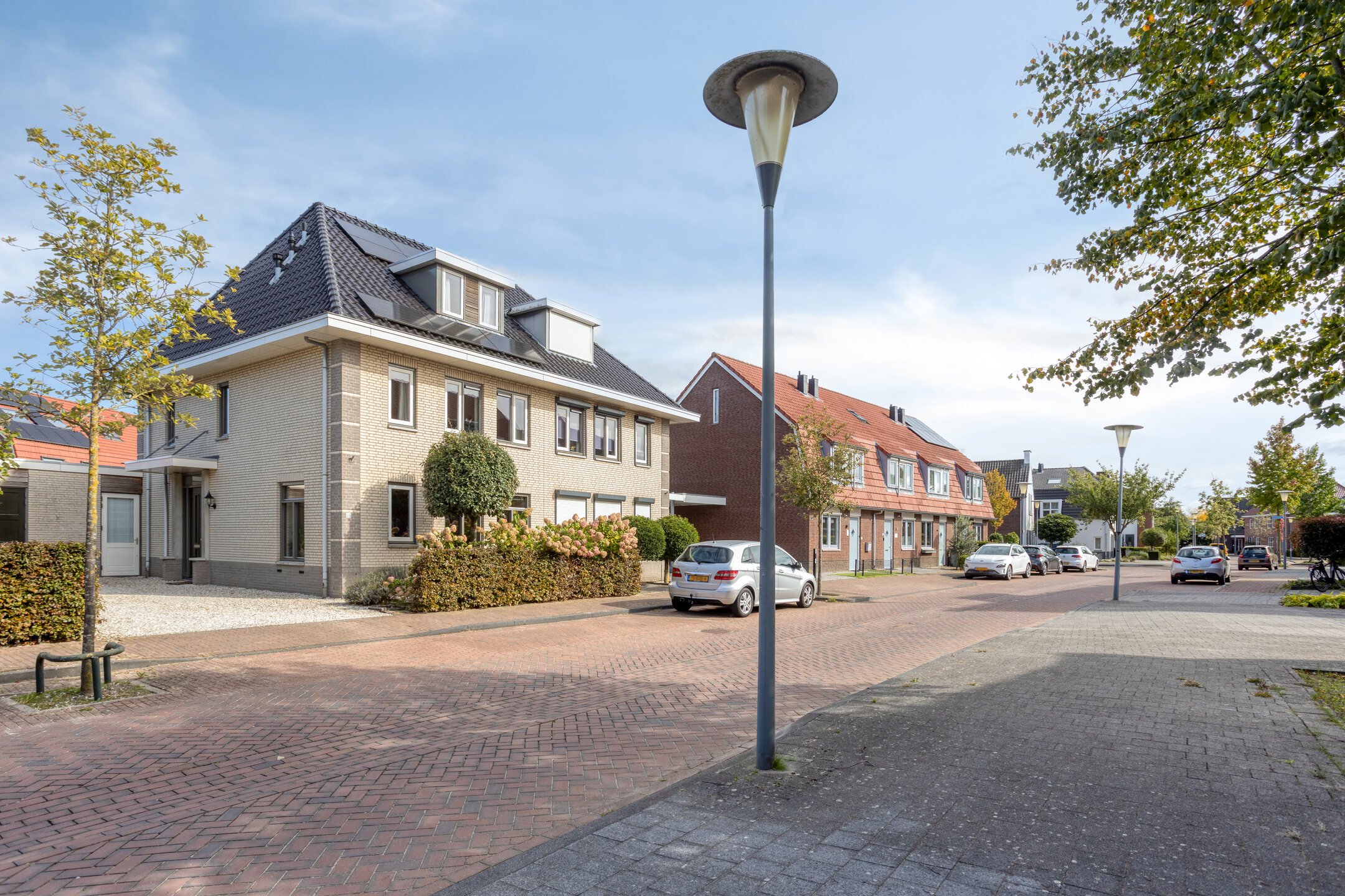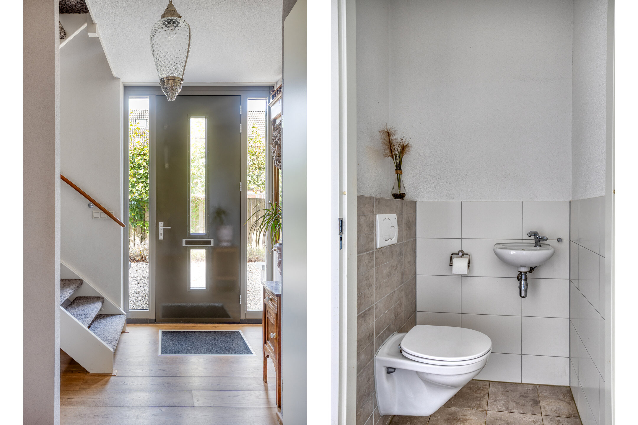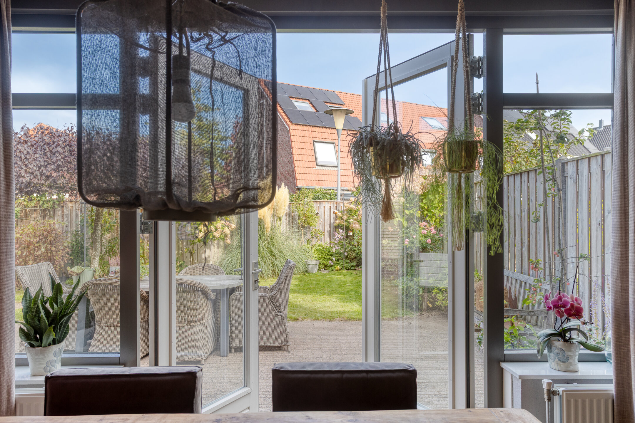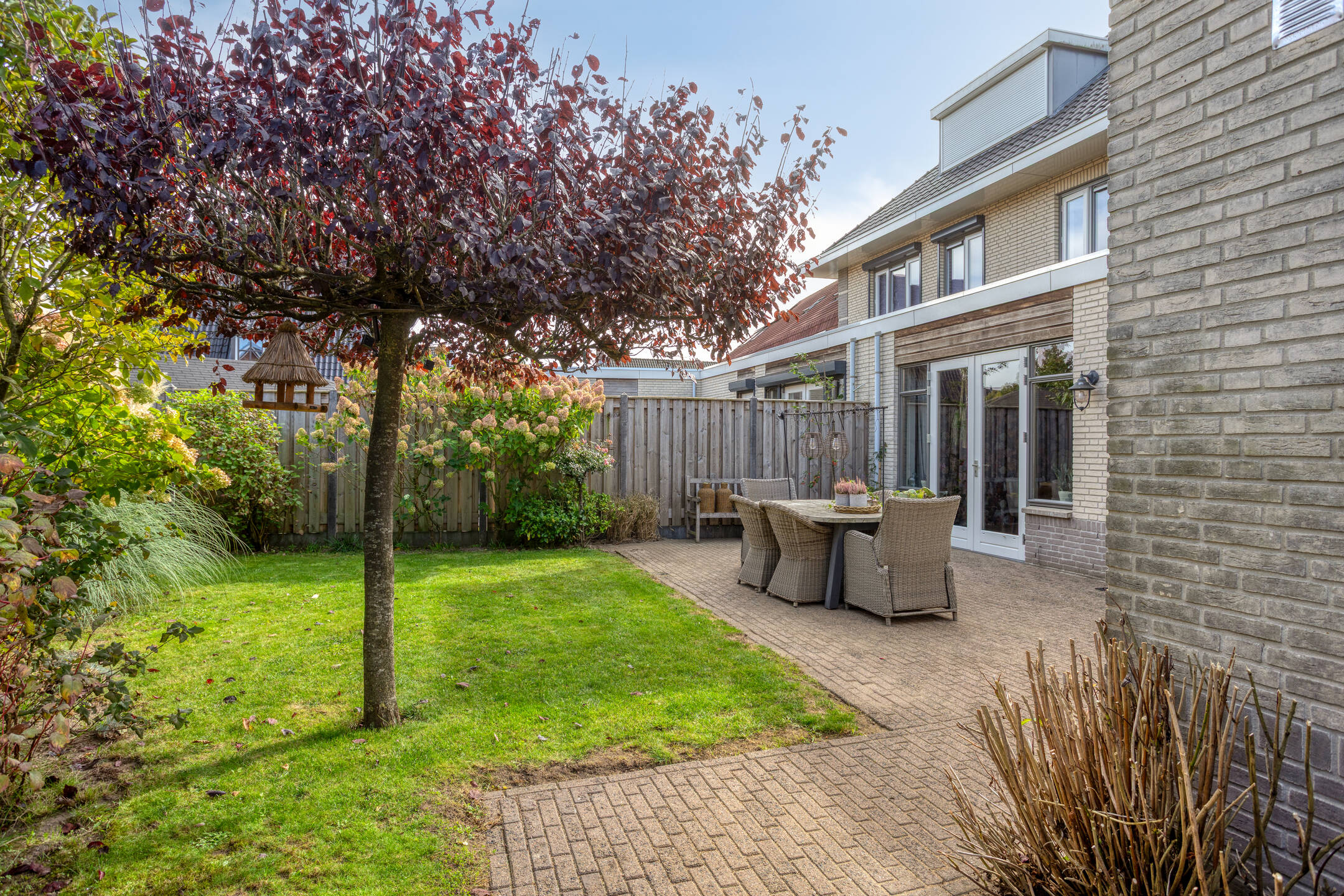 De achtertuin ligt op het noordoosten, is keurig onderhouden en voorzien van een royaal terras, een strak gazon, diverse beplanting en een praktische achterom. Hier geniet je van volop privacy en alle ruimte om heerlijk buiten te leven. Dankzij de ligging is er altijd een plek in de zon te vinden. Aan de voorzijde vind je een oprit met plek voor minimaal twee auto’s – ideaal!
