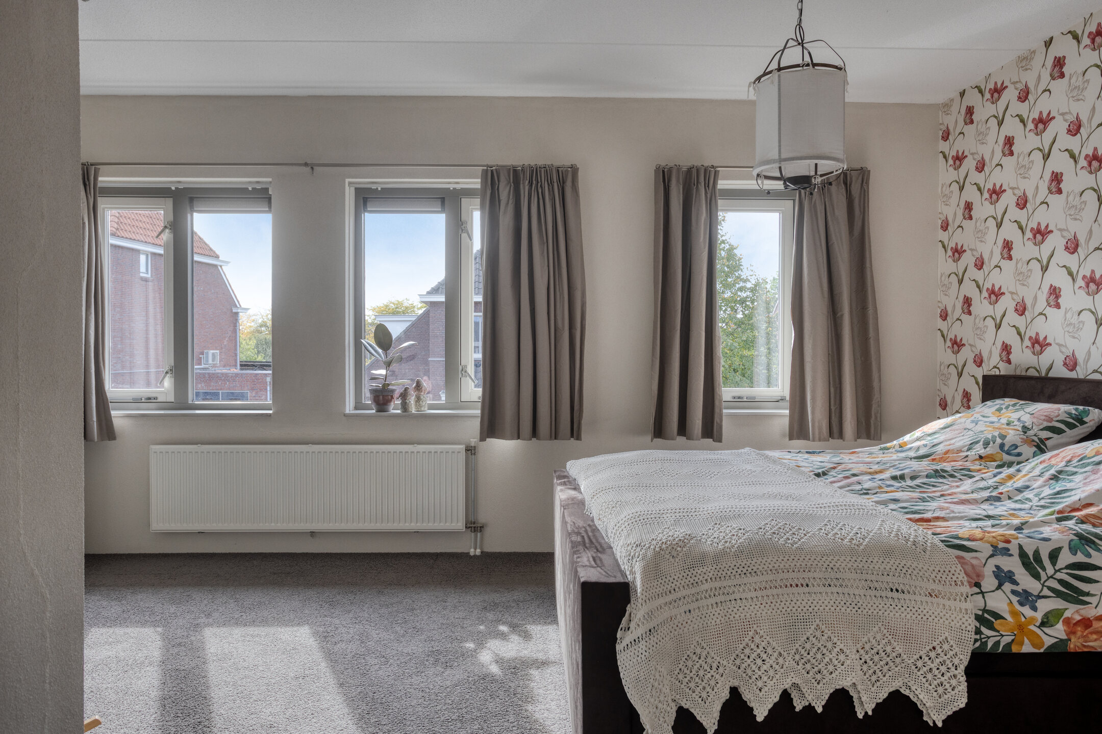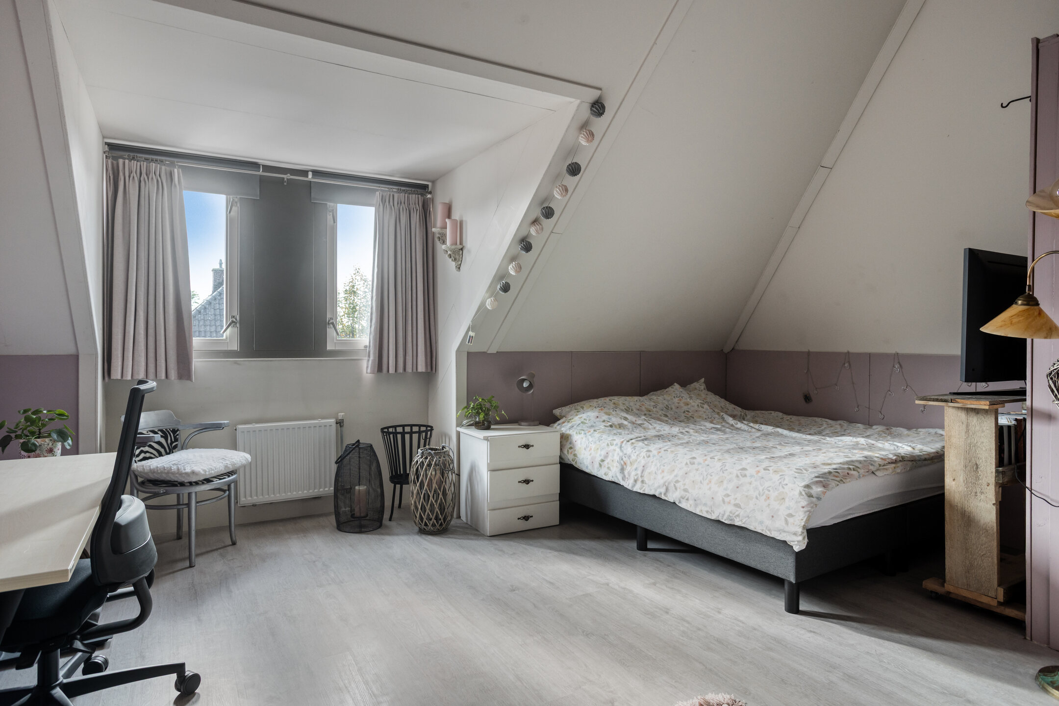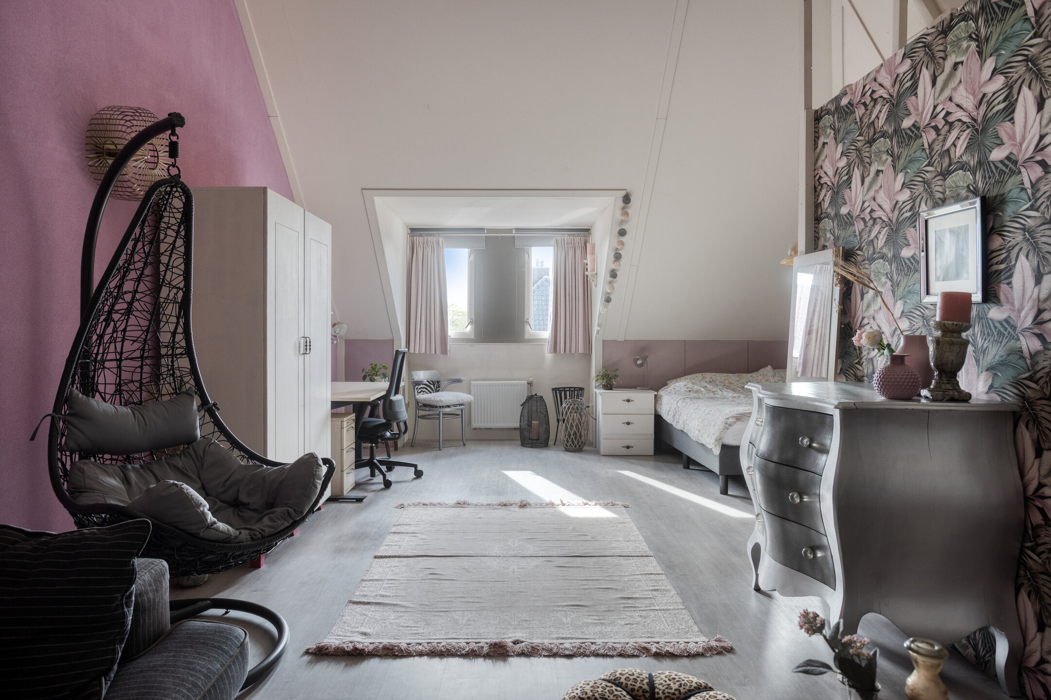 De overloop geeft toegang tot een royale slaapkamer van ca. 32 m². Deze kamer is voorzien van een laminaatvloer en een dakkapel aan de voorzijde, waardoor er veel extra licht en ruimte is gecreëerd.