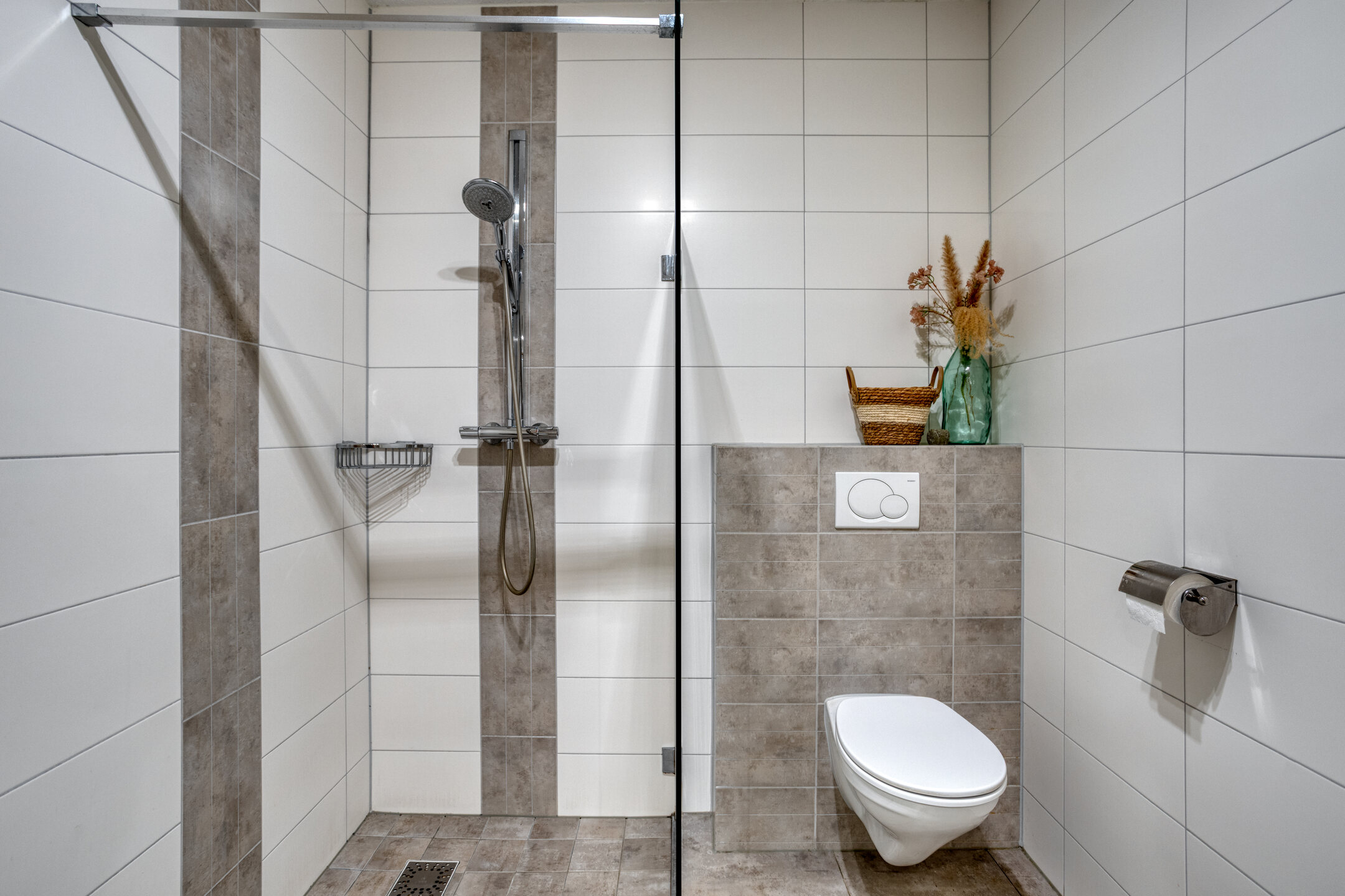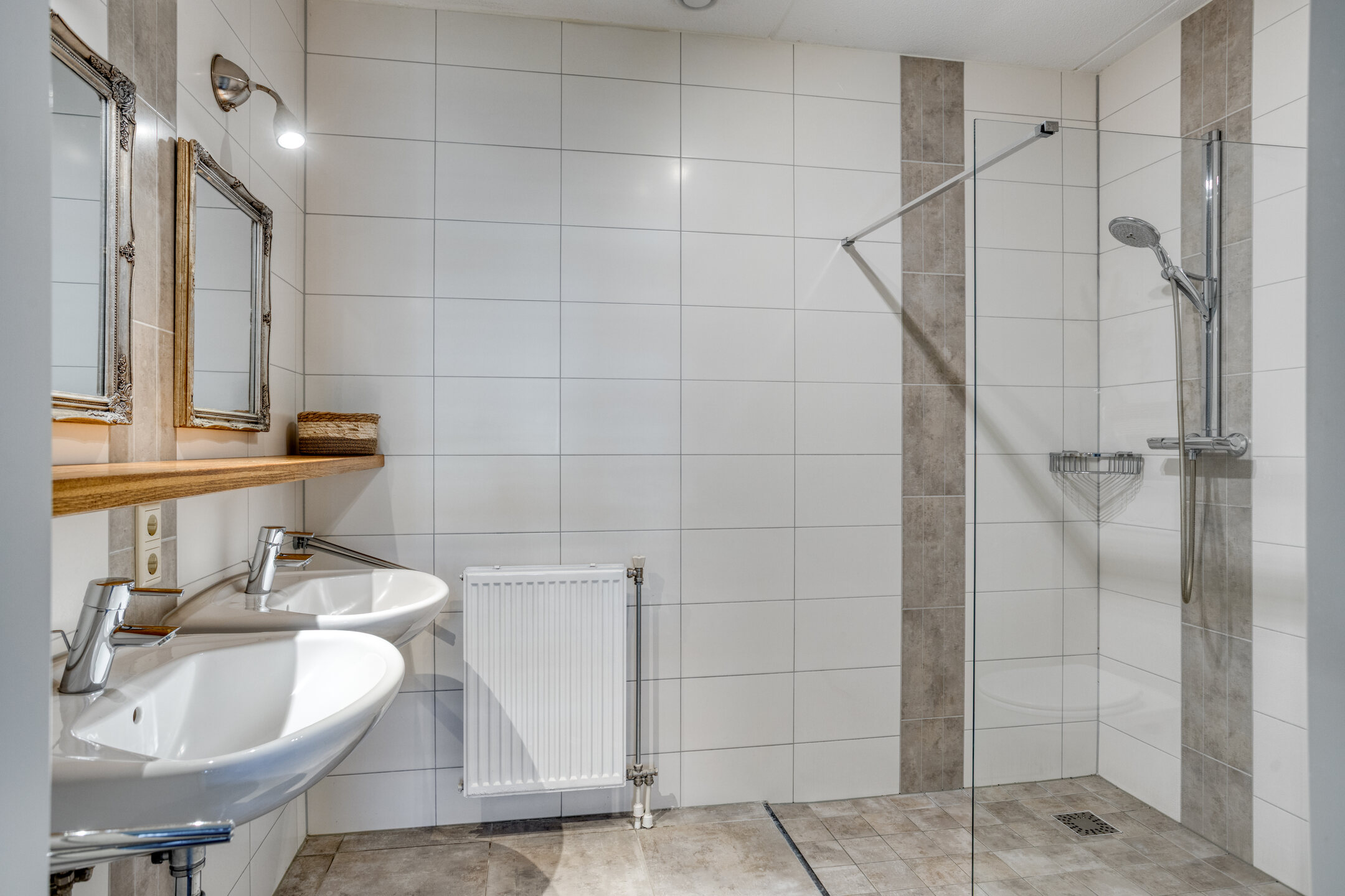 - Toilet, dubbele wastafel, wastafelmeubel, inloopdouche