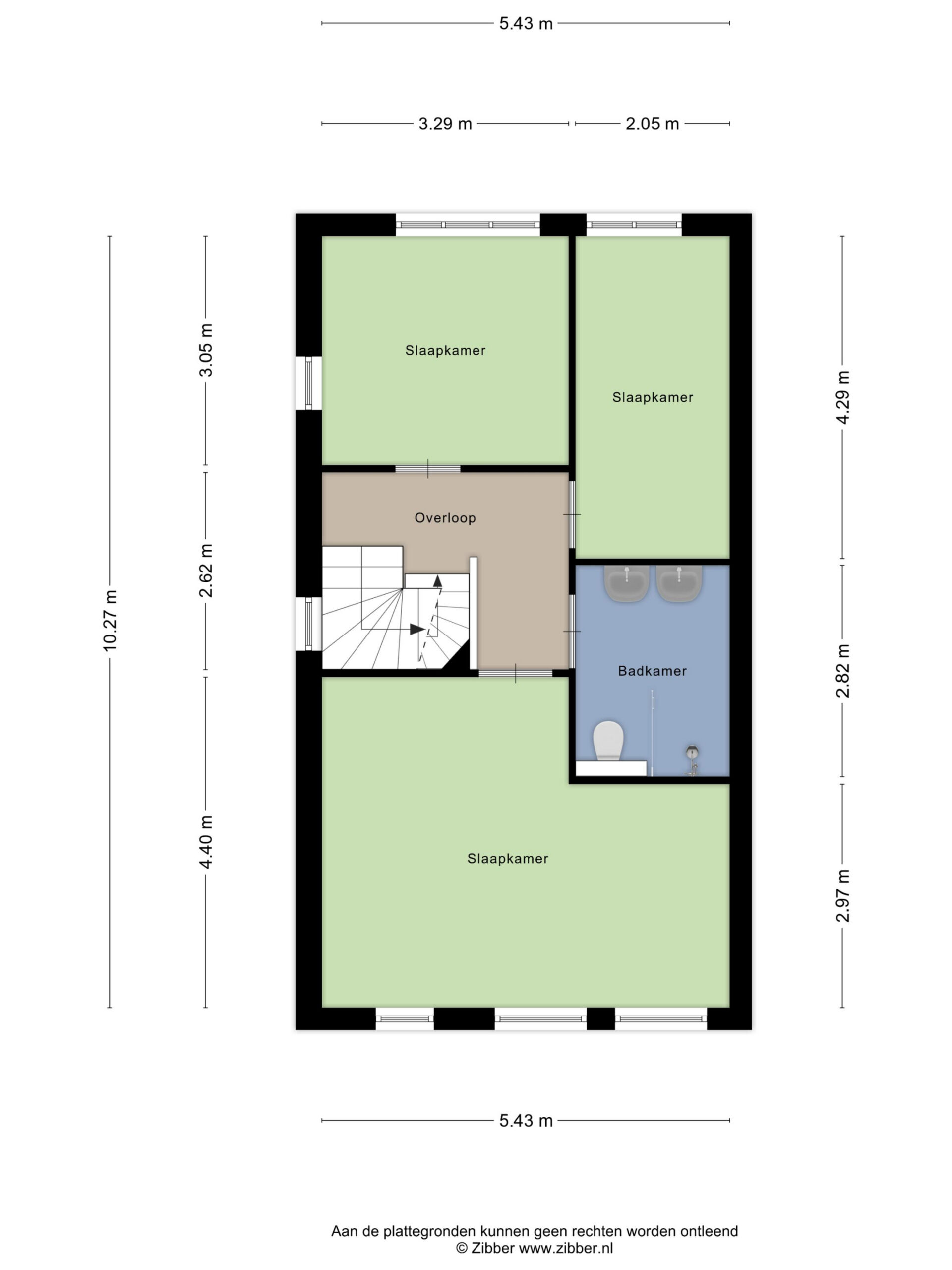 De overloop biedt toegang tot drie slaapkamers, de badkamer en de trapopgang naar de zolderverdieping. Slaapkamer I (ca. 21 m²) bevindt zich aan de voorzijde en is voorzien van tapijt. Slaapkamer II (ca. 10 m²) en Slaapkamer III (ca. 9 m²) liggen aan de achterzijde van de woning en beschikken over een laminaatvloer. De badkamer is modern ingericht en voorzien van twee wastafels, een inloopdouche en een hangcloset.