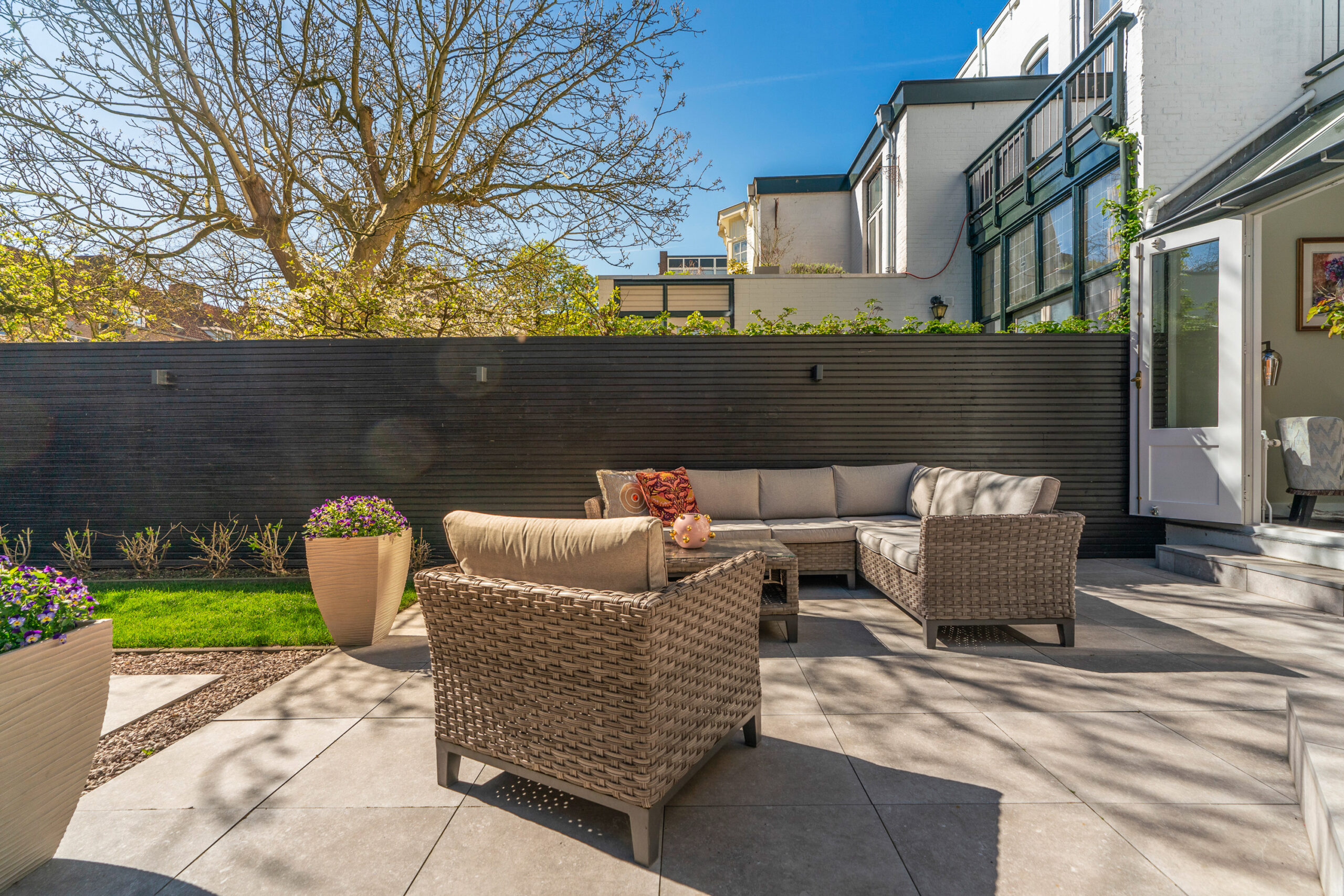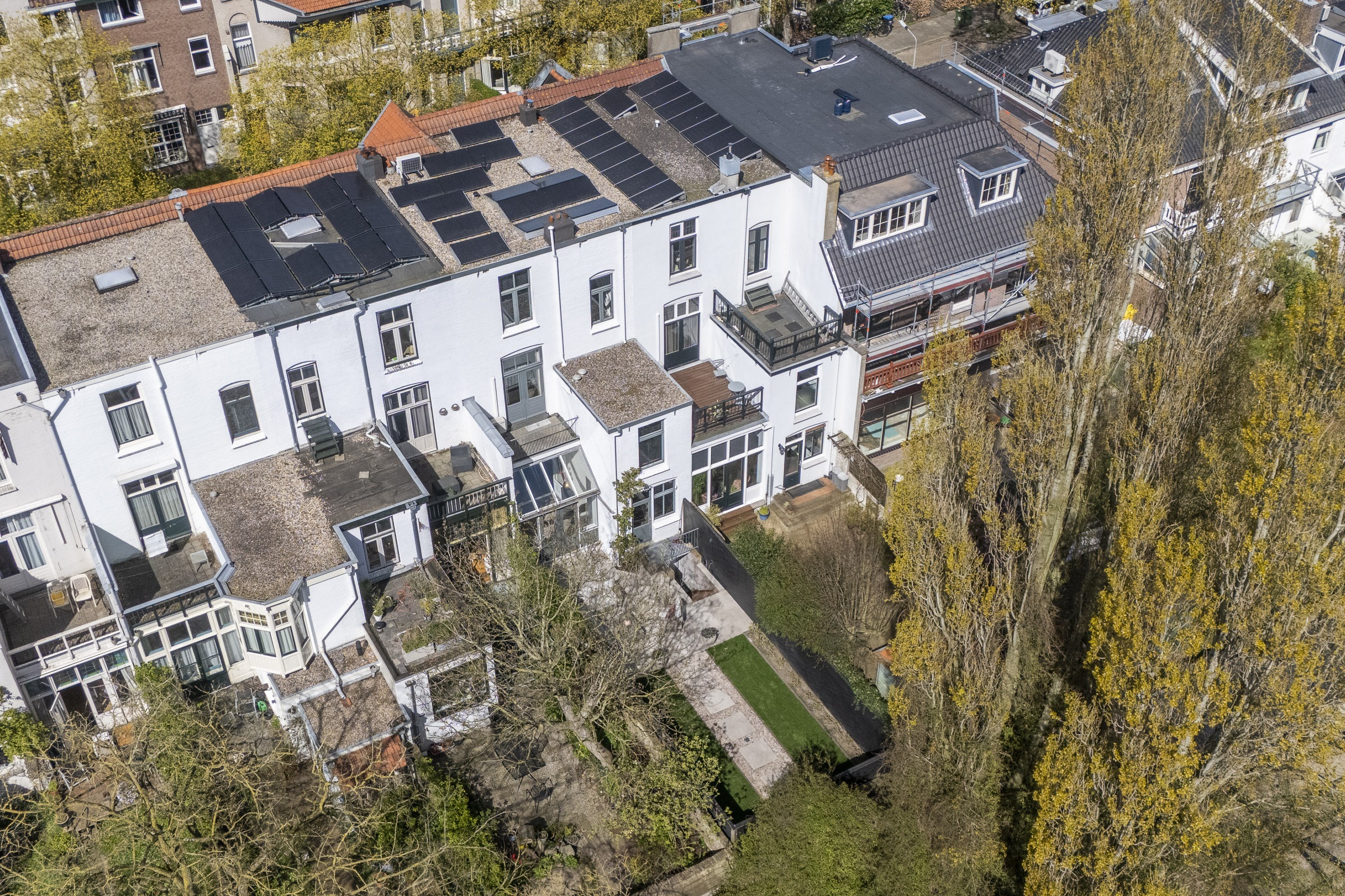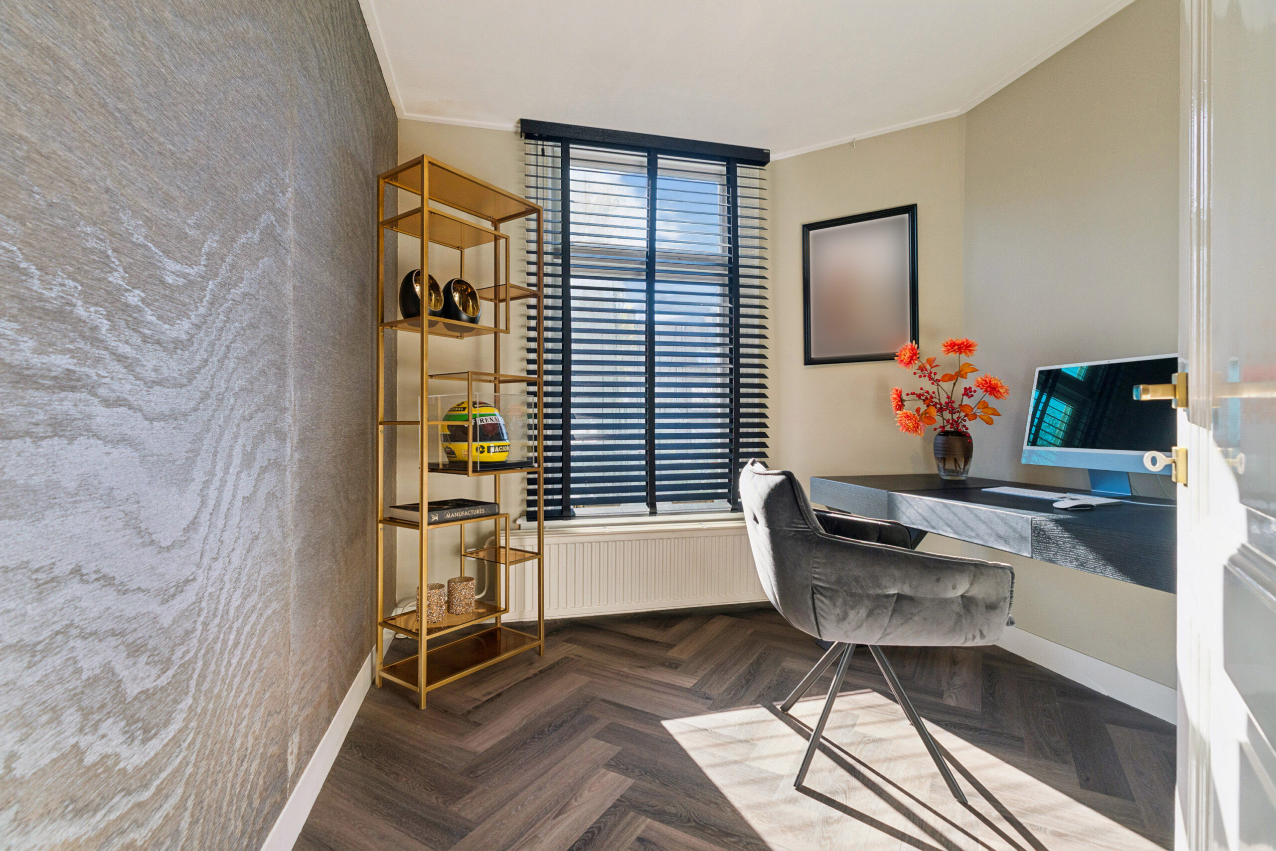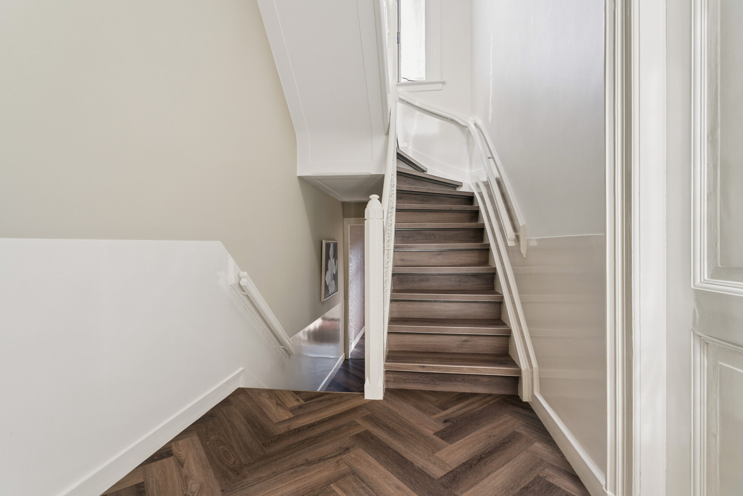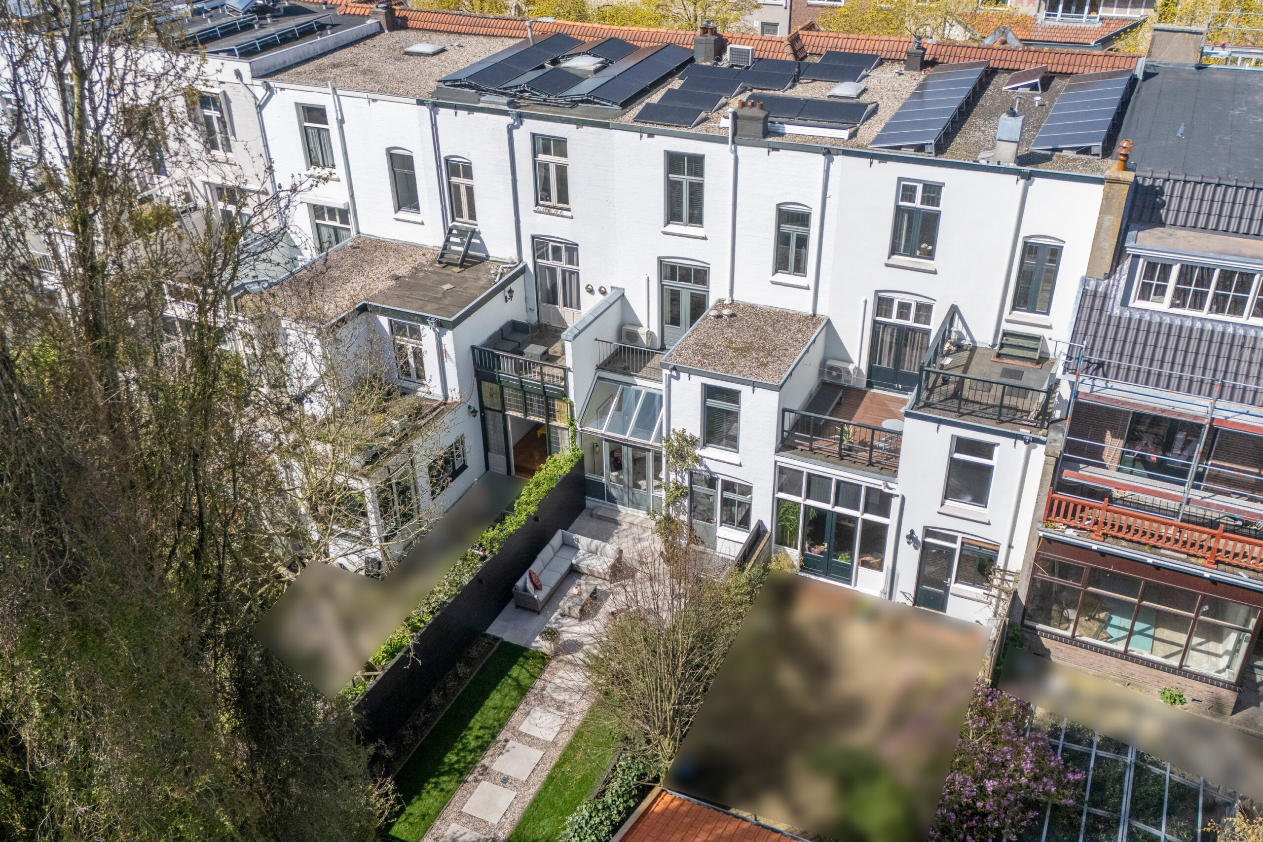 De royale woonkamer en suite beschikt over originele schuifdeuren en openslaande deuren naar de voortuin, hetgeen zorgt voor een aangename lichtinval en een optimale verbinding met buiten. Aan de achterzijde bevindt zich de serre, rijk aan daglicht en voorzien van openslaande deuren naar de diepe en fraai aangelegde stadstuin. De dichte keuken biedt eveneens toegang tot de tuin en is uitgerust met diverse hoogwaardige inbouwapparatuur, te weten een combioven, combistoomoven, extra grote inductiekookplaat (4-pits) met geïntegreerde afzuiging, wijnkoelkast, vaatwasser, vriezer XL, koelkast XL en een Quooker voor direct kokend water. De vloeren in de woonkamer en keuken zijn afgewerkt met PVC.