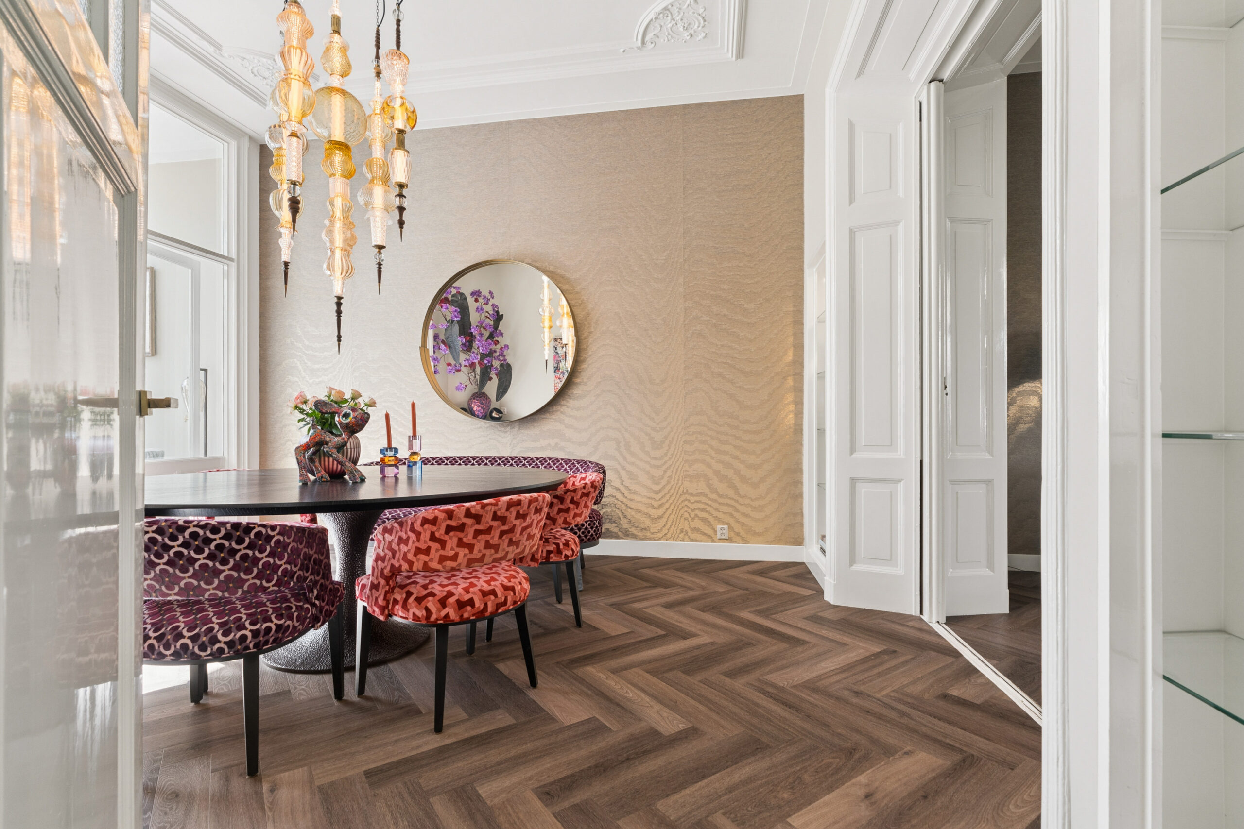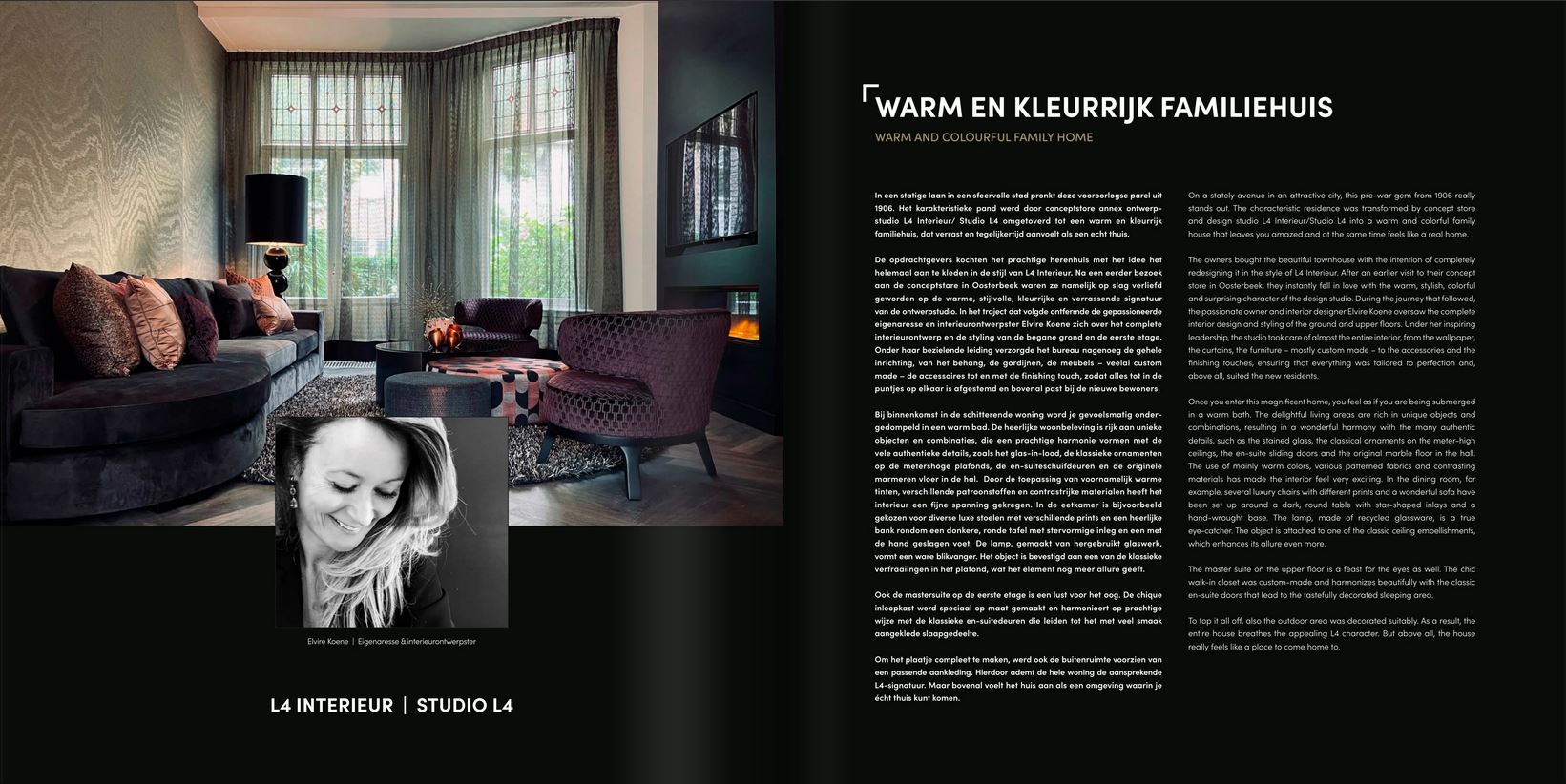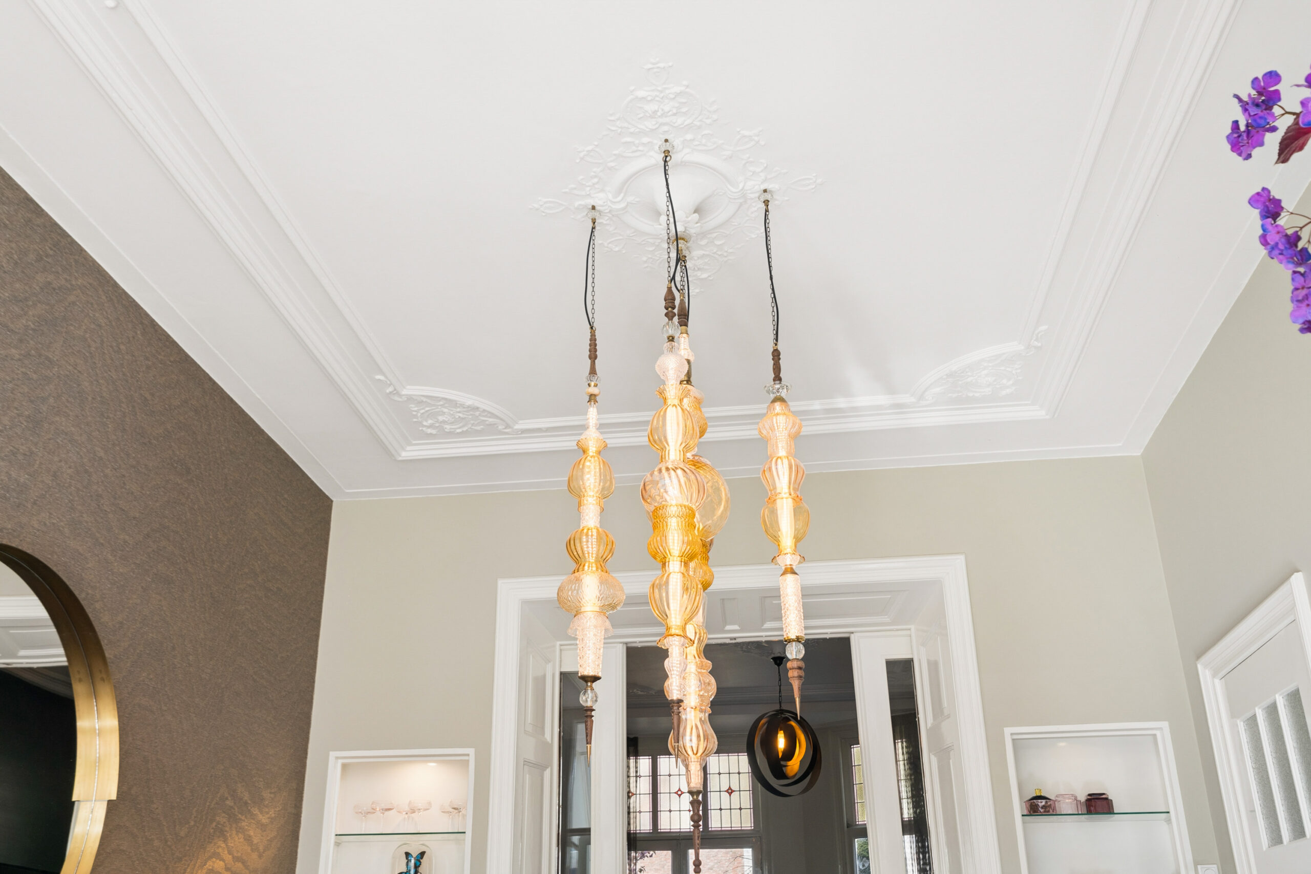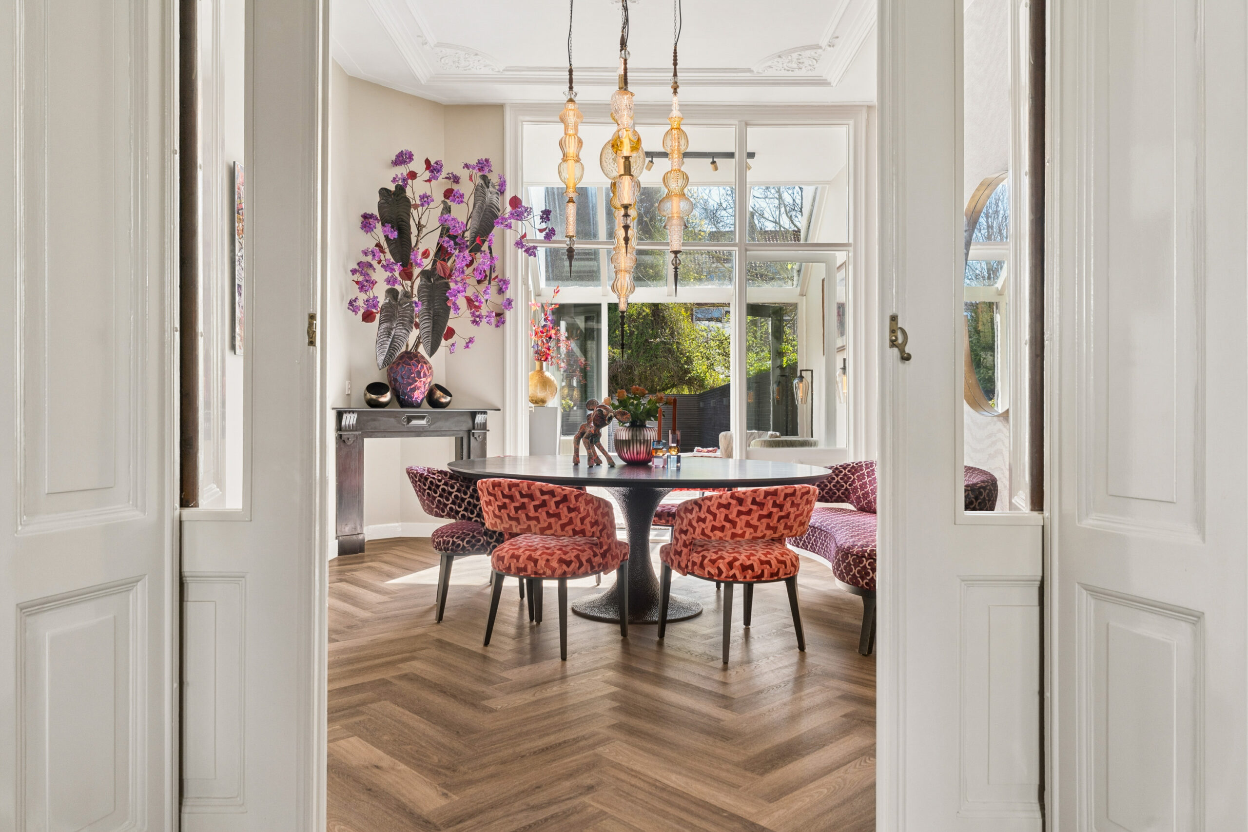 Bij binnenkomst in deze schitterende woning word je direct ondergedompeld in een warm bad. De woonbeleving is rijk aan unieke objecten en combinaties, die een prachtige harmonie vormen met de vele authentieke details, zoals glas-in-lood ramen, klassieke ornamenten op de metershoge plafonds, de en-suite schuifdeuren en de originele marmeren vloer in de hal. Het is dan ook niet verwonderlijk dat deze uitzonderlijke woning is opgenomen in het vijfde hardcoverboek van The Art of Living.