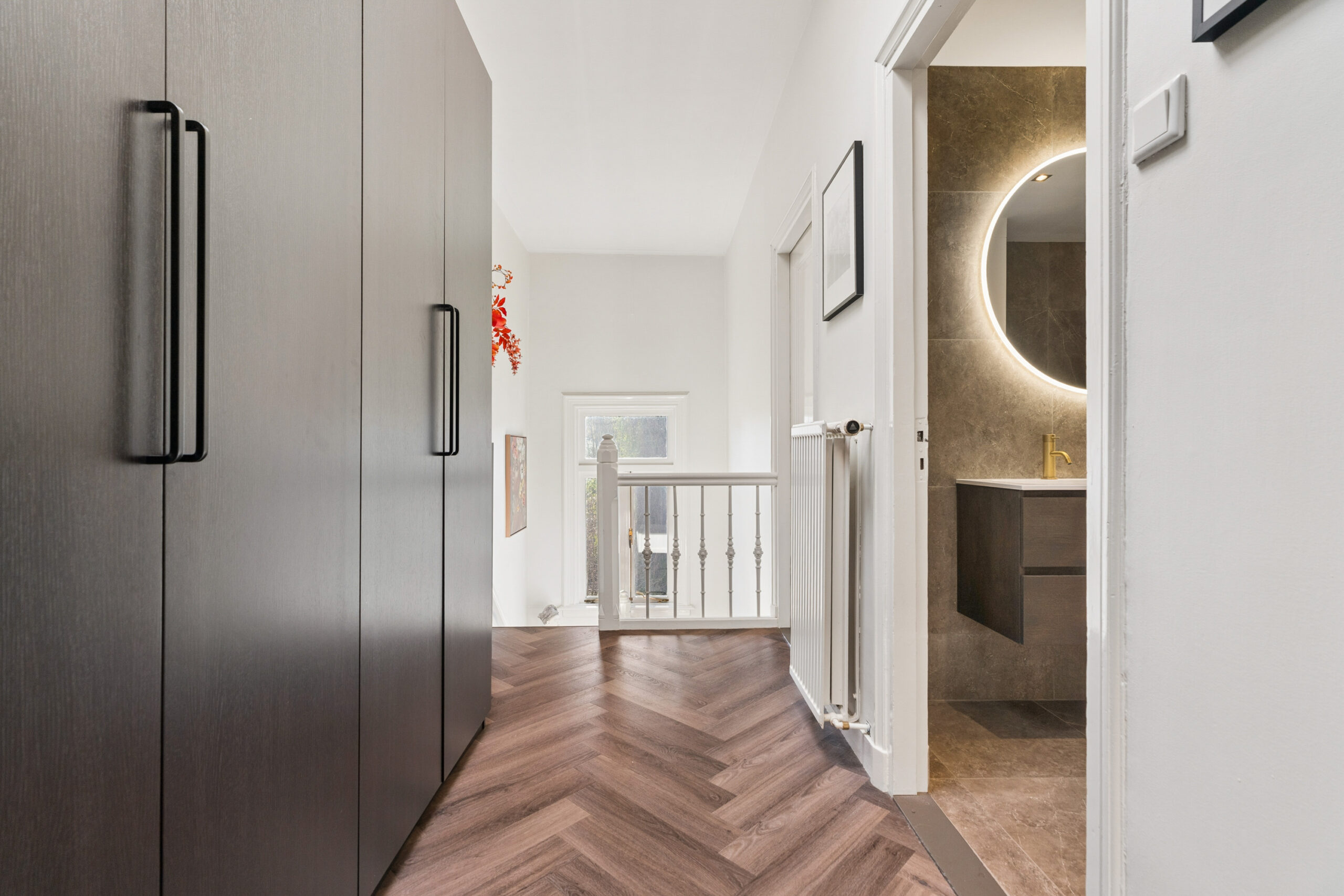 Overloop met lichtkoepel, welke zorgt voor een aangename en natuurlijke lichtinval. Deze verdieping beschikt over twee slaapkamers (voorheen drie), beide voorzien van een inbouwkast, waarvan één kamer is ingedeeld met een separaat slaapgedeelte. Beide slaapkamers zijn uitgerust met airconditioning. De badkamer is verzorgd en compleet uitgevoerd, met een inloopdouche voorzien van zowel hand- als regendouche, een wastafelmeubel en een verlichte condensspiegel. De vloeren op deze verdieping zijn, met uitzondering van de badkamer, afgewerkt met PVC.
