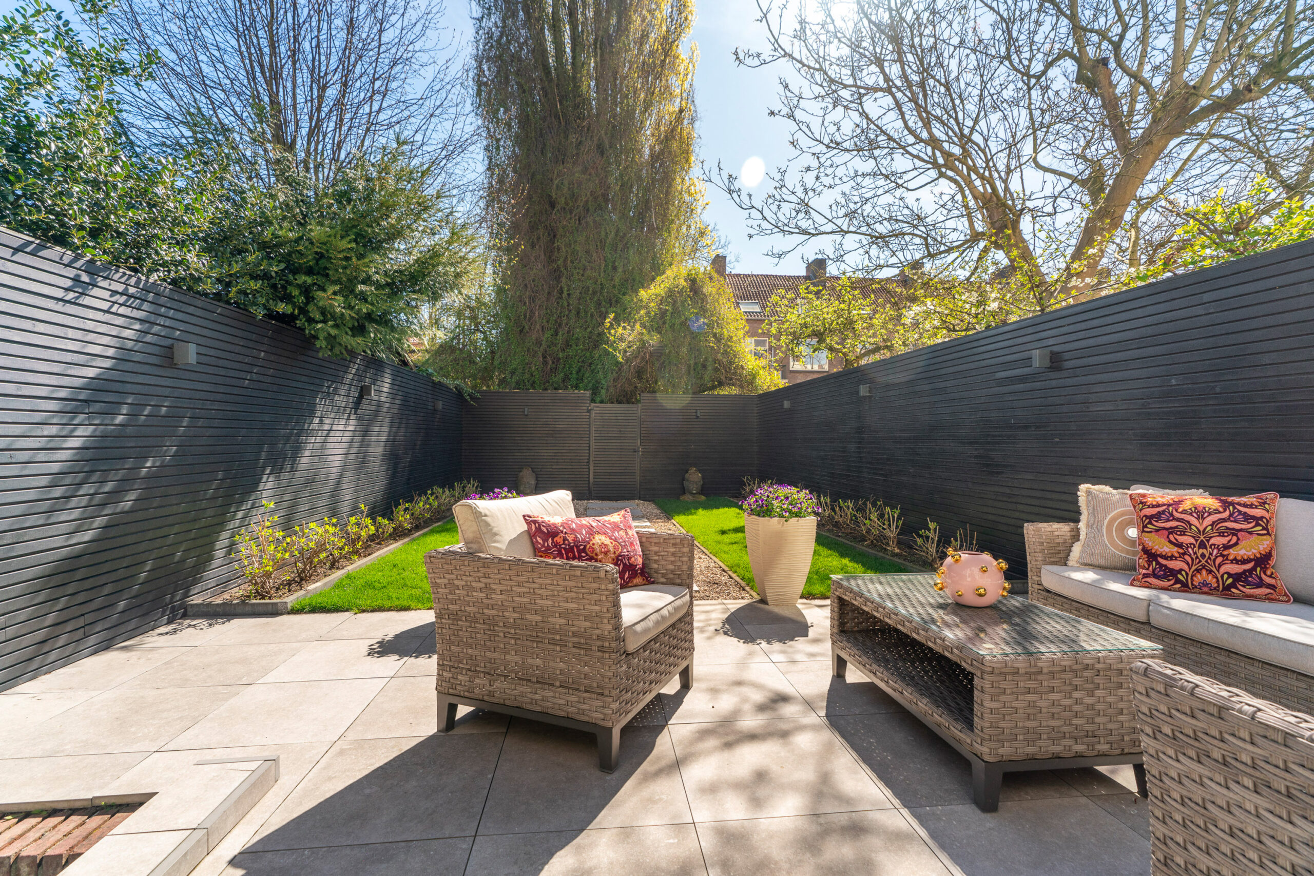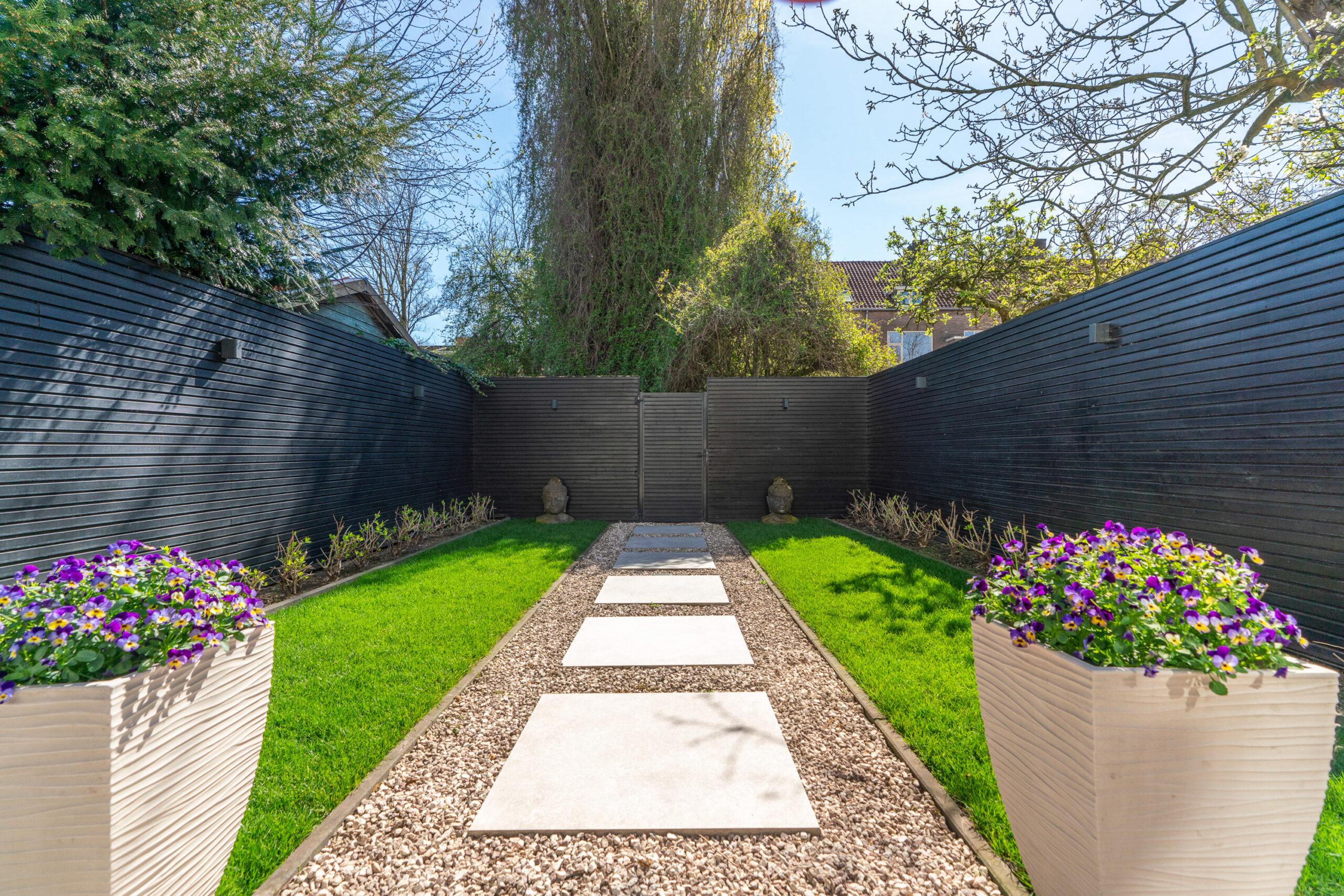 Royale, op het zuidoosten gelegen stadstuin met achterom en sproei-installatie. Een achtertuin van dit formaat is in Nijmegen-Oost werkelijk uitzonderlijk te noemen. De tuin kenmerkt zich door een doordachte indeling en hoogwaardige afwerking, hetgeen bijdraagt aan een stijlvolle en comfortabele buitenbeleving.
