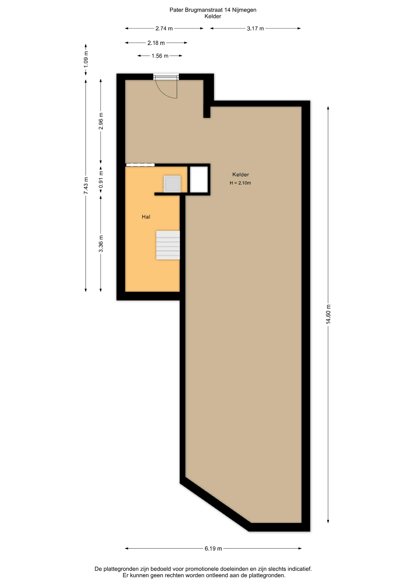 Het souterrain bestaat uit twee compartimenten, biedt toegang tot de achtertuin en is voorzien van aansluitingen voor witgoed. Het souterrain is zowel binnendoor bereikbaar als via een separate trap vanuit de achtertuin.