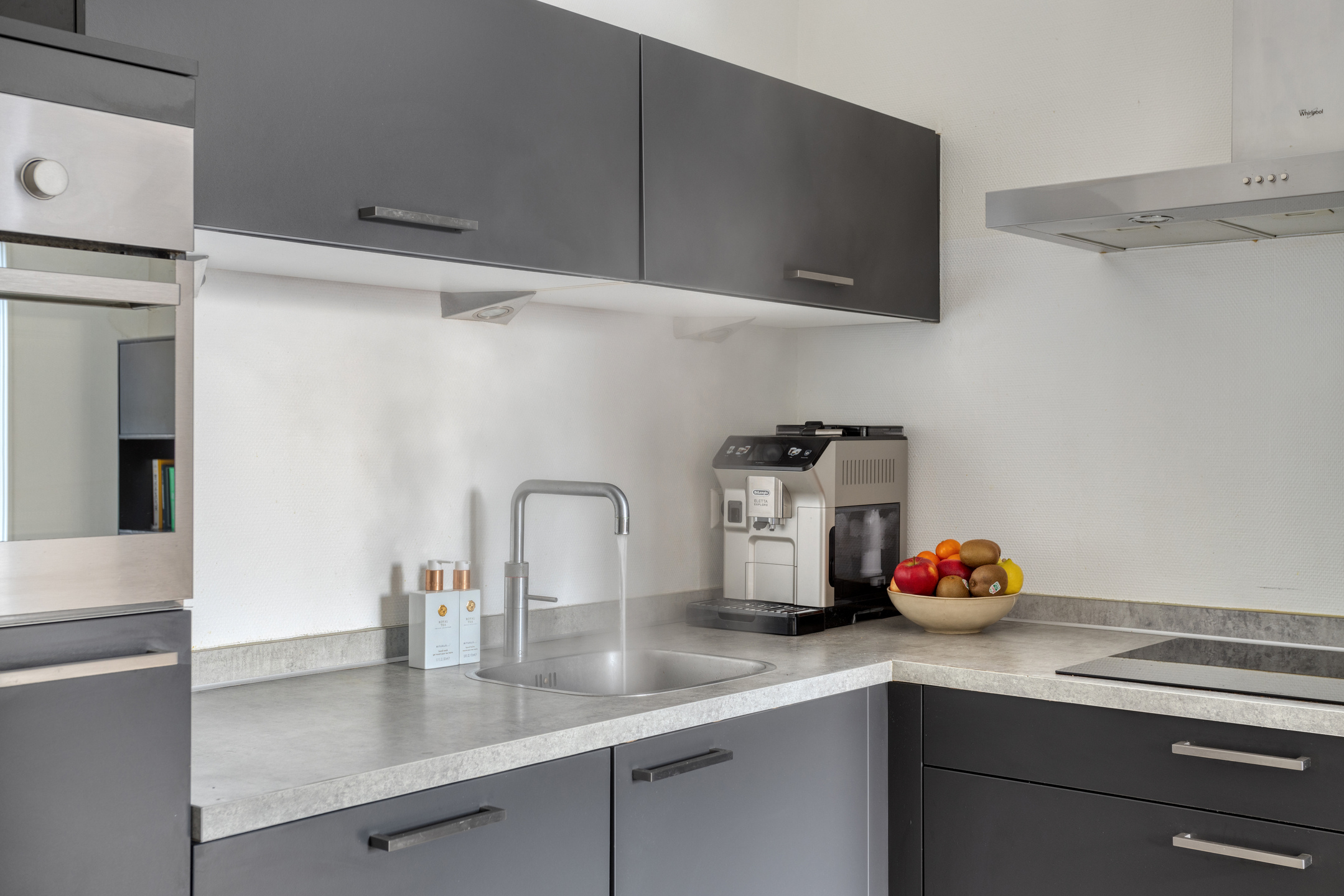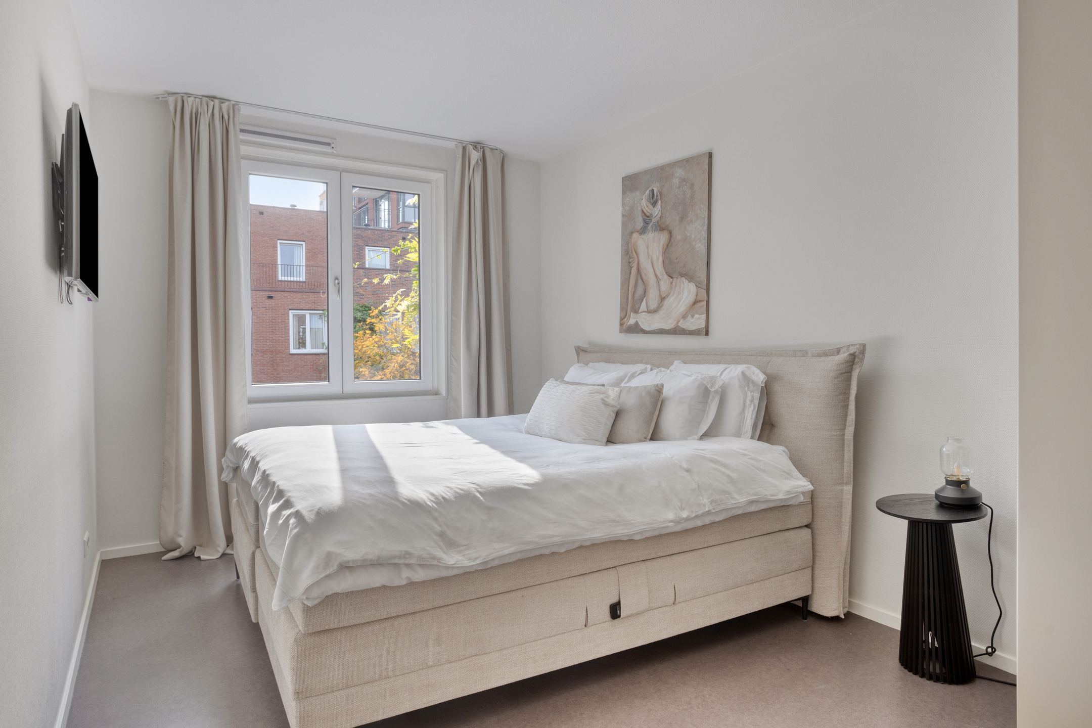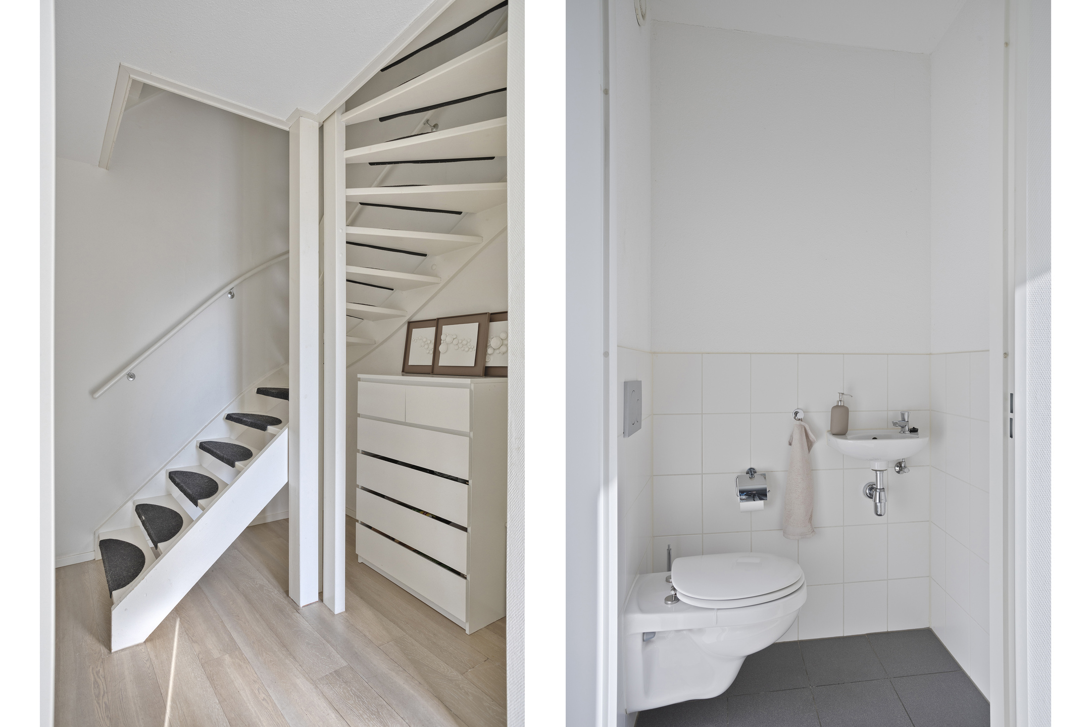 Het appartement beschikt over een zonneterras en een dakterras, beide gunstig gelegen op het zuiden. Het zonneterras, direct naast de voordeur, is volledig betegeld en kijkt uit op de groene binnentuin. Dankzij de afscherming met een haag geniet je hier van optimale privacy. Een groot zonnescherm biedt daarnaast prettige schaduw op warme dagen. Het dakterras, bereikbaar vanaf de tweede verdieping, is ruim opgezet en biedt volop plek om te ontspannen, te loungen of te borrelen in de zon – een heerlijke buitenruimte midden in de stad.
