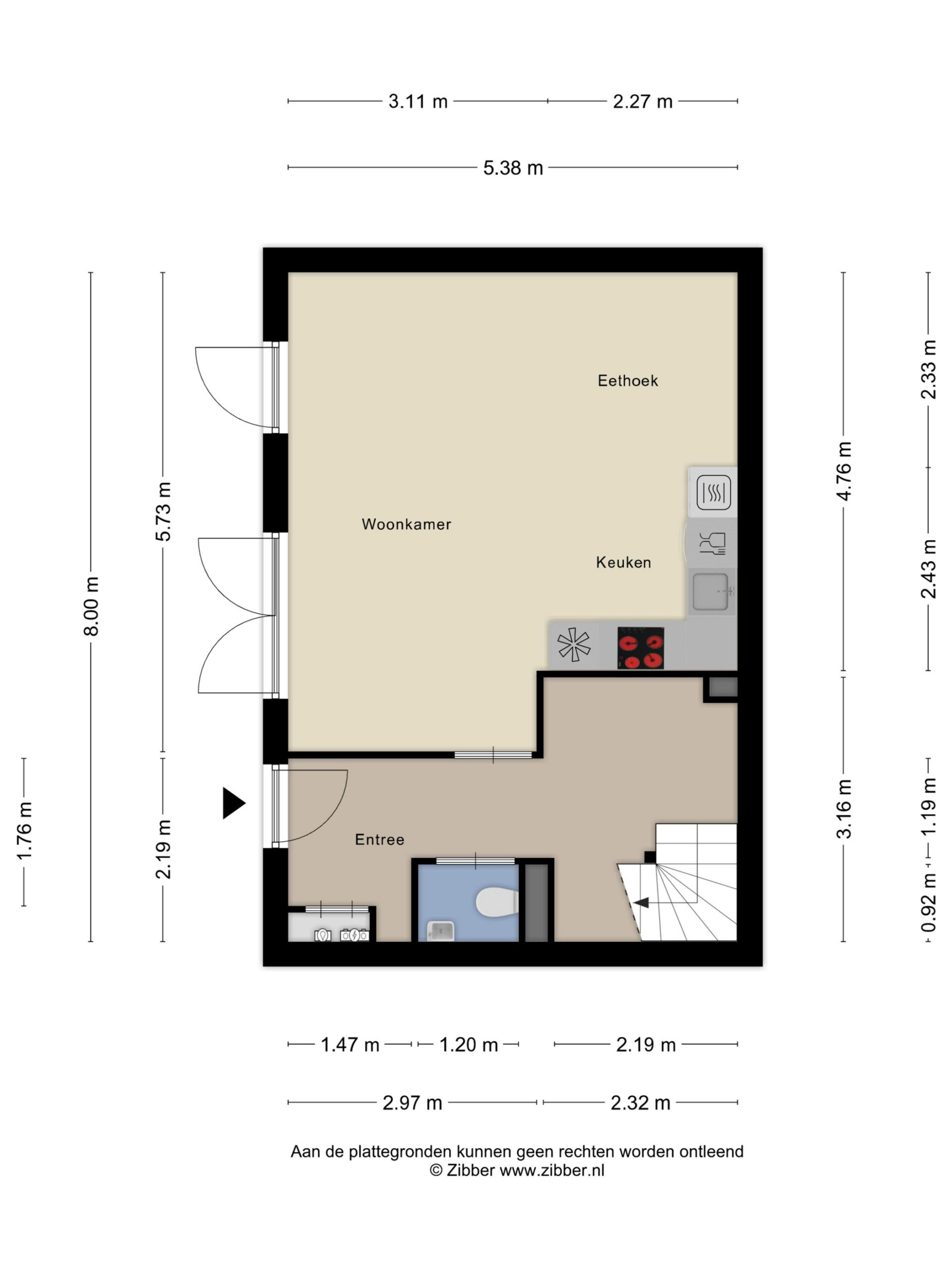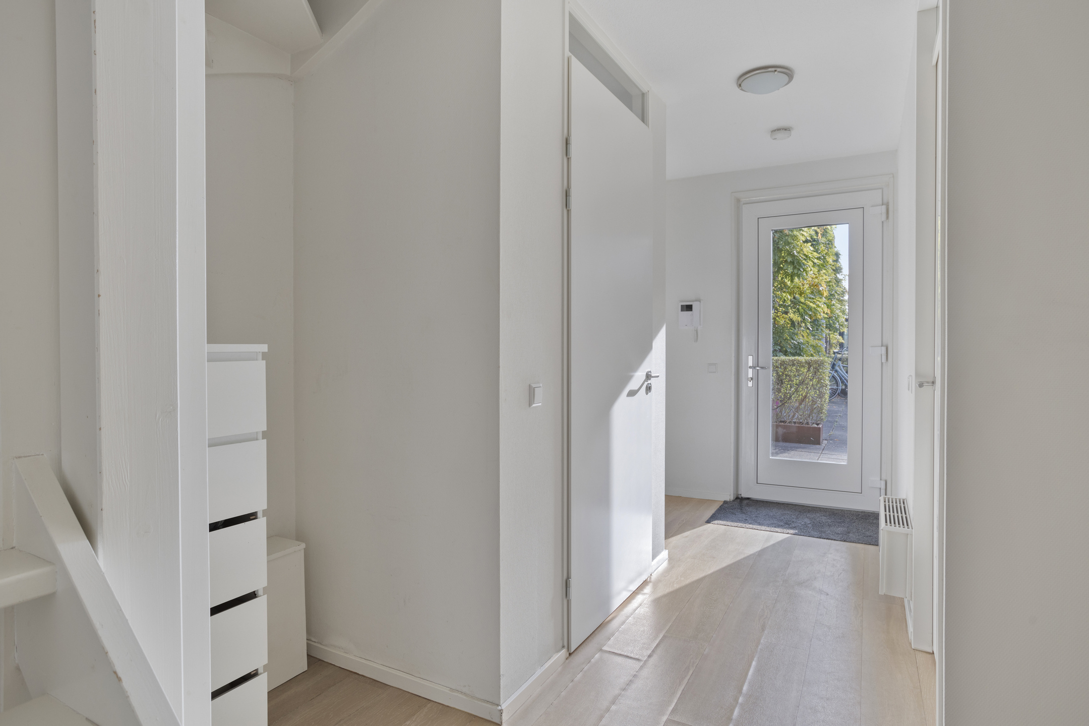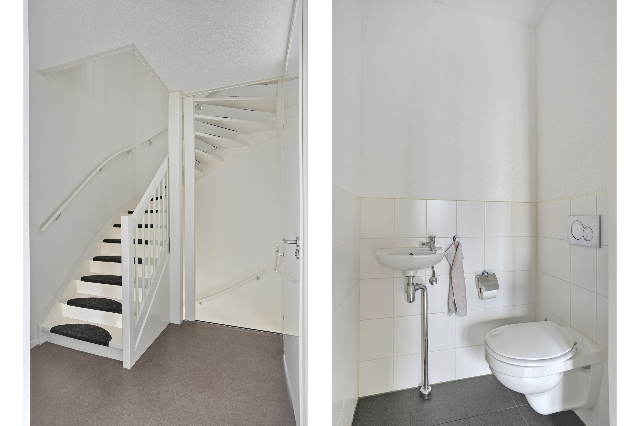 Entree met gang/hal, meterkast, trapkast, video-intercom en een toiletruimte met hangcloset en fonteintje. De lichte woonkamer biedt dankzij de grote raampartijen veel daglicht. Via zowel openslaande deuren als een aparte deur heb je toegang tot het zonnige terras (voortuin). De moderne keuken is uitgerust met diverse inbouwapparatuur: koel-vriescombinatie, Quooker voor direct heet water, vaatwasser, combi-oven en afzuigkap. Op de begane grond ligt een mooie PVC-vloer. (m.u.v. de toiletruimte).