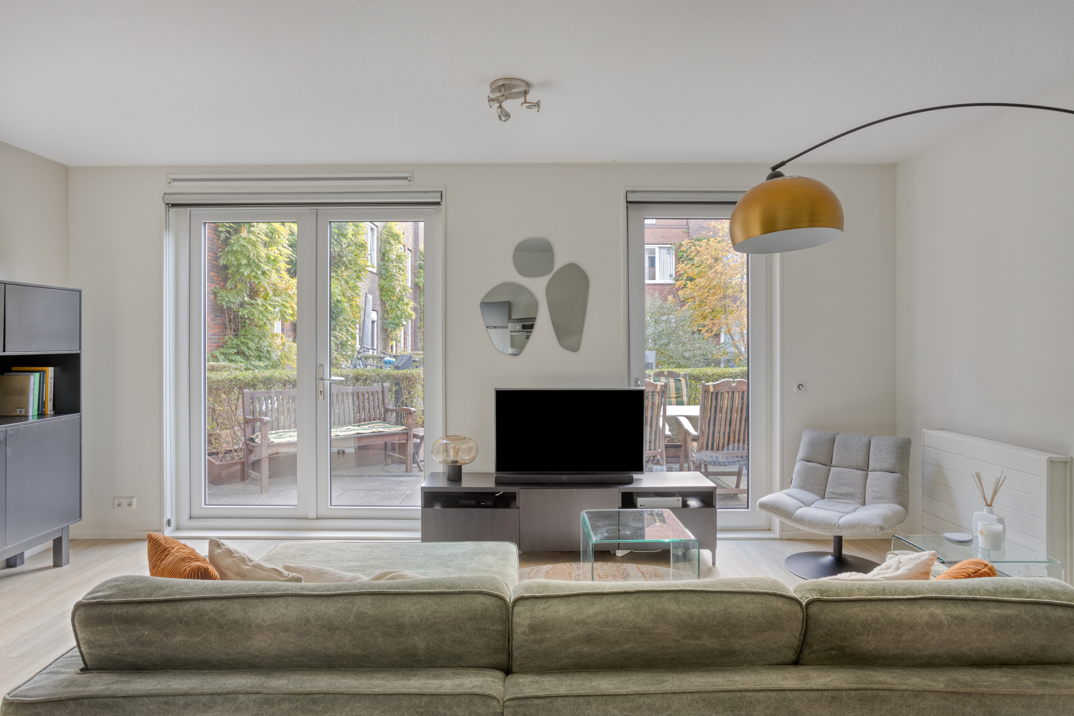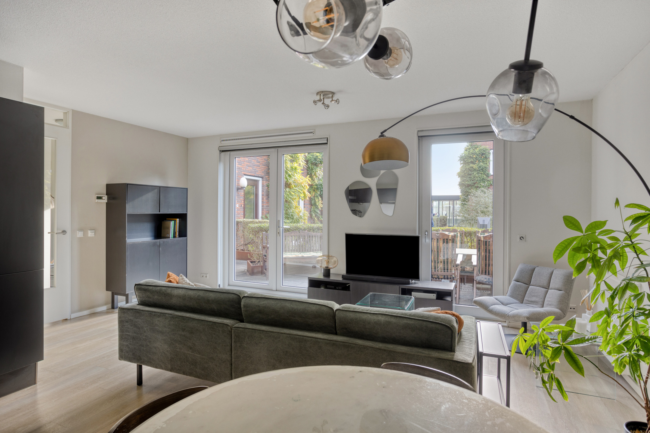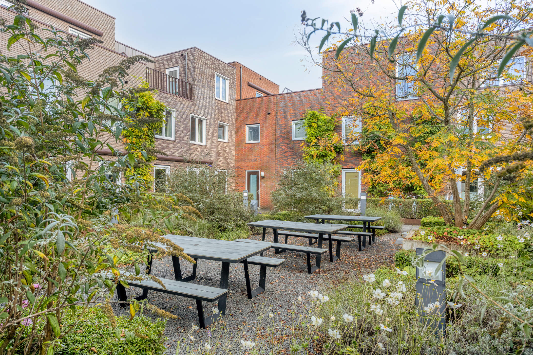 Via de binnentuin – voorzien van mooie beplanting, gezellige zitplekjes en een fraai uitzicht – bereik je de woning. Een rustige, groene plek midden in de stad die direct een gevoel van ruimte en ontspanning geeft.