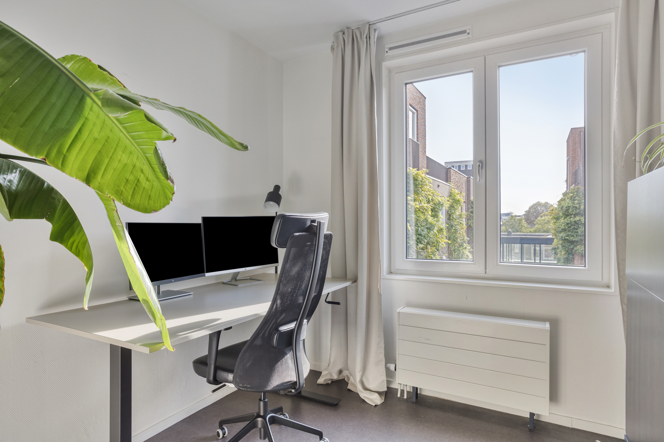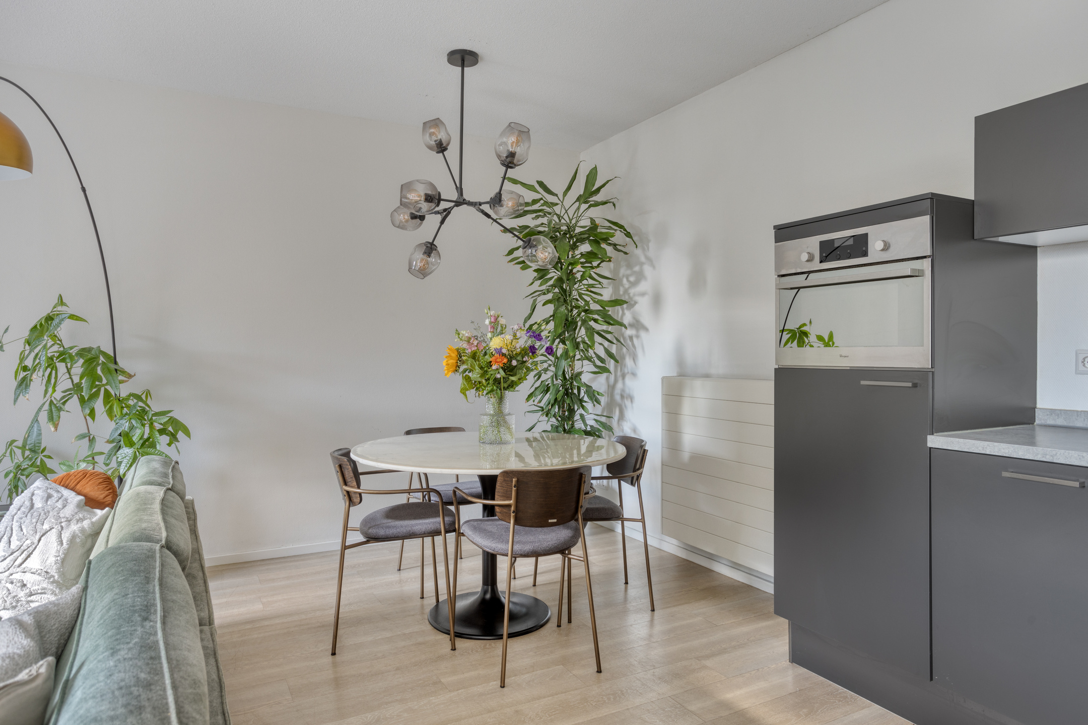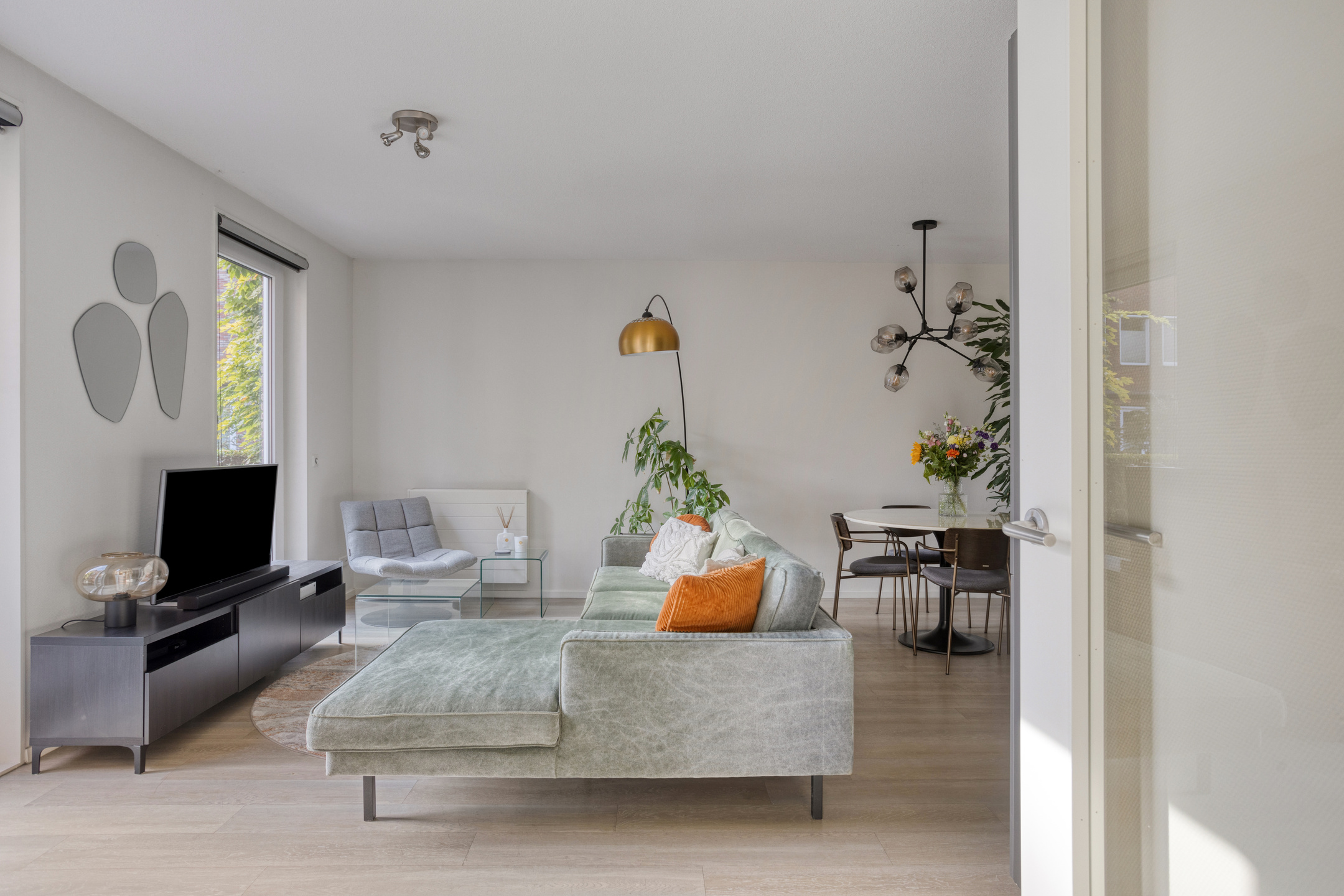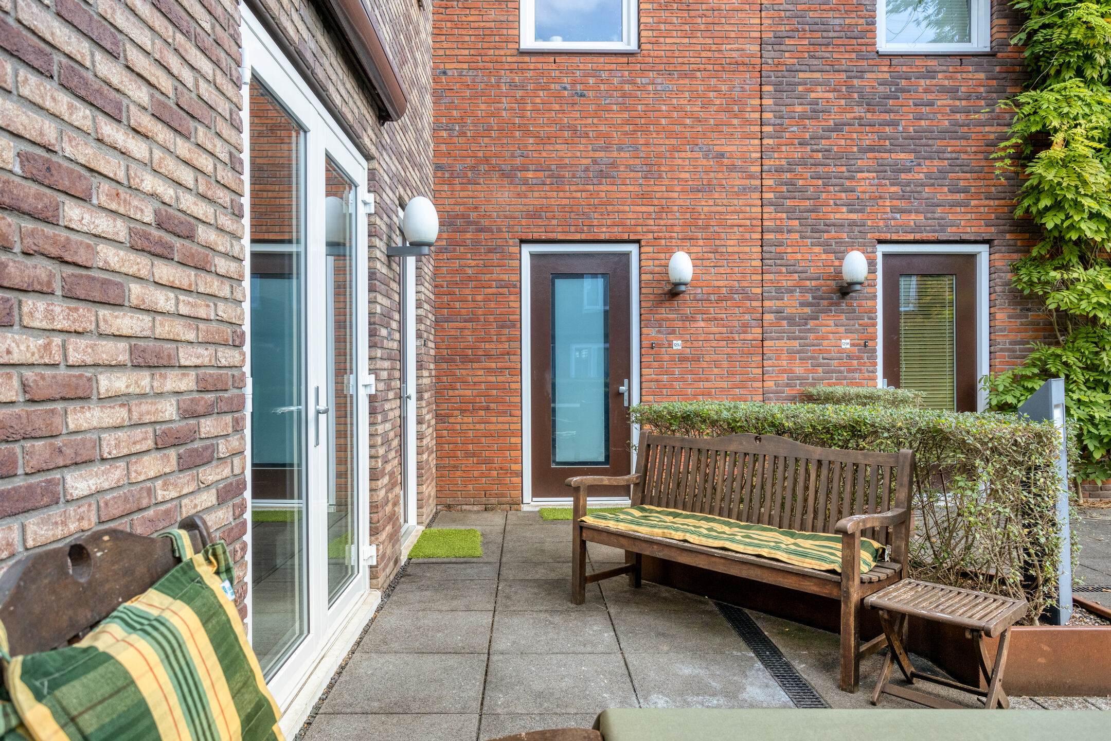 Via de binnentuin – voorzien van mooie beplanting, gezellige zitplekjes en een fraai uitzicht – bereik je de woning. Een rustige, groene plek midden in de stad die direct een gevoel van ruimte en ontspanning geeft.