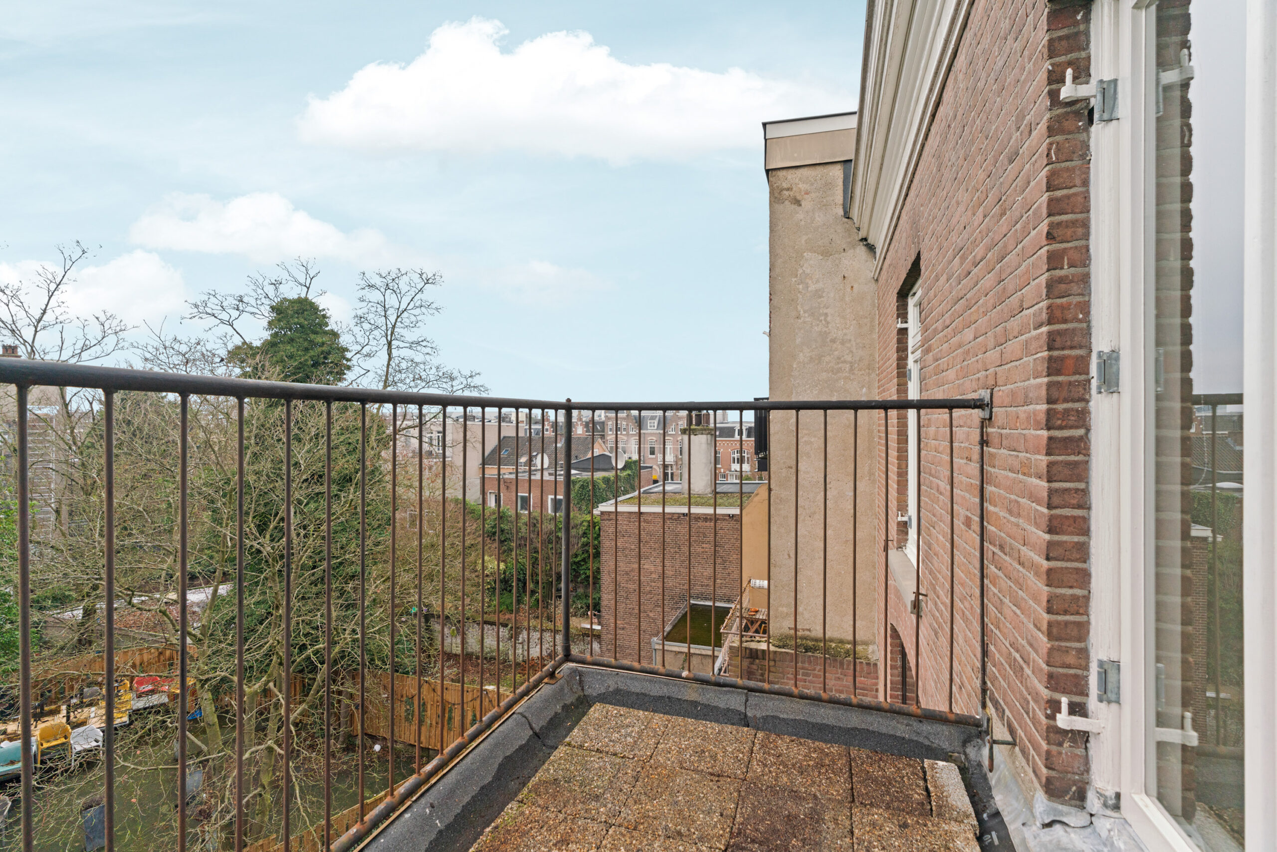 Het appartement beschikt over drie balkons, waarvan twee aan de achterzijde zijn gelegen en uitkijken over de stadstuinen. Deze balkons zijn gesitueerd op het zuidwesten. Het balkon aan de voorzijde is gelegen op het noordoosten. Het grote balkon, grenzend aan de woonkamer, is voorzien van vlonders. De voortuin biedt ruimte voor het stallen van fietsen.
