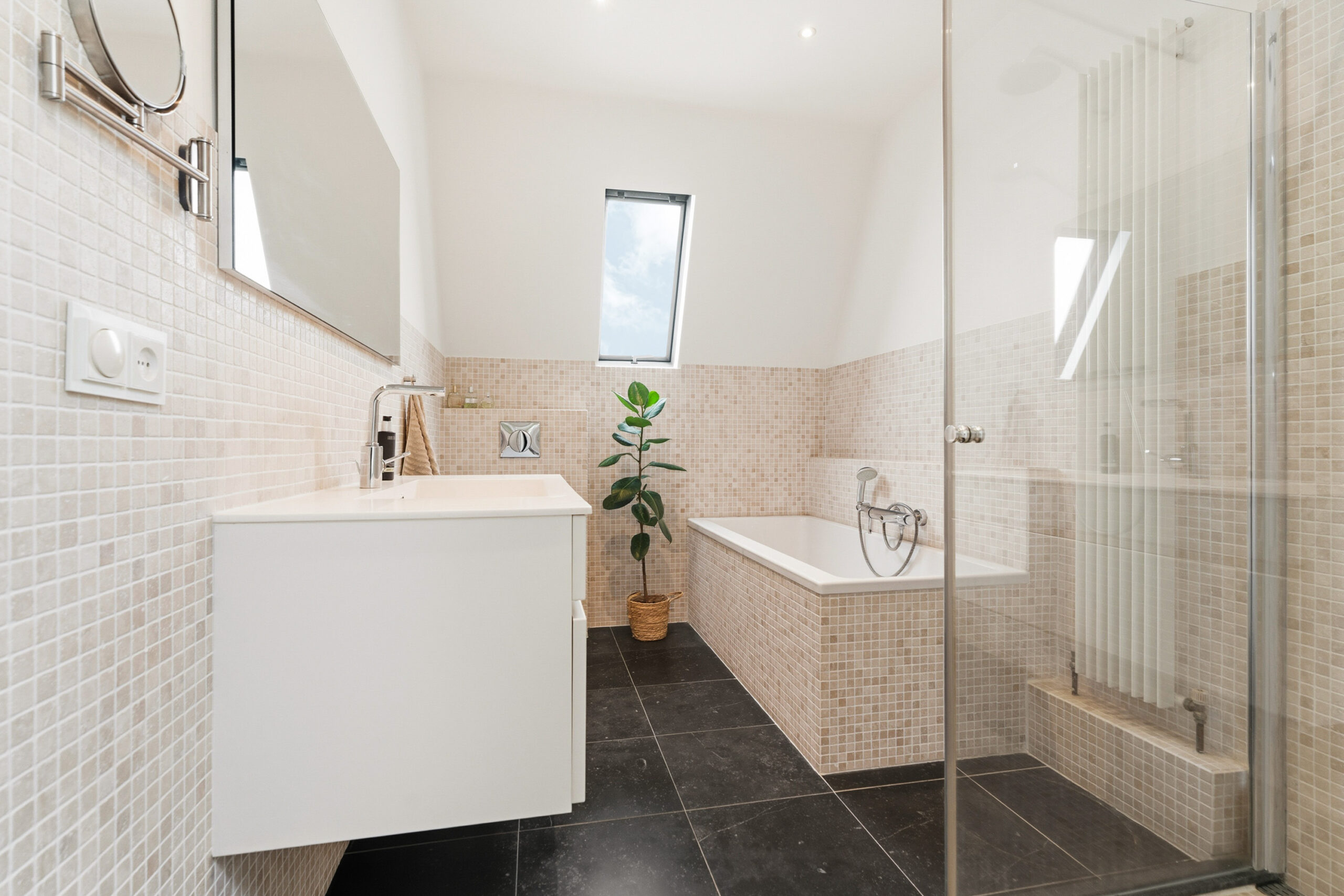 De overloop geeft toegang tot drie slaapkamers en de badkamer en is voorzien van een lichtkoepel, hetgeen zorgt voor een aangename toetreding van daglicht. Aan de voorzijde bevindt zich een ruime slaapkamer, voorzien van een dakkapel, een lichtkoepel en een inbouwkast. De badkamer is eveneens aan de voorzijde gelegen en uitgevoerd met een hardstenen vloer. De badkamer beschikt over een ligbad, een inloopdouche met regendouchefunctie, een royaal wastafelmeubel, een hangcloset met sanibroyeur, een dakraam en een designradiator. Aan de achterzijde van deze verdieping bevinden zich een grote slaapkamer en een kleinere slaapkamer, waarvan laatstgenoemde toegang biedt tot een klein balkon. Op deze verdieping is tevens een separate kast aanwezig met de opstelling van de cv-installatie en een witgoedaansluiting. De slaapkamers zijn afgewerkt met sisal tapijt.