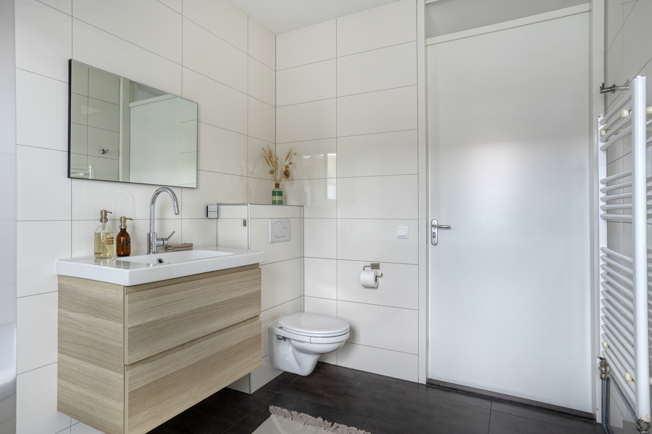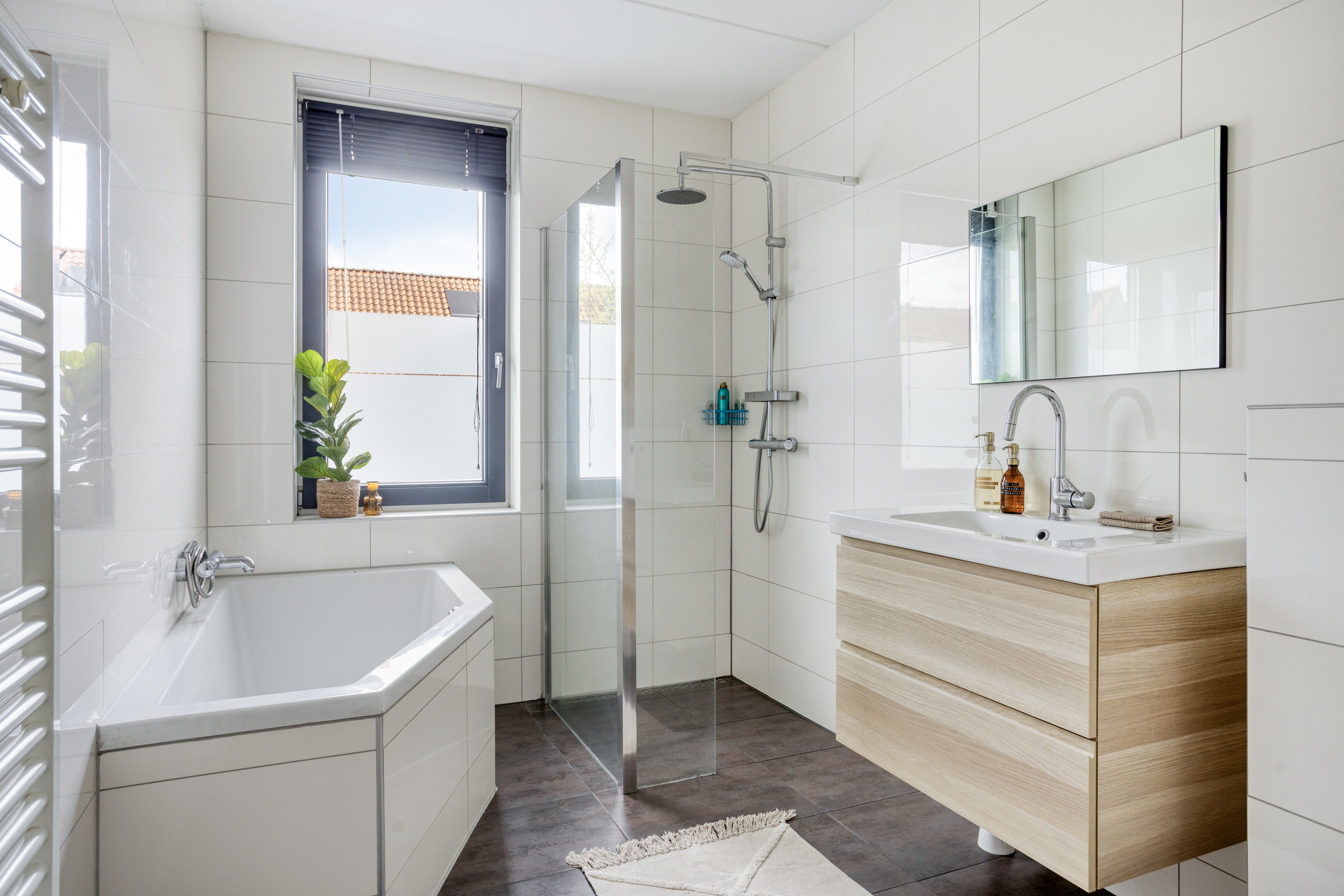 - Ligbad, toilet, wastafel, wastafelmeubel, inloopdouche