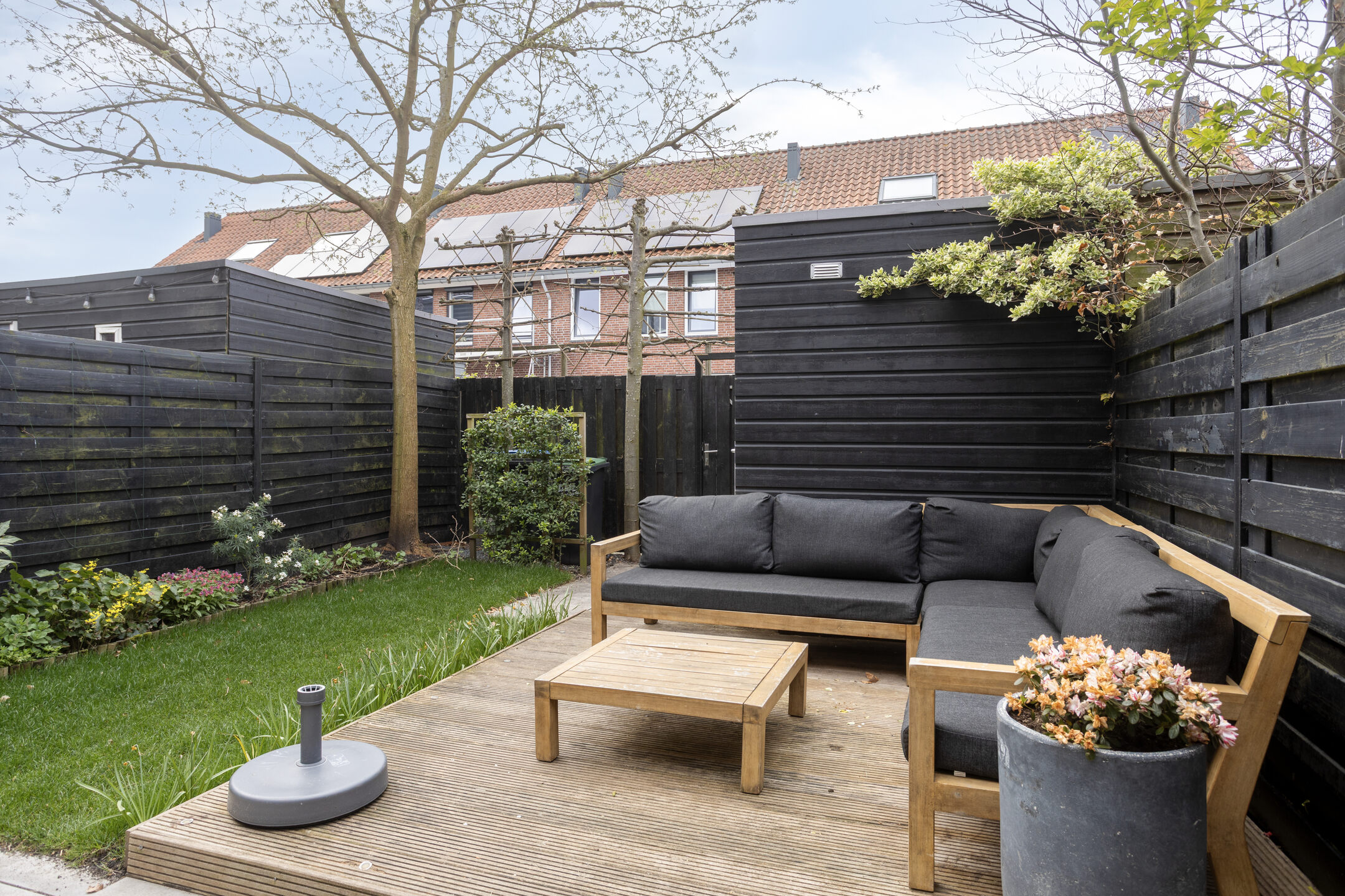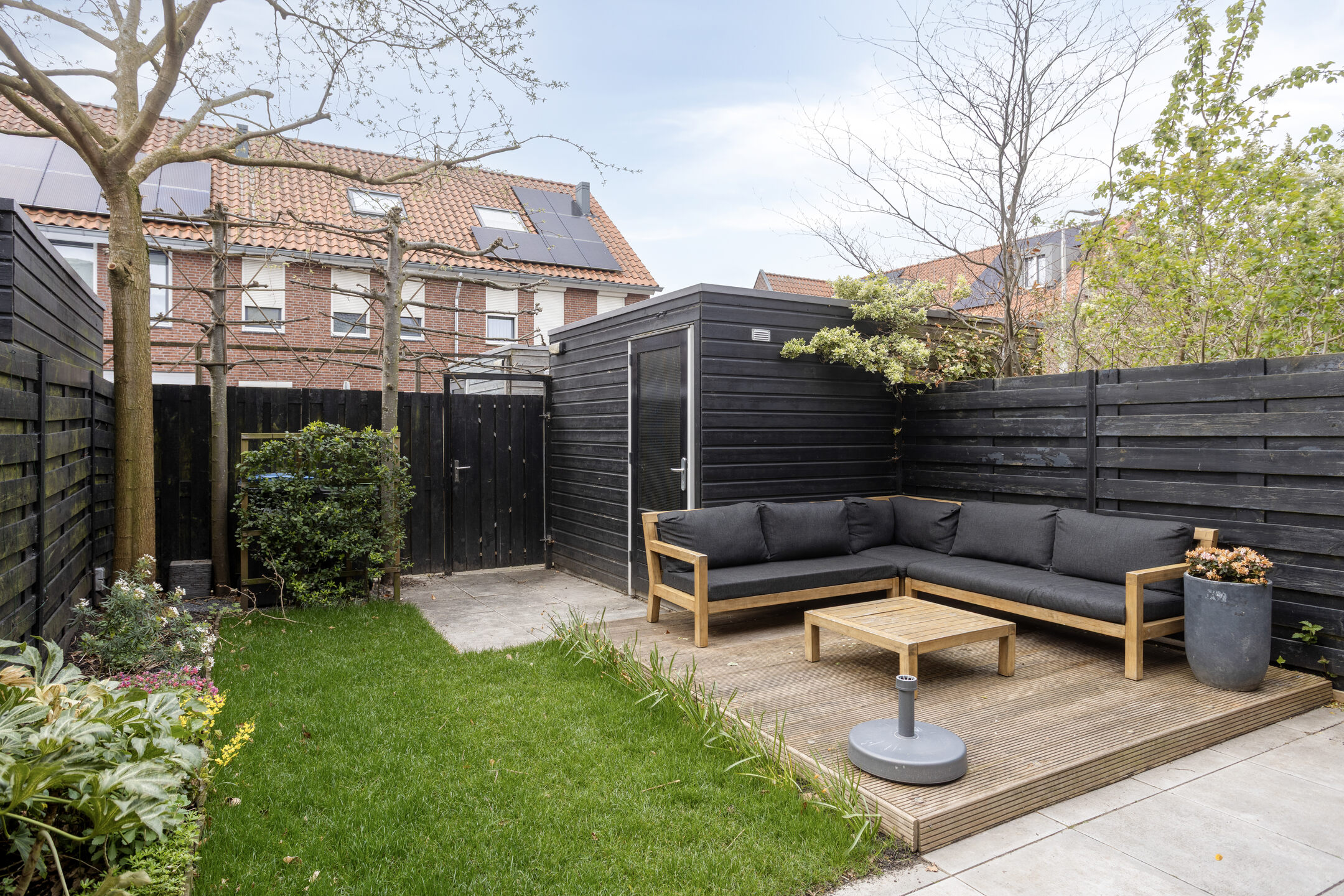 De verzorgde achtertuin, gunstig gesitueerd op het westen, biedt je een heerlijke plek om in alle rust te genieten van de middag- en avondzon. De tuin is praktisch ingericht en beschikt over een houten berging voor extra opslagruimte, evenals een handige achterom.