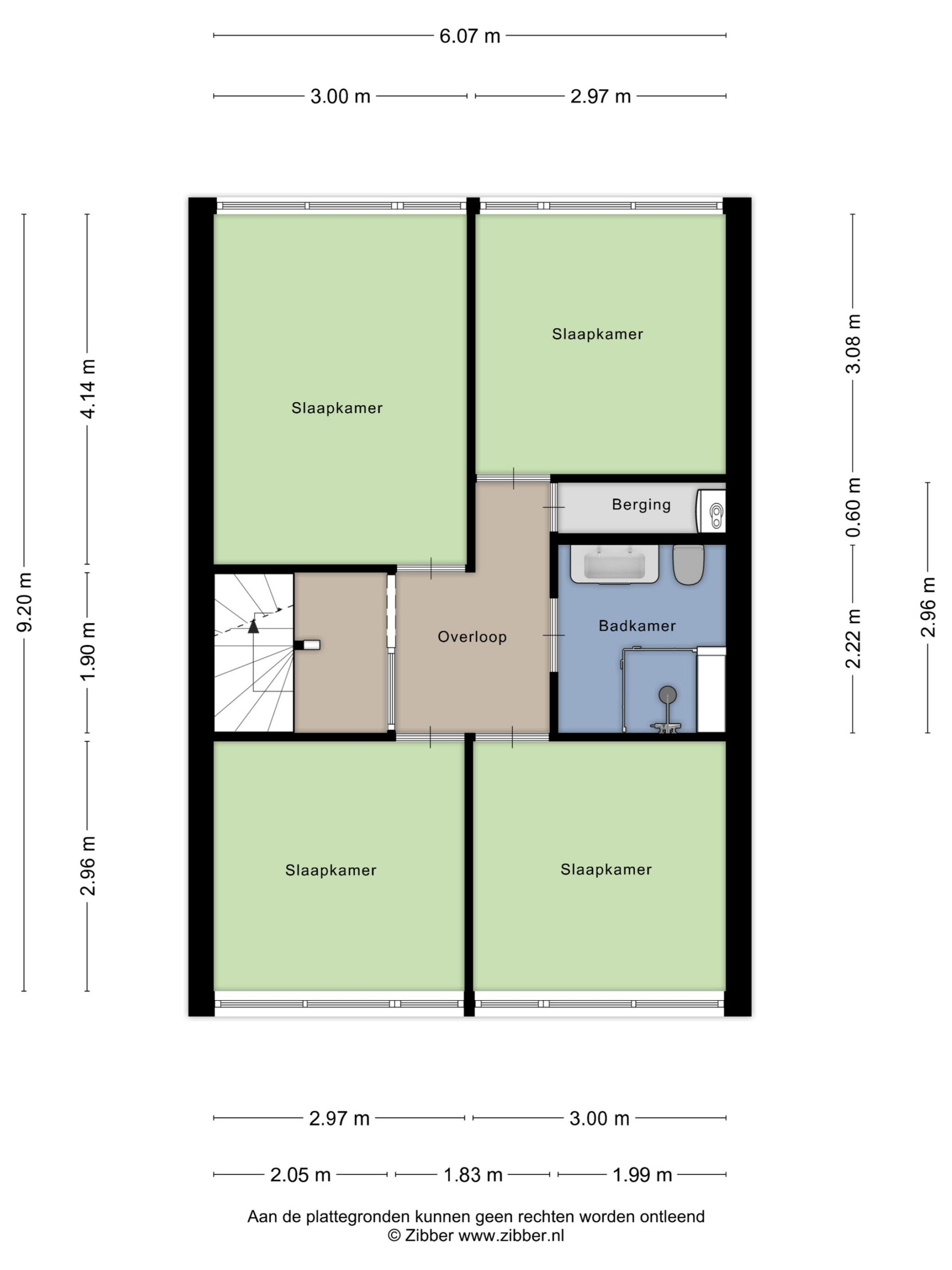 Het open trappenhuis is door een klein portaaltje afgesloten van de overloop. De overloop geeft toegang tot maar liefst 4 slaapkamers, de CV-ruimte en een moderne badkamer, voorzien van een inloopdouche, wastafelmeubel met wastafel, wandcloset, vloerverwarming, mechanische ventilatie en een radiator.
