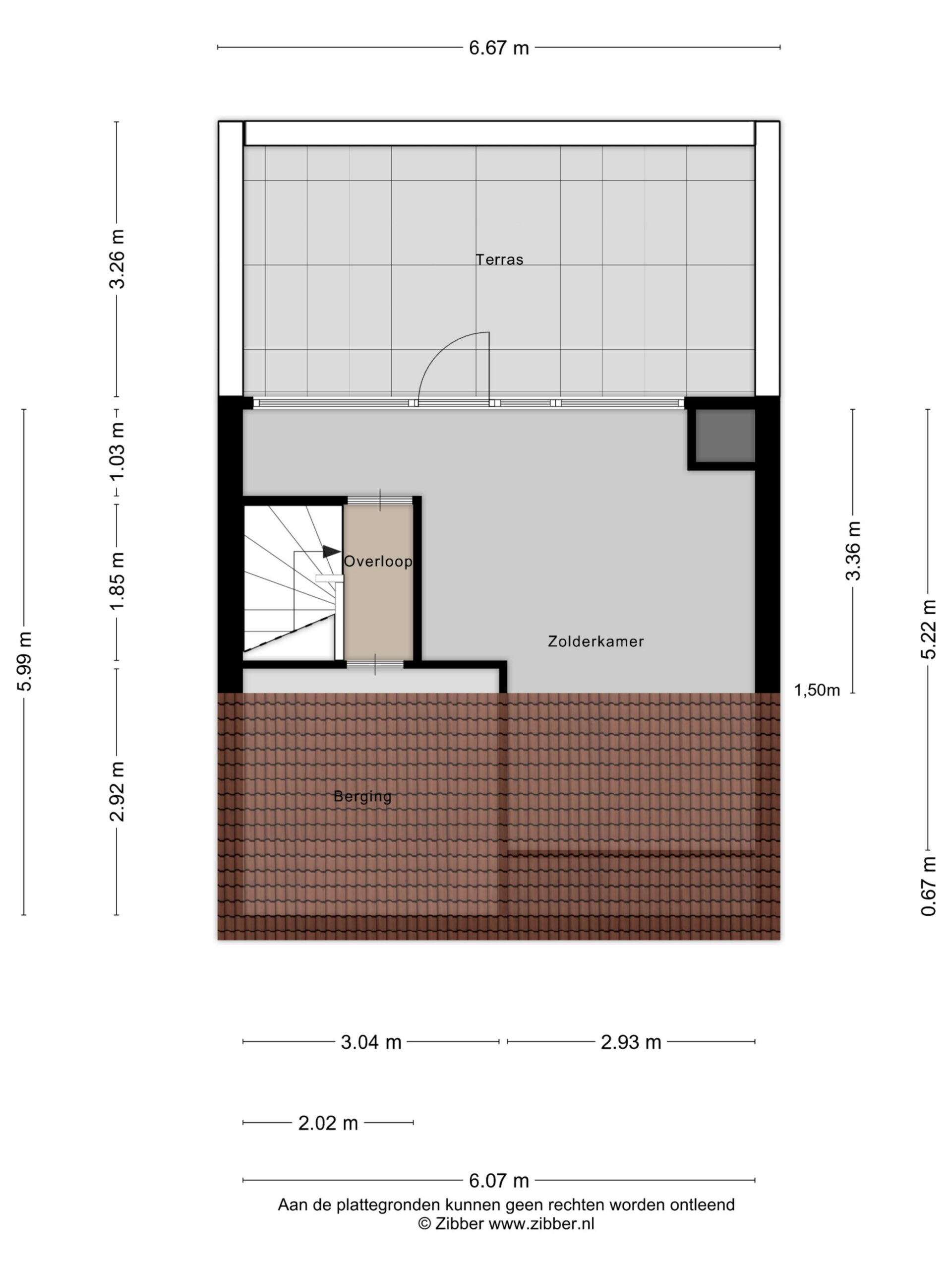 Overloop met toegang tot een berging en de 5e slaapkamer, welke toegang biedt tot het royale dakterras.