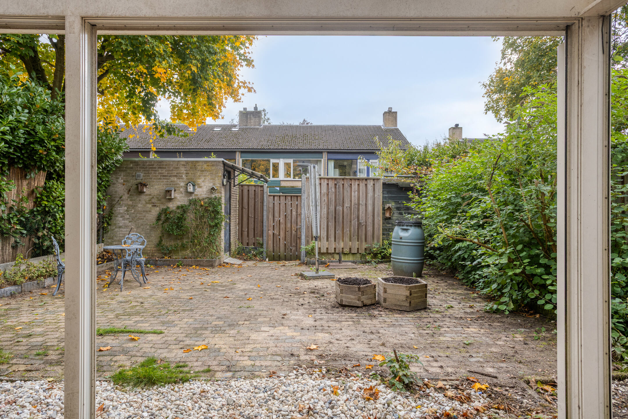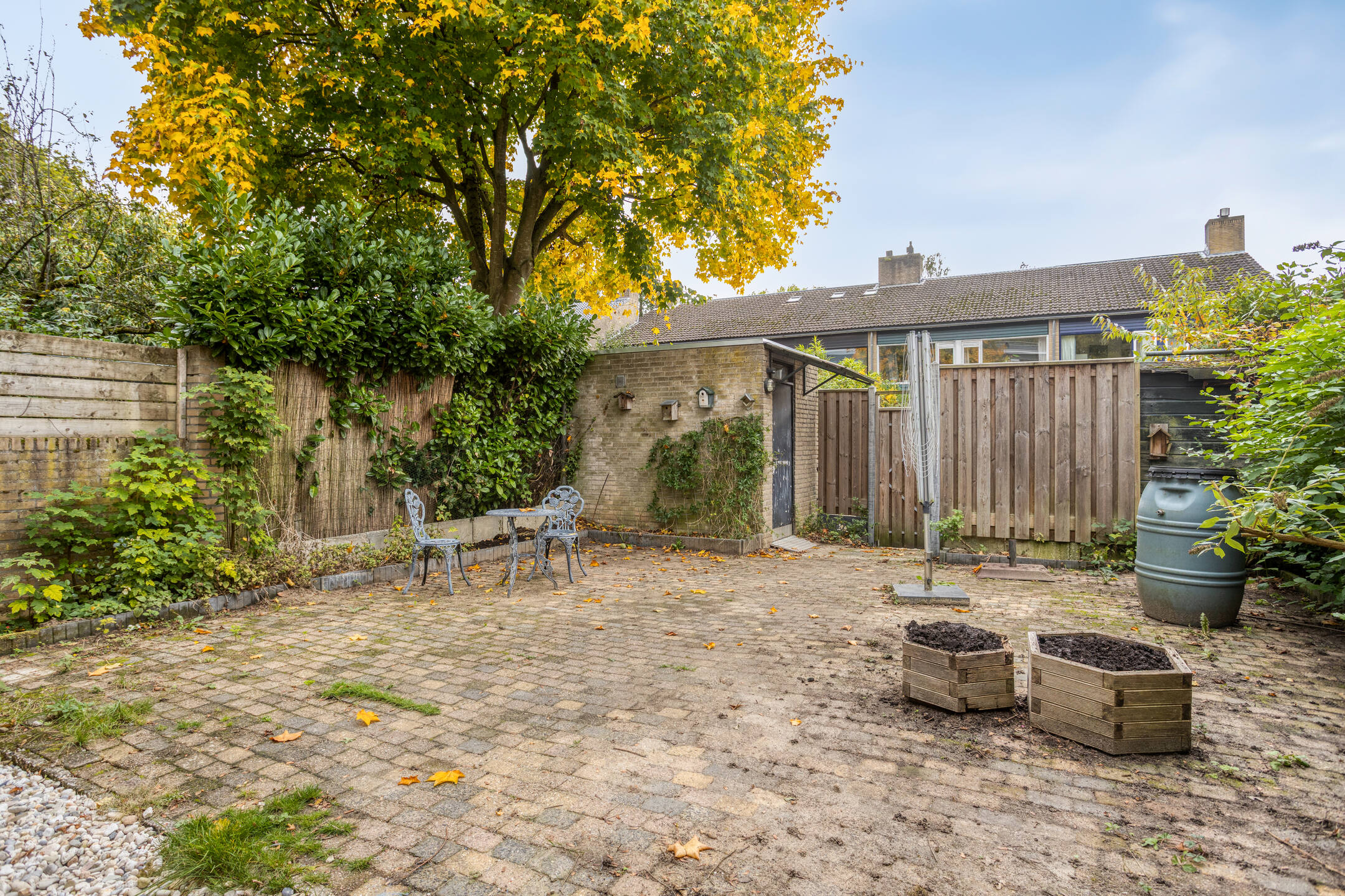 Tot de woning behoort een royale achtertuin, gelegen op het zuidoosten, met een serre in aanbouw, een achterom, een vrijstaande stenen berging, een extra houten berging en veel privacy. De voormalige garage is momenteel in gebruik als berging, maar kan met enkele eenvoudige aanpassingen weer worden ingericht als garage. De voortuin is gesitueerd aan een rustige, doodlopende straat die uitsluitend bestemd is voor bestemmingsverkeer. Parkeren is mogelijk op eigen terrein alsmede op de openbare parkeerplaatsen in de straat.