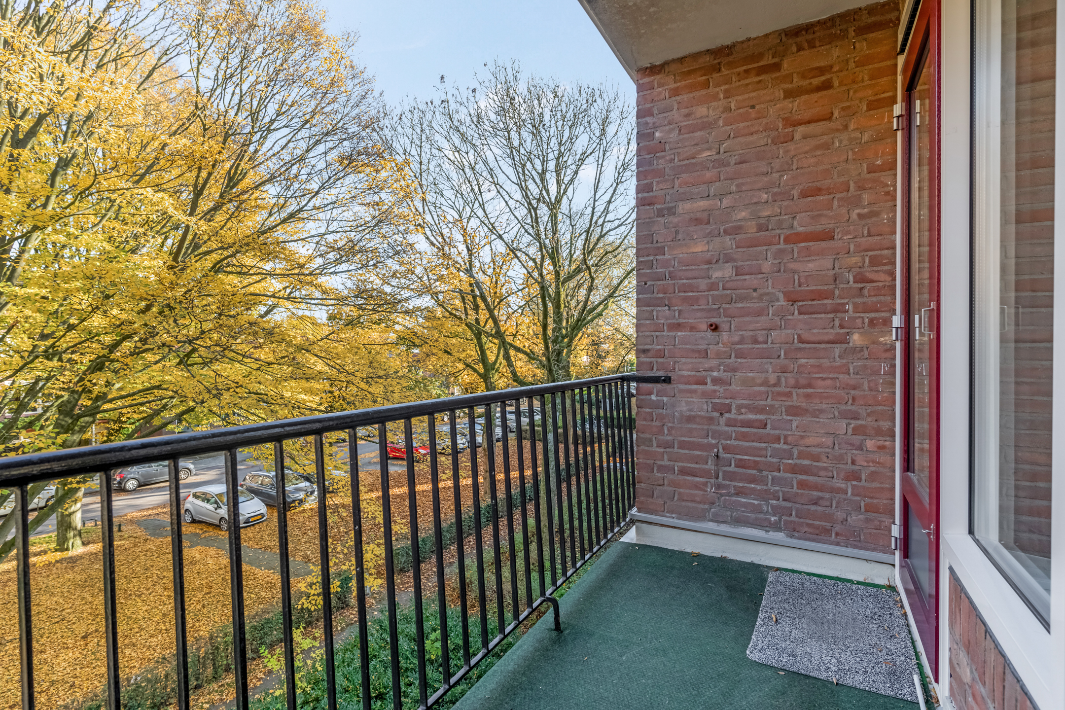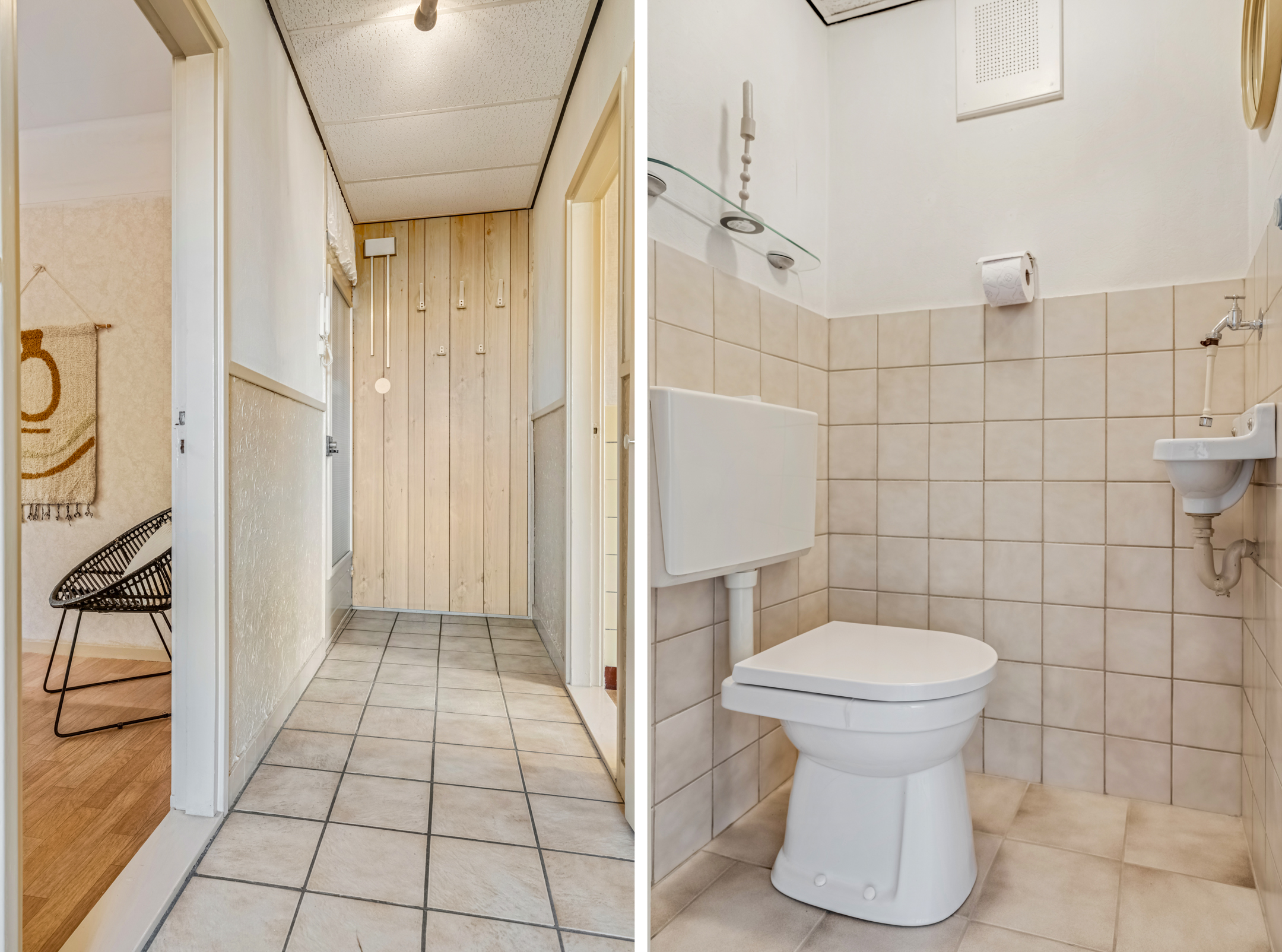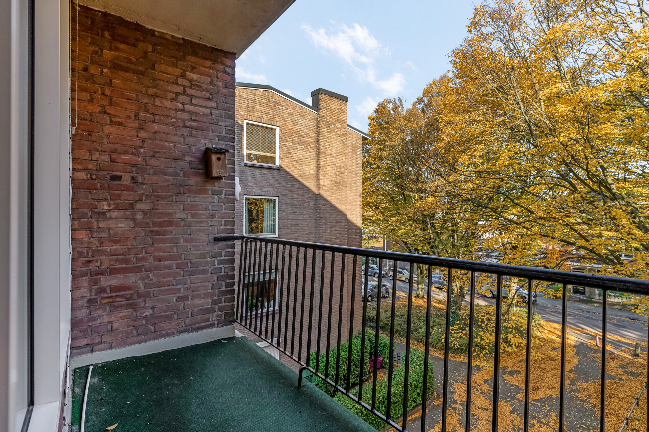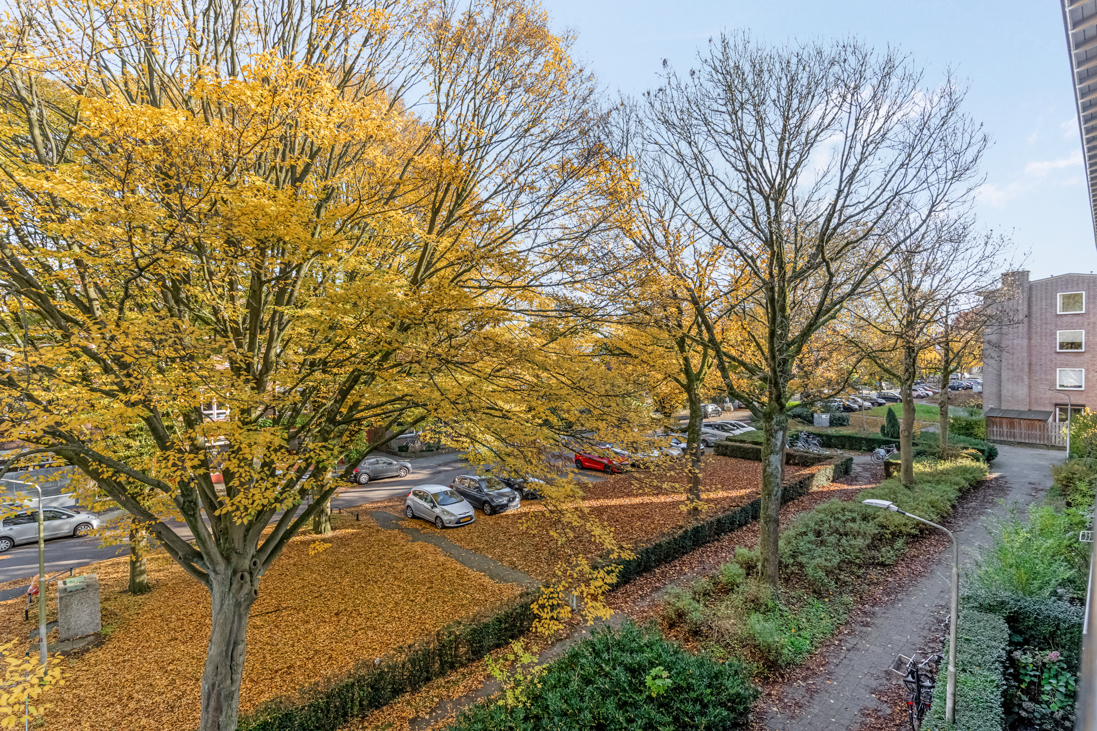 Entree met hal, meterkast en toiletruimte voorzien van closet en fonteintje. De lichte woonkamer heeft een schouw, vaste kast en grote raampartijen met extra zijramen, waardoor er veel natuurlijk licht binnenvalt. Vanuit de woonkamer stap je zo het balkon op, dat gunstig op het westen ligt. De dichte keuken is eenvoudig van uitvoering en geeft toegang tot de loggia met aansluitingen voor witgoed en de cv-installatie. Er zijn twee slaapkamers, beide met vaste kast, en een badkamer met inloopdouche en wastafel.